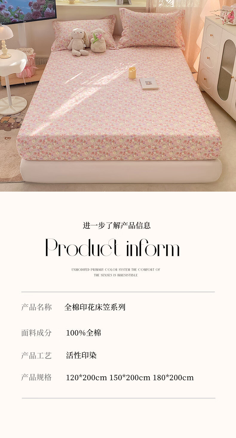 猫人(MiiOW)全棉印花床笠单件1.5x2米 全棉床垫保护罩床套单双人床笠三件套 畅游星球【亲肤全棉柔软舒适】 150cm*200cm 单床笠