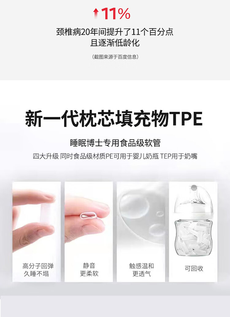 ROLAND LIVEPE软管减压枕头护颈椎助睡眠枕头单人枕芯40*60cm透气家用枕头 EOEO PE软管枕 一只装 40*60cm