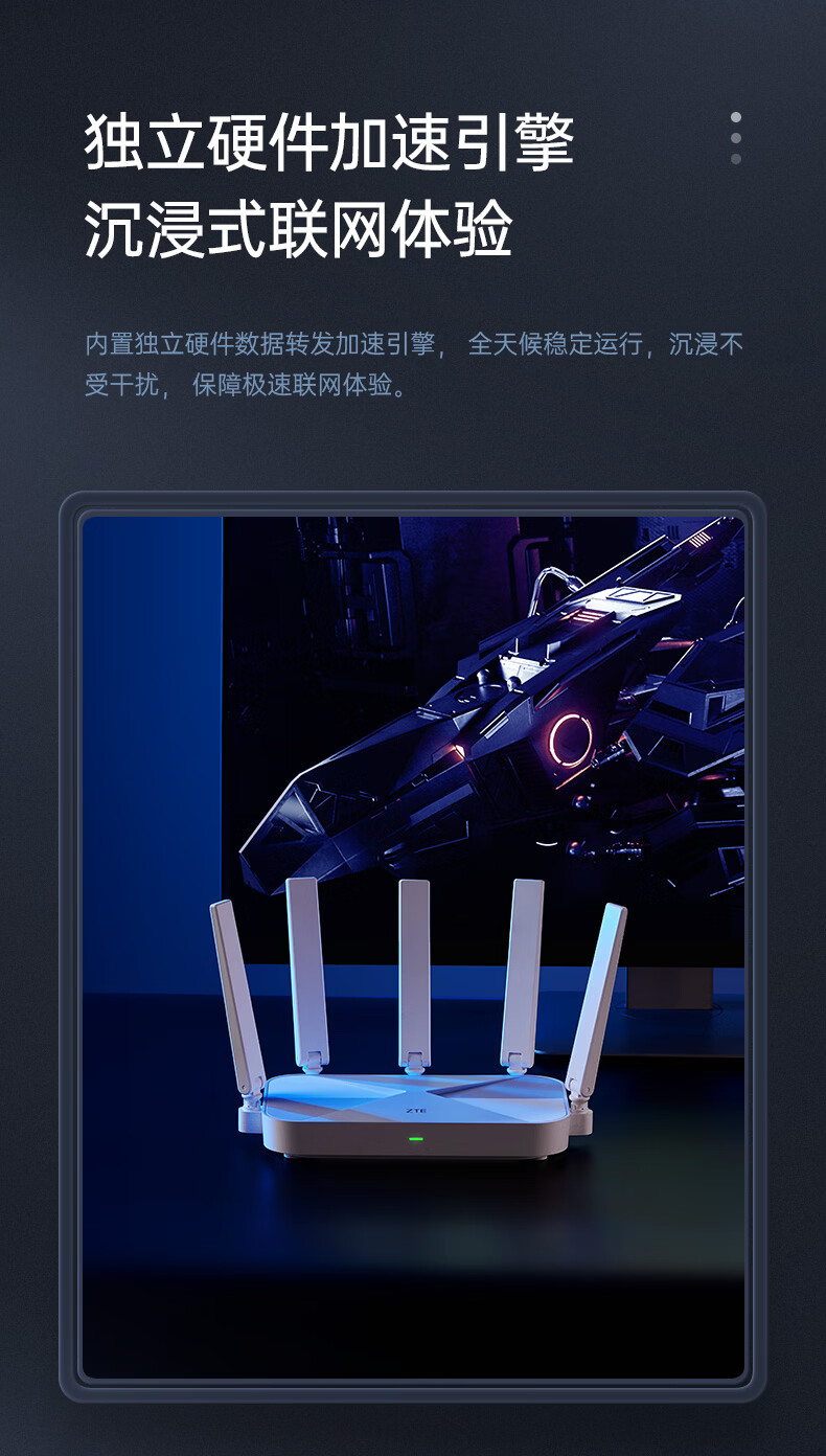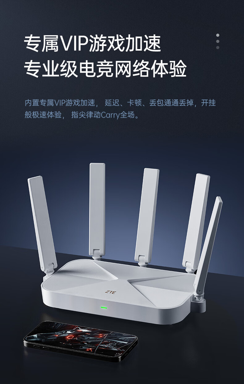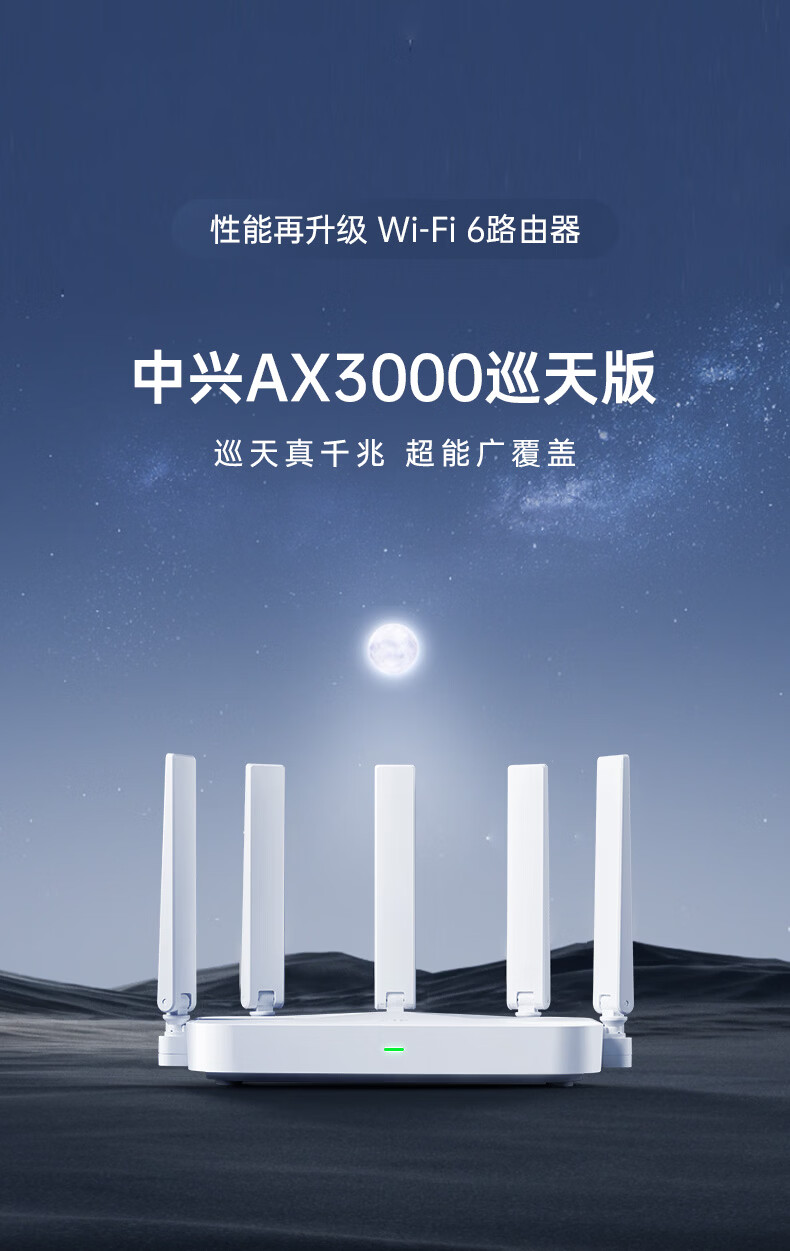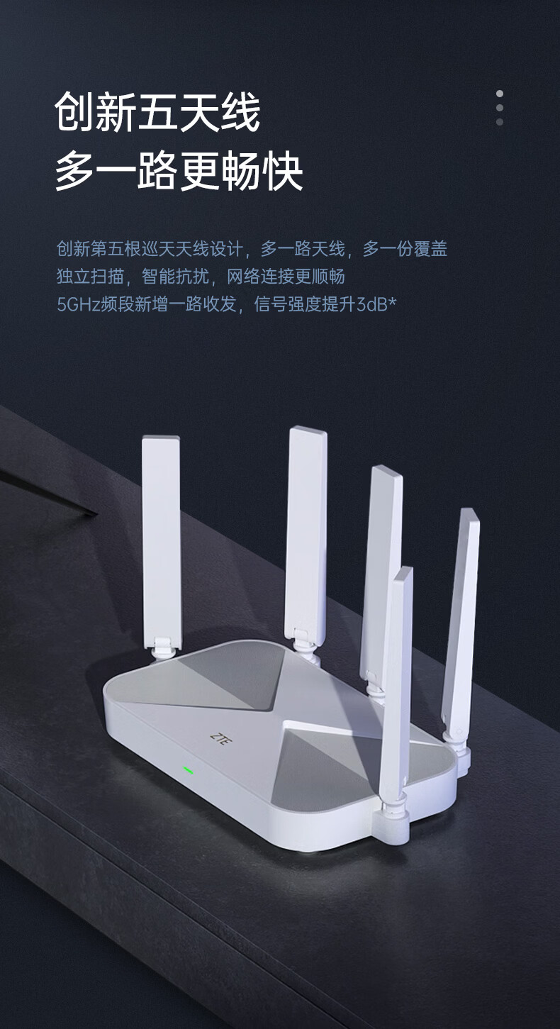 中兴(ZTE)巡天AX3000满血WIFI6千兆无线路由器 自研双核主芯片5G双频Mesh3000M无线速率【赠品版】