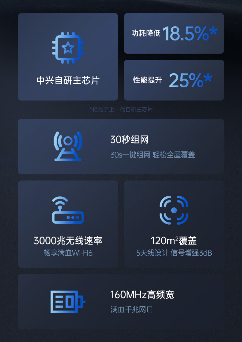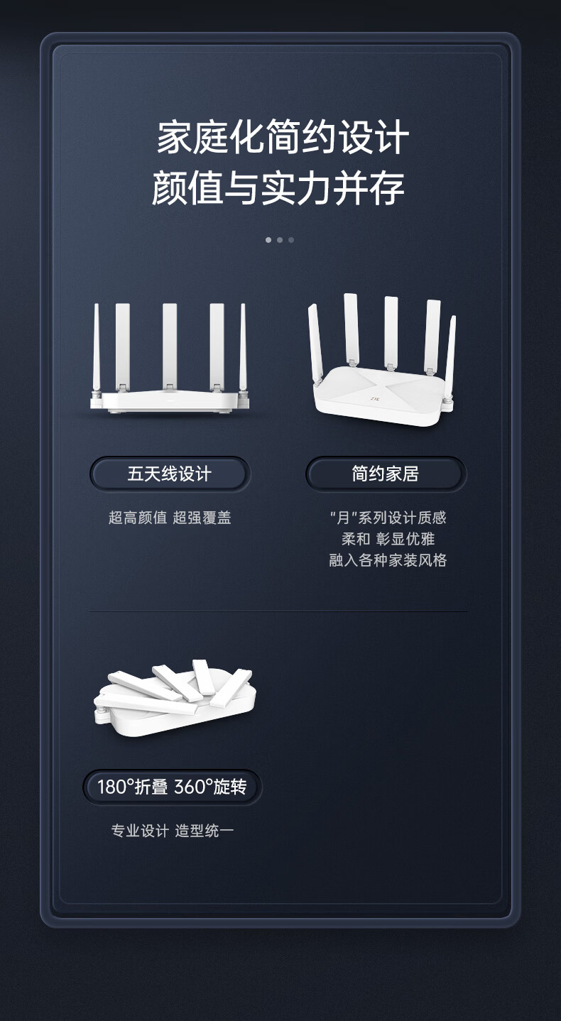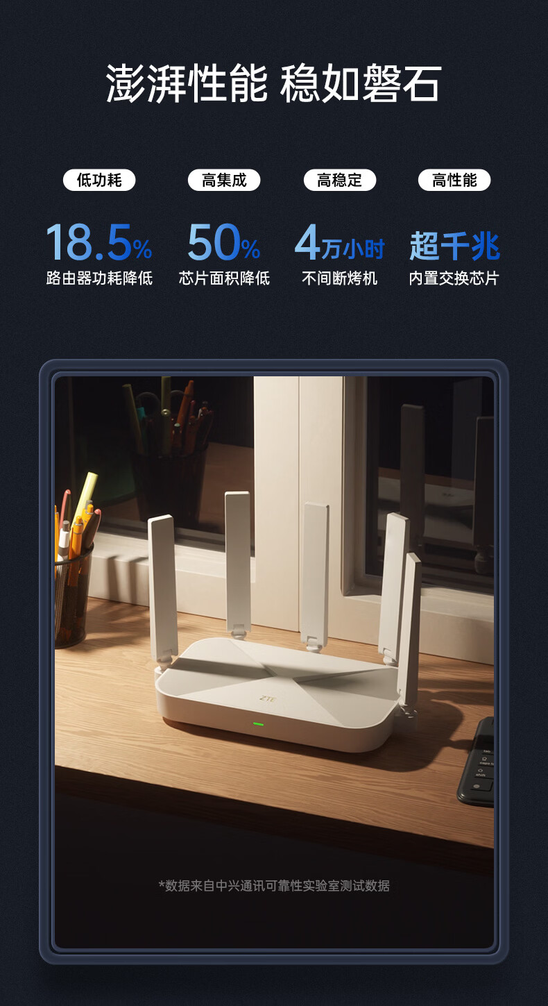 中兴(ZTE)巡天AX3000满血WIFI6千兆无线路由器 自研双核主芯片5G双频Mesh3000M无线速率【赠品版】
