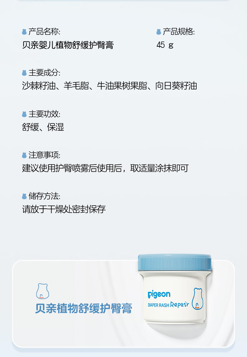 贝亲(Pigeon)婴儿植物舒缓护臀膏 屁屁霜 5g PL487