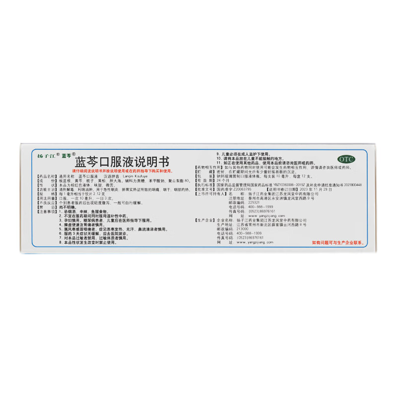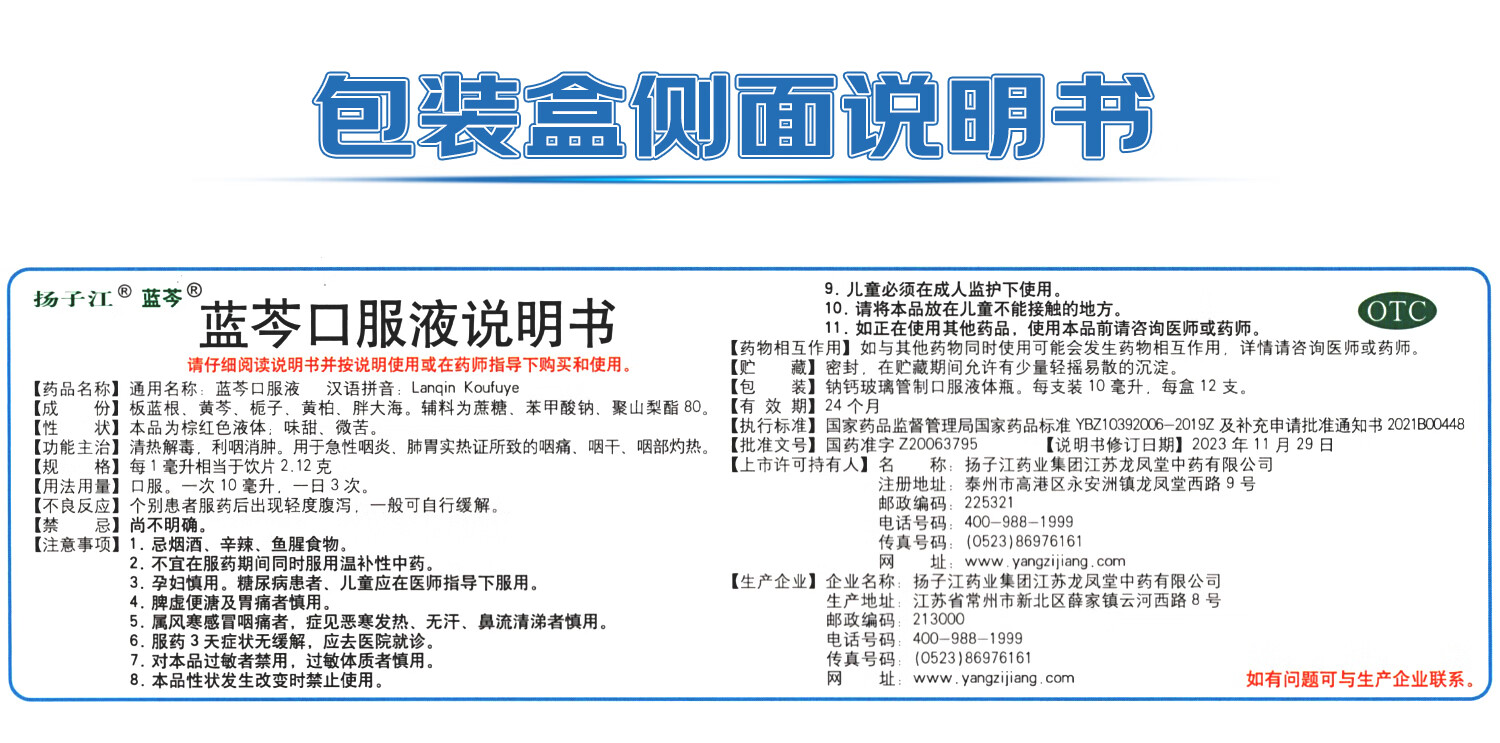 【12支升级装】扬子江 蓝芩口服液 10ml*12支/盒 清热解毒 利咽消肿 急性咽炎 肺胃实热 咽痛 咽干