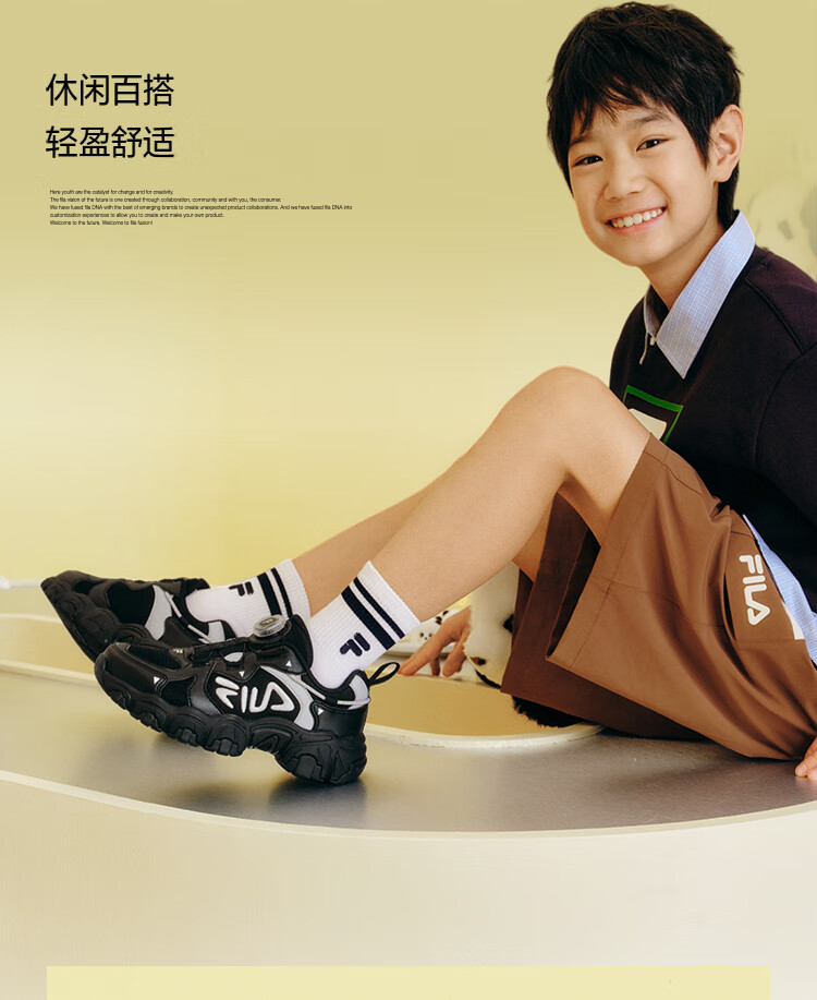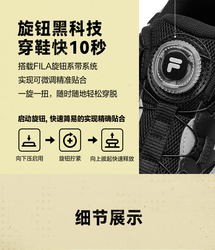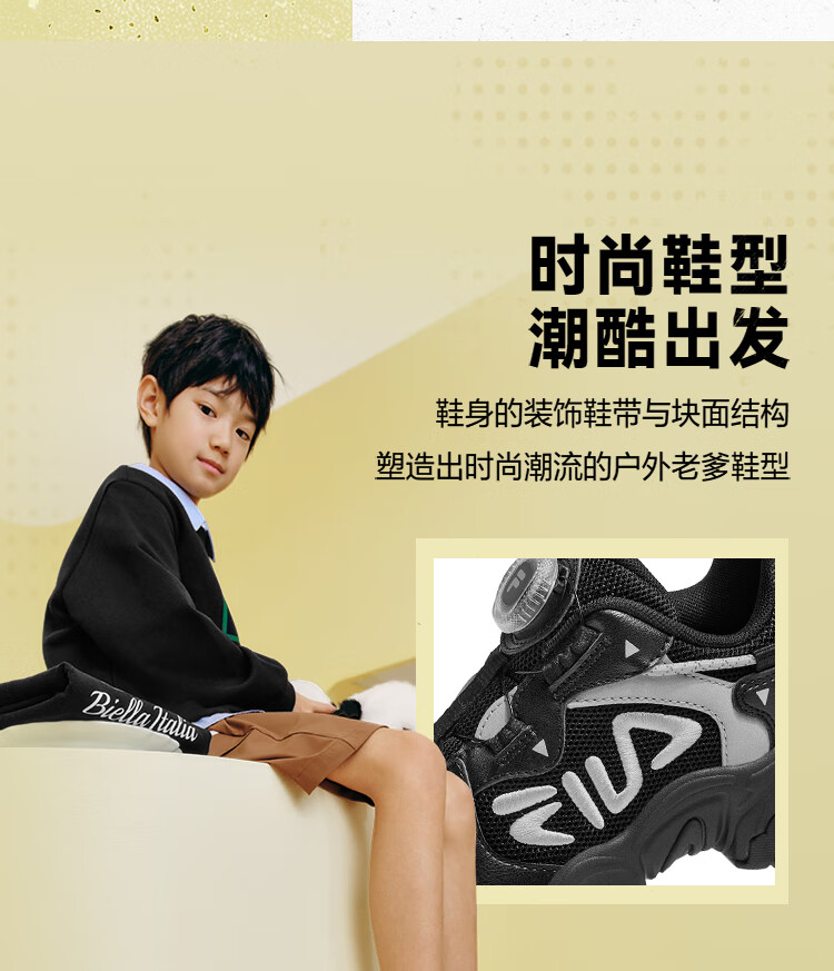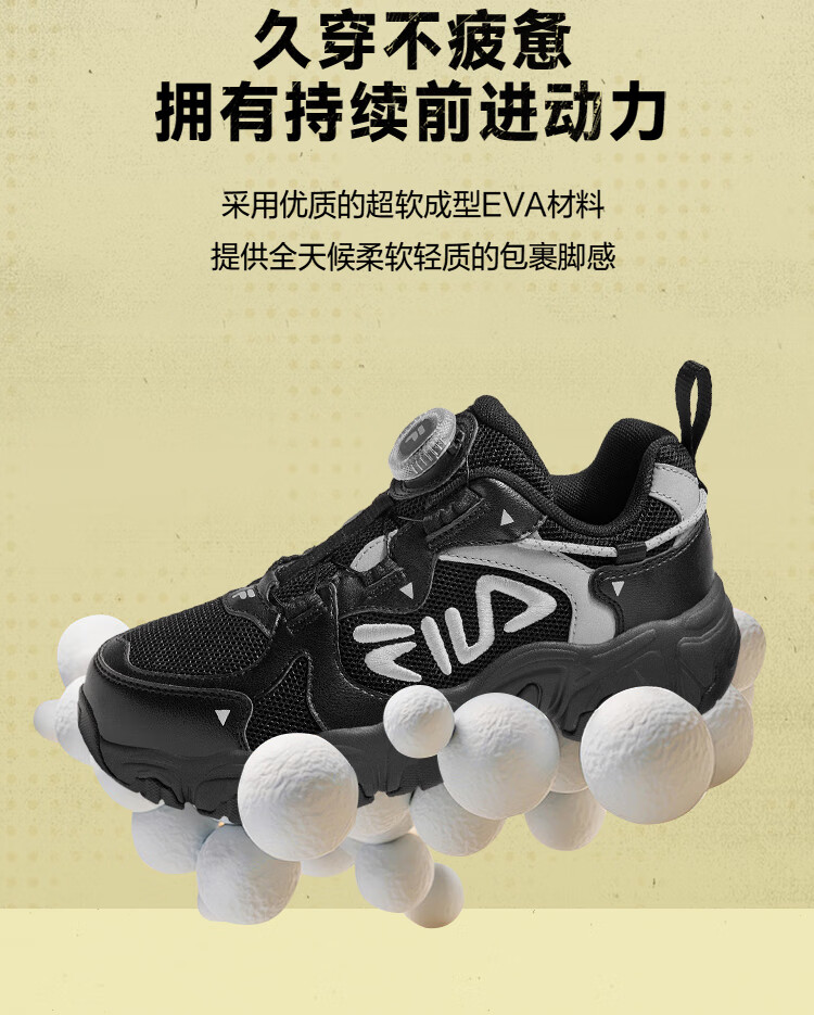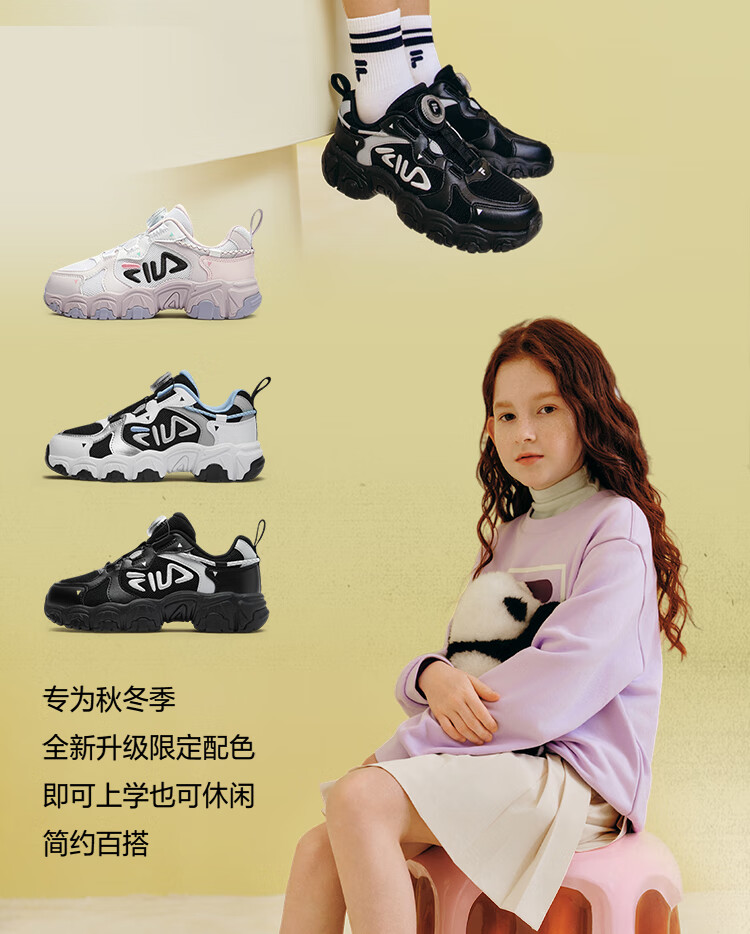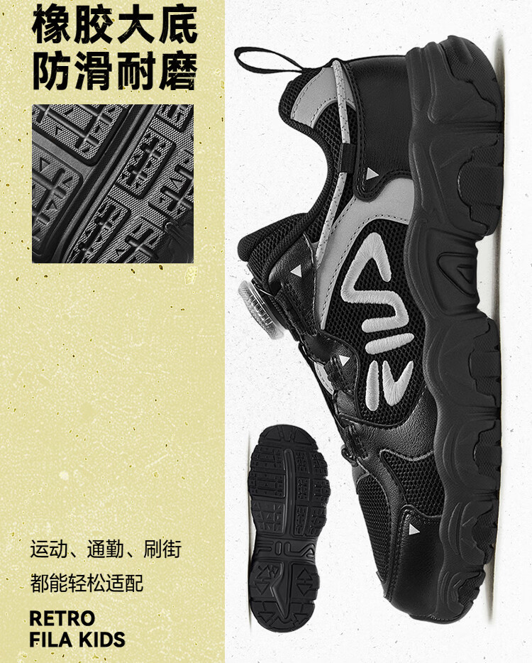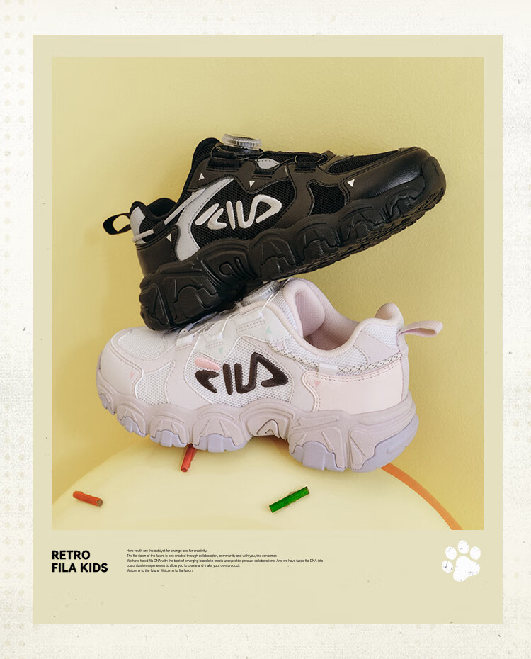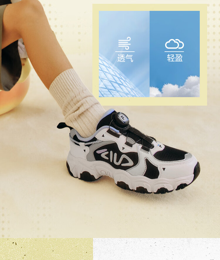 FILA斐乐儿童跑步鞋2025年秋季男女童中大童旋钮运动鞋子猫爪