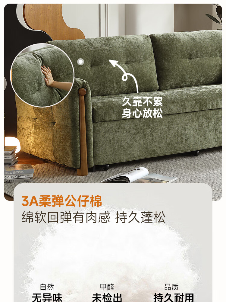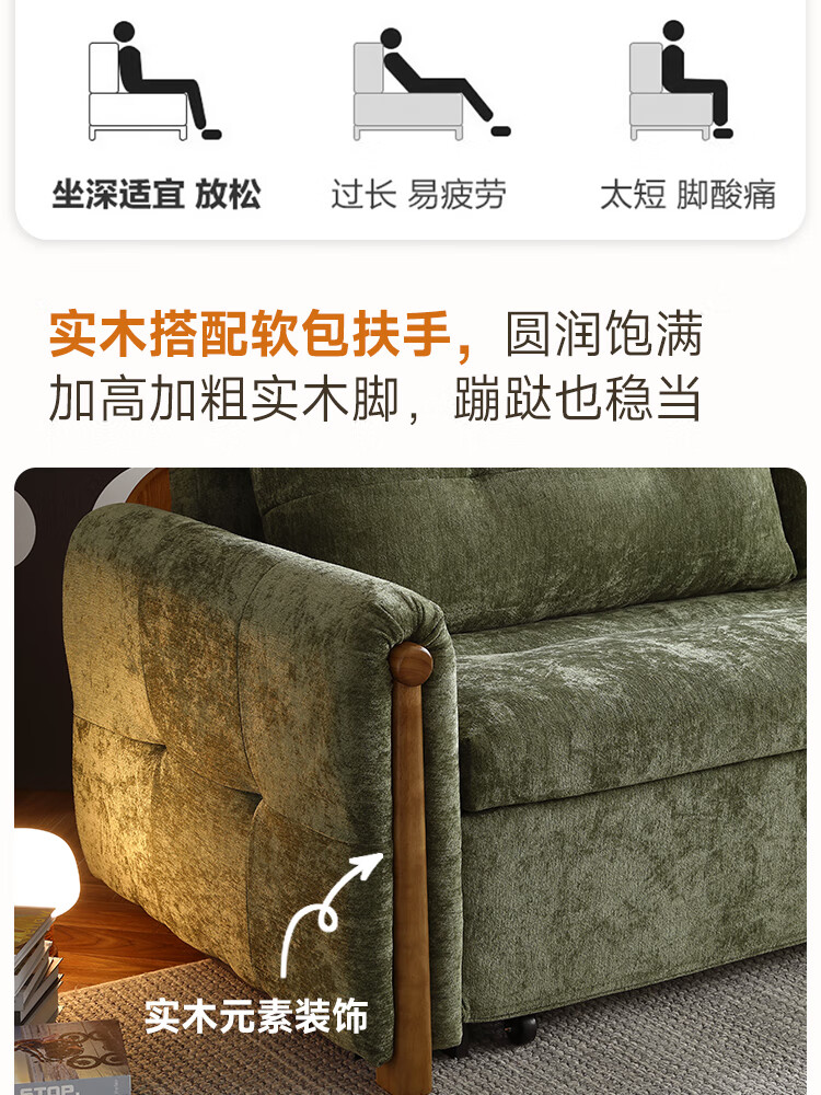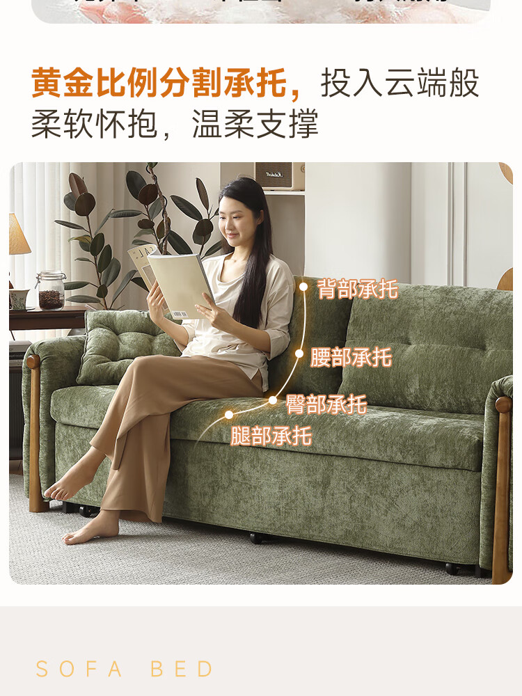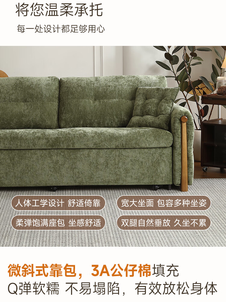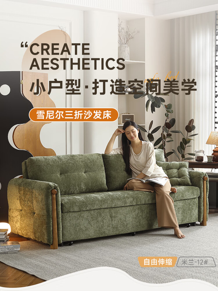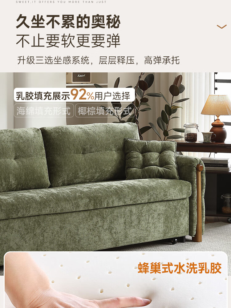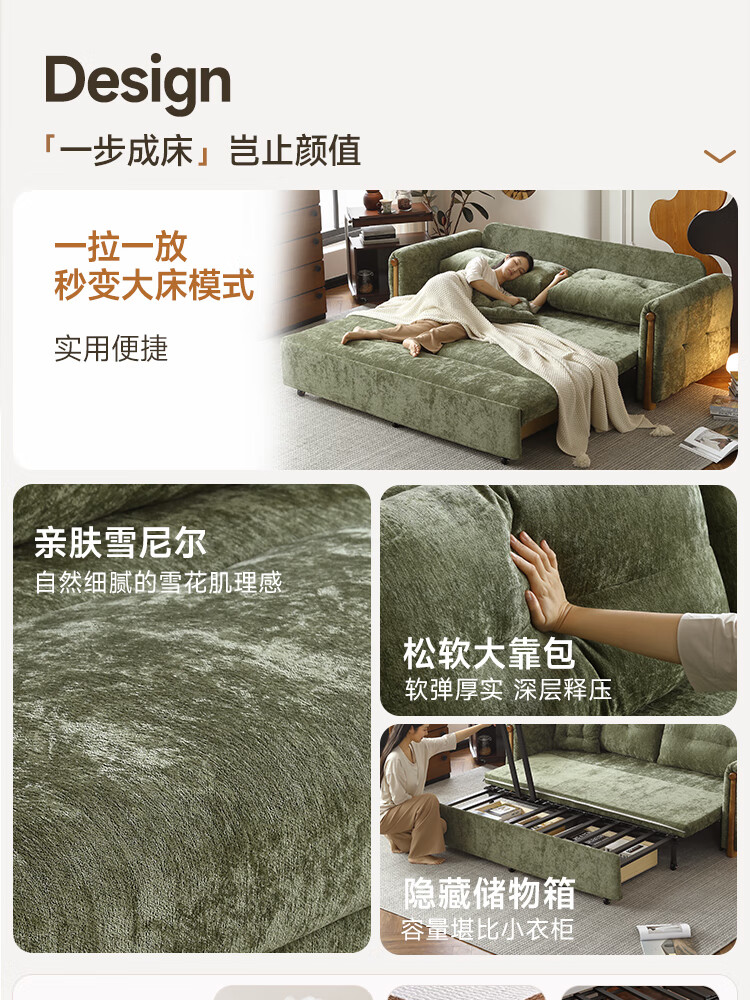 哈森诗丹可折叠沙发床一体两用2025新款小户型客厅雪尼尔沙发可以当床睡觉 外径:1.86m(无储物)S+级雪尼尔 舒适乳胶款(适中偏软)