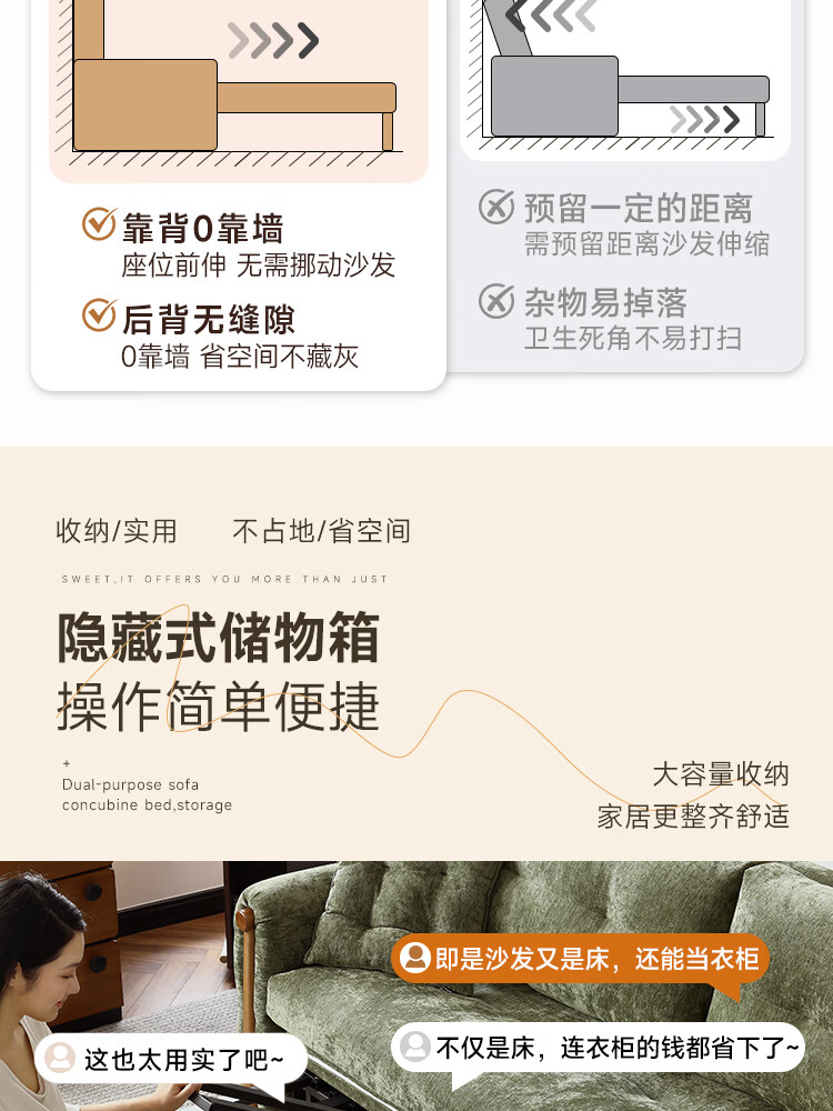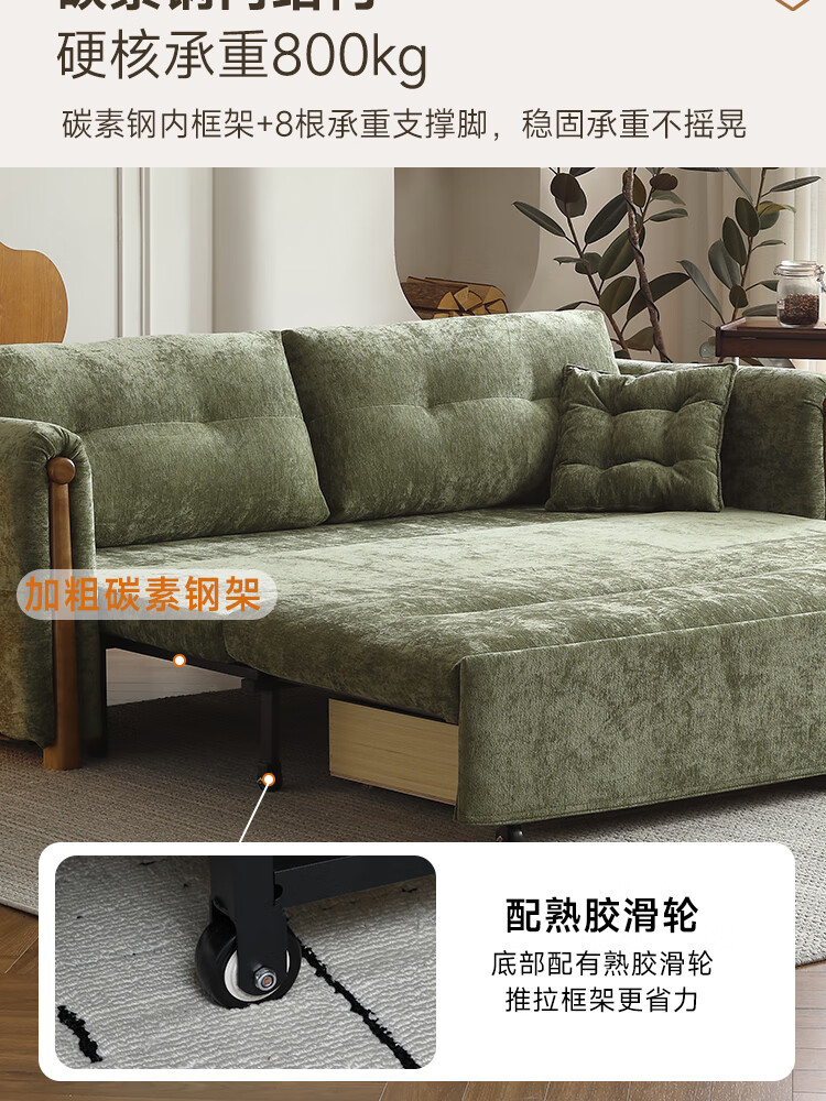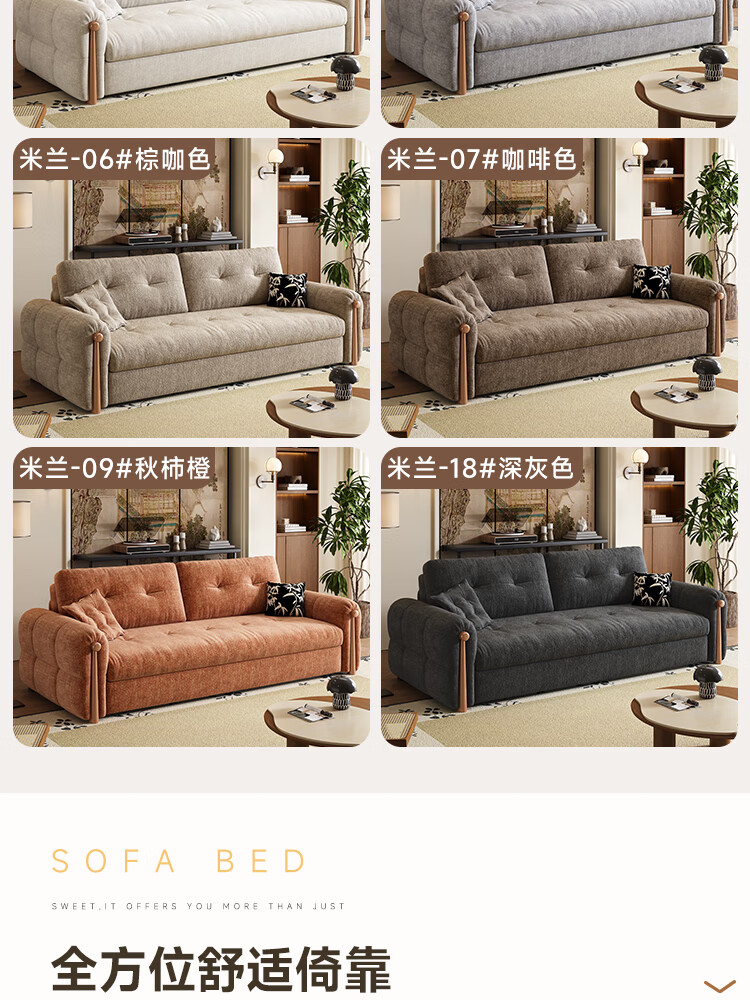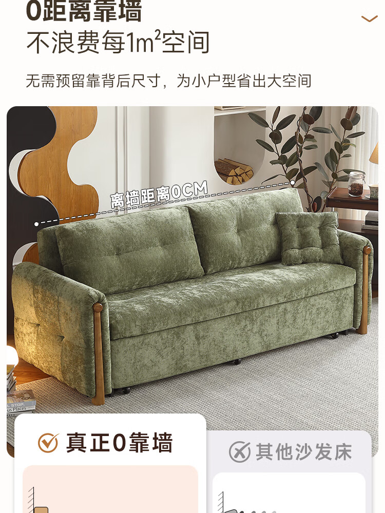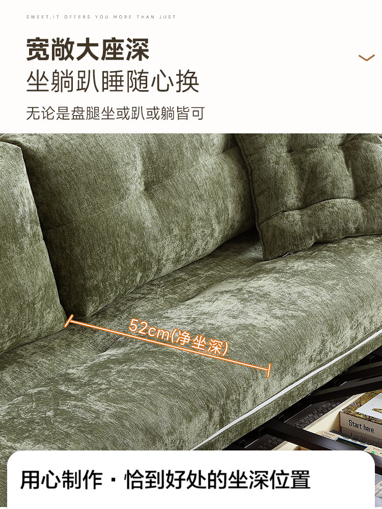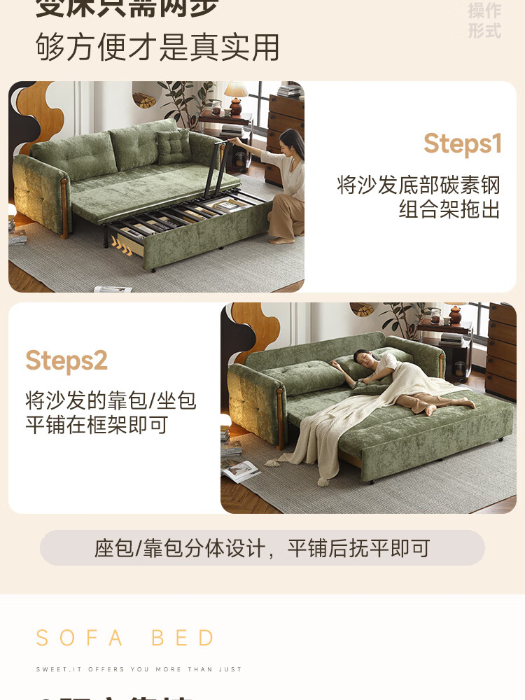 哈森诗丹可折叠沙发床一体两用2025新款小户型客厅雪尼尔沙发可以当床睡觉 外径:1.86m(无储物)S+级雪尼尔 舒适乳胶款(适中偏软)