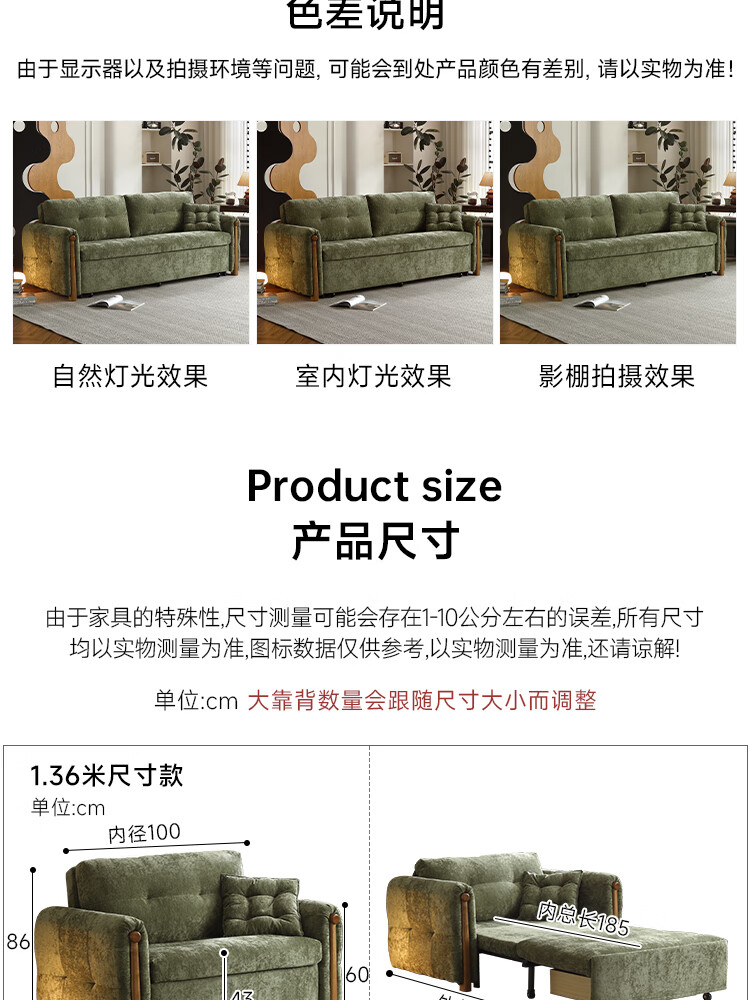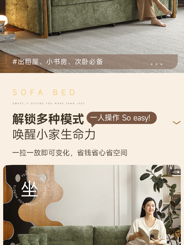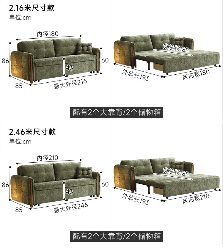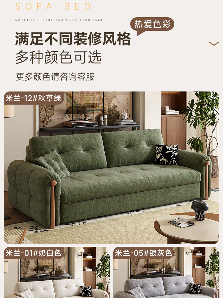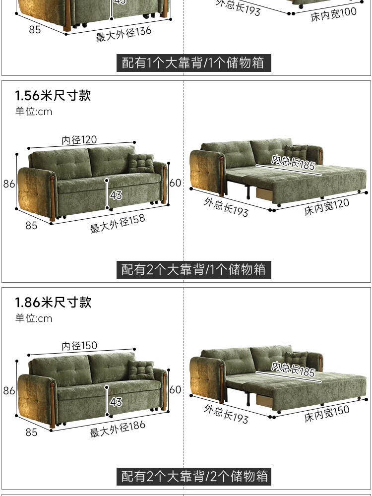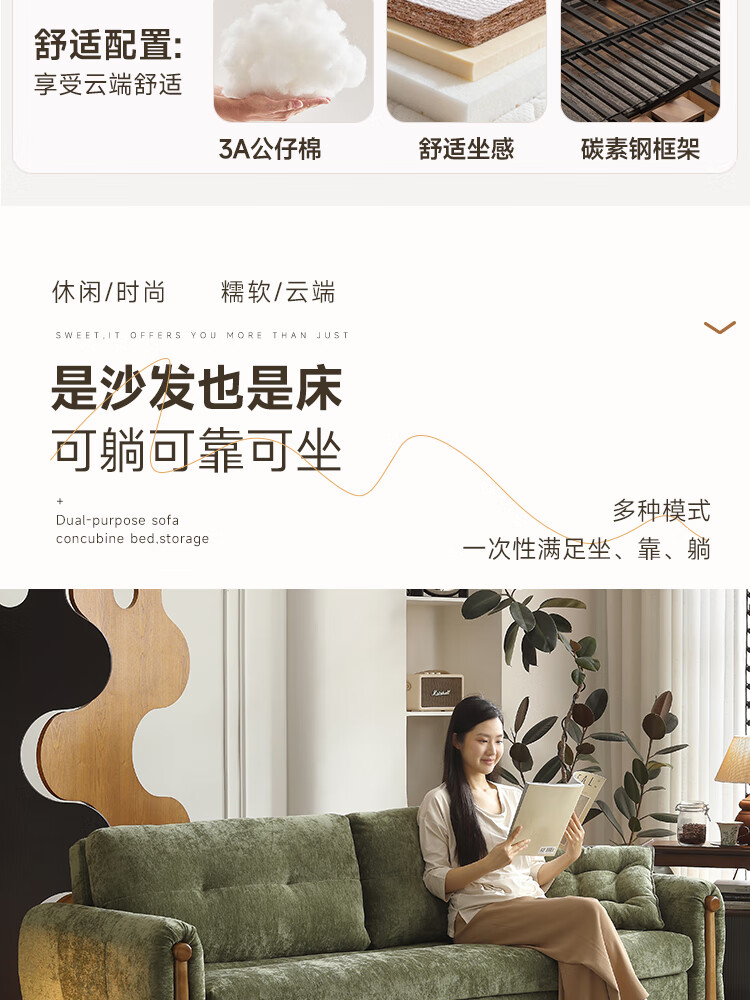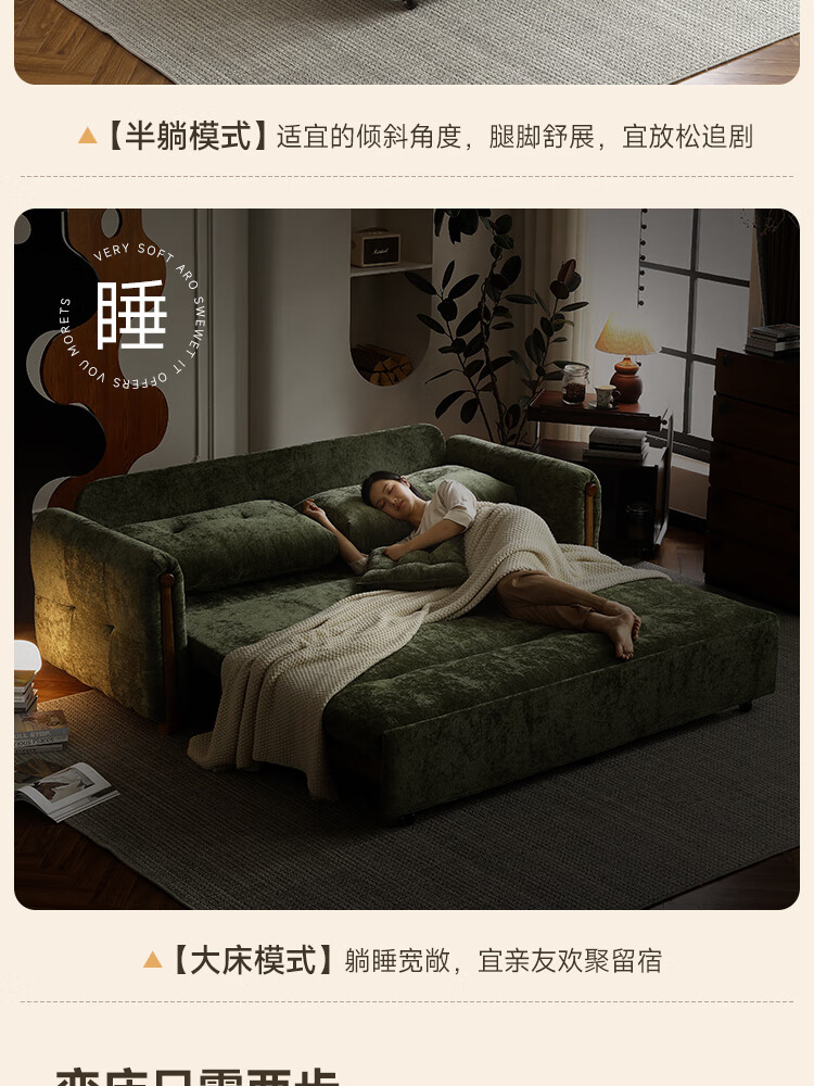 哈森诗丹可折叠沙发床一体两用2025新款小户型客厅雪尼尔沙发可以当床睡觉 外径:1.86m(无储物)S+级雪尼尔 舒适乳胶款(适中偏软)