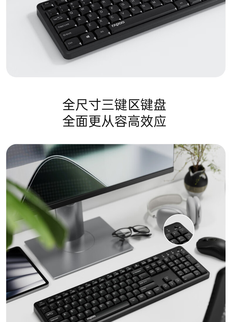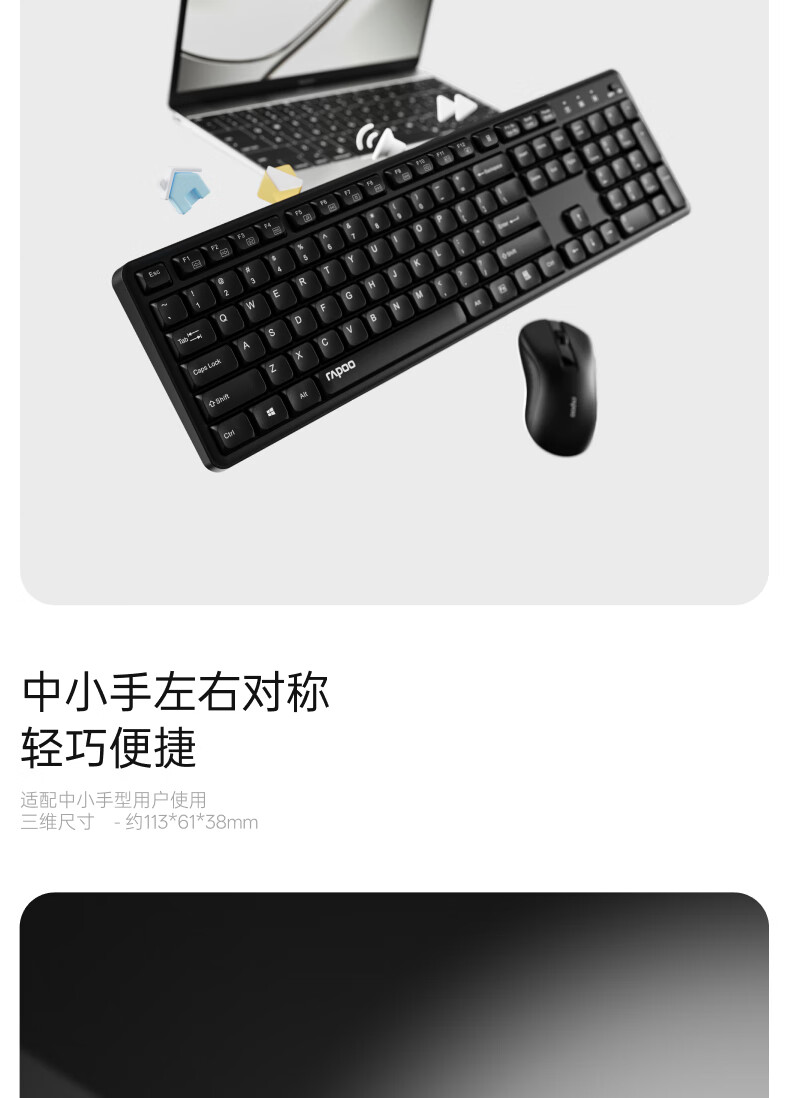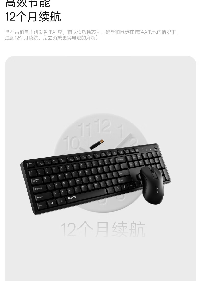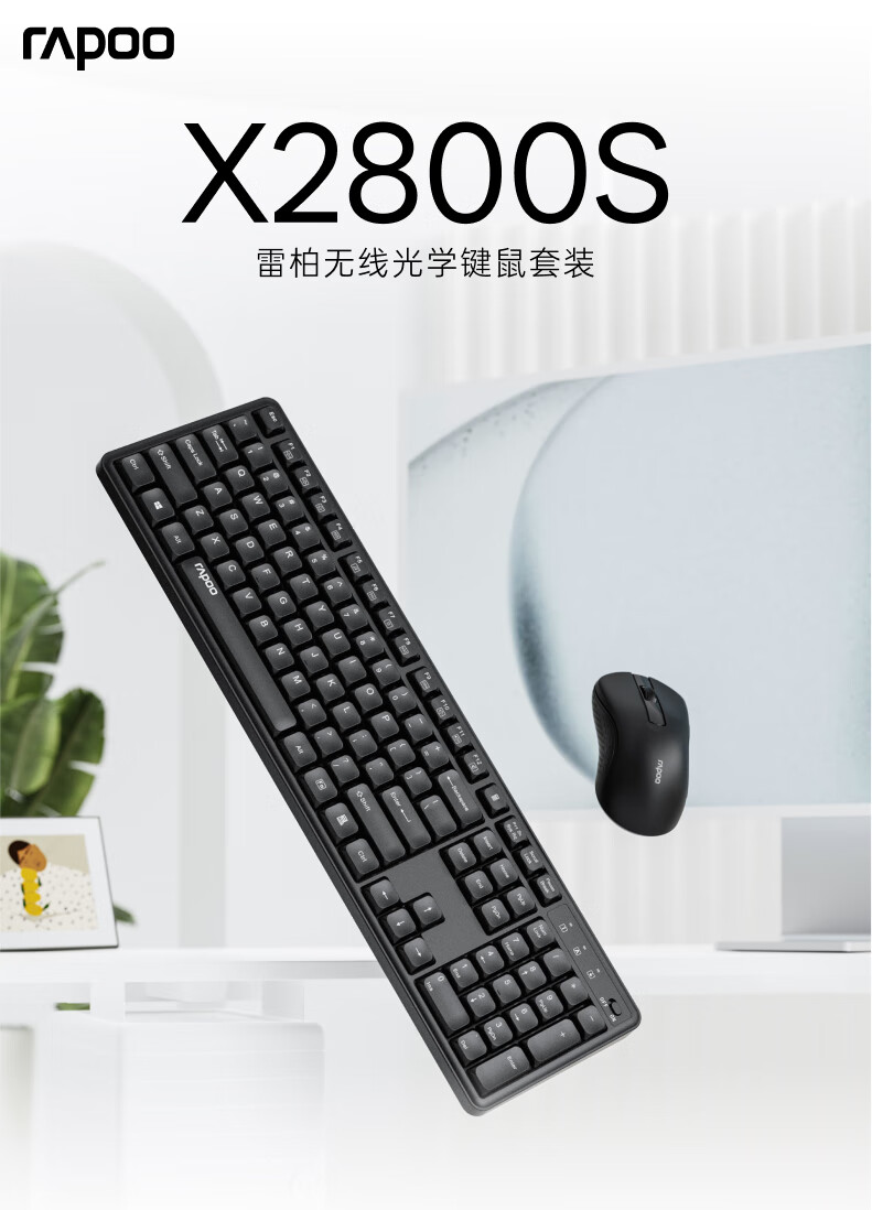 雷柏(Rapoo)X2800S 无线键盘鼠标套装 104键全尺寸13个多媒体按键 轻音设计笔记本电脑办公键鼠套装 黑色
