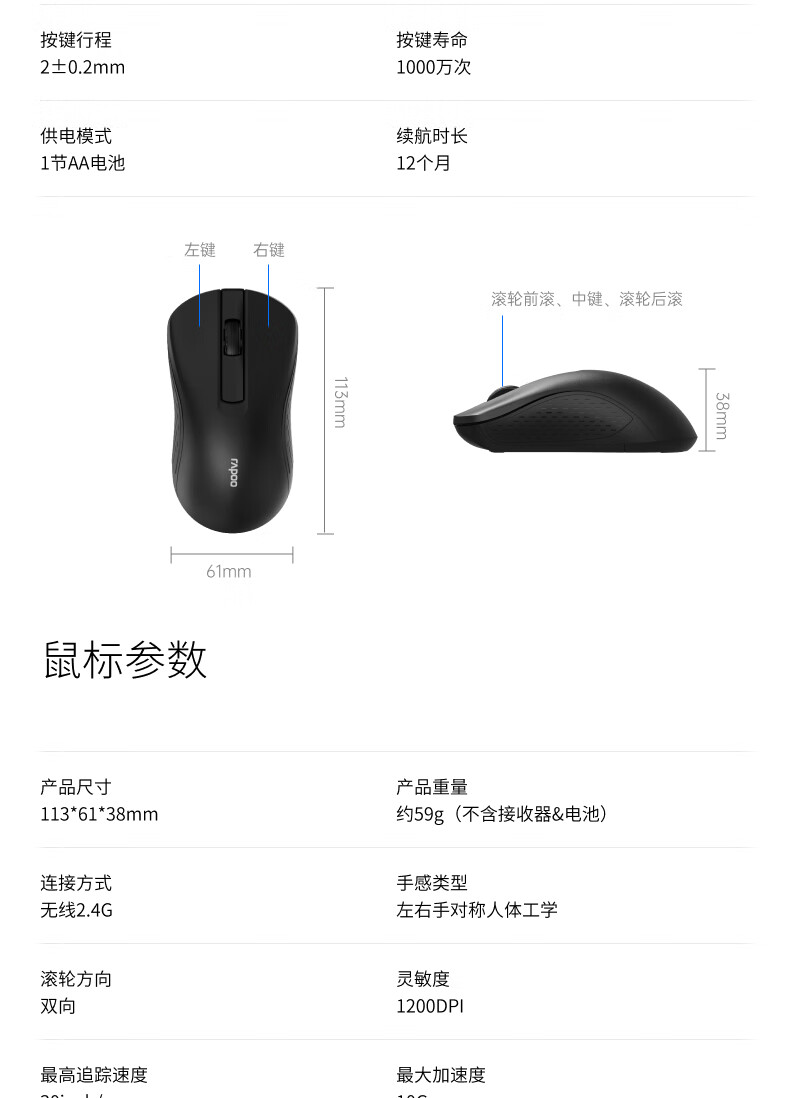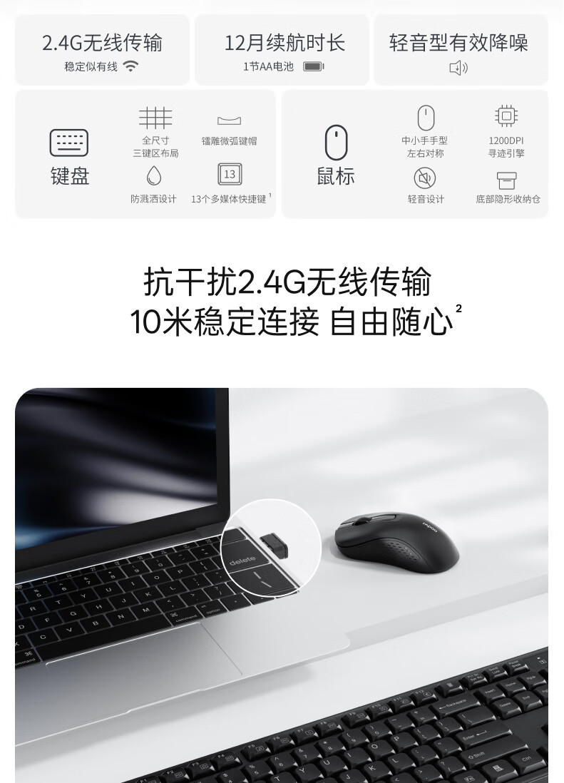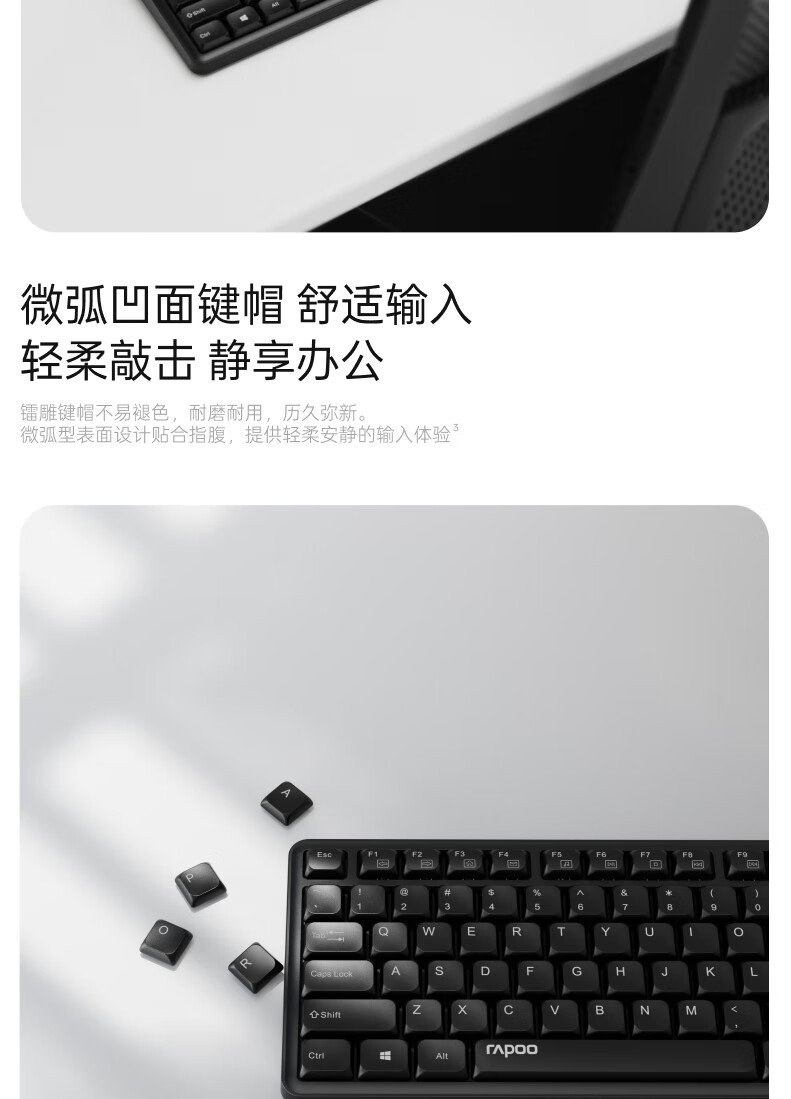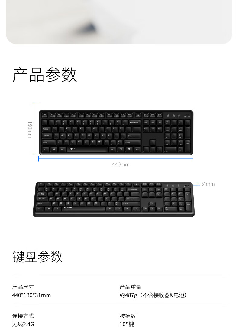 雷柏(Rapoo)X2800S 无线键盘鼠标套装 104键全尺寸13个多媒体按键 轻音设计笔记本电脑办公键鼠套装 黑色