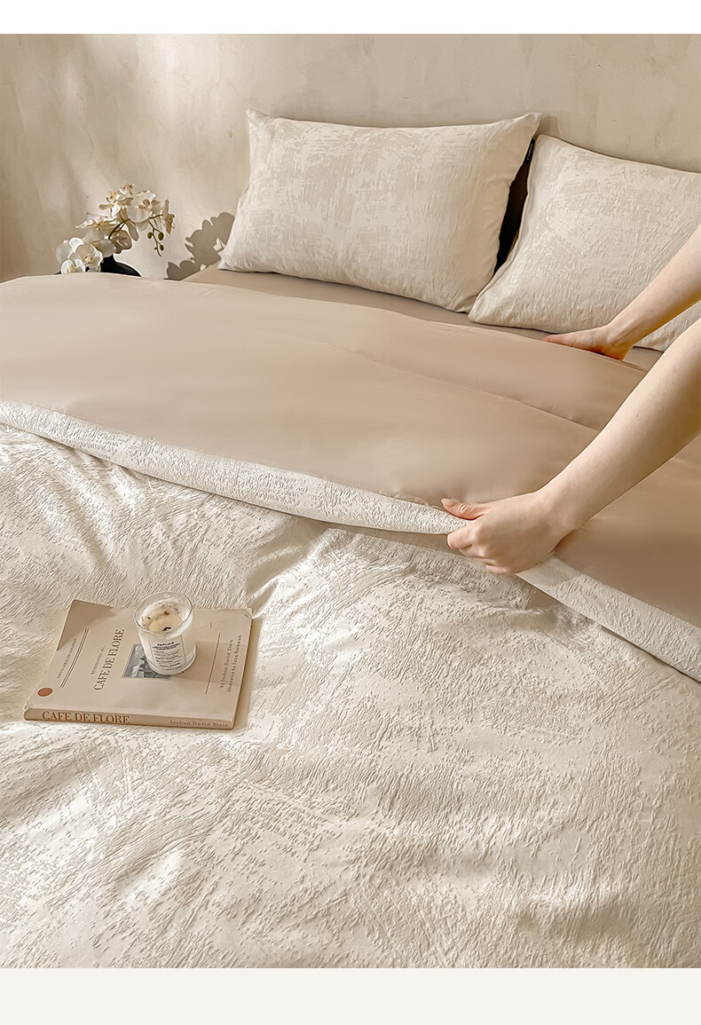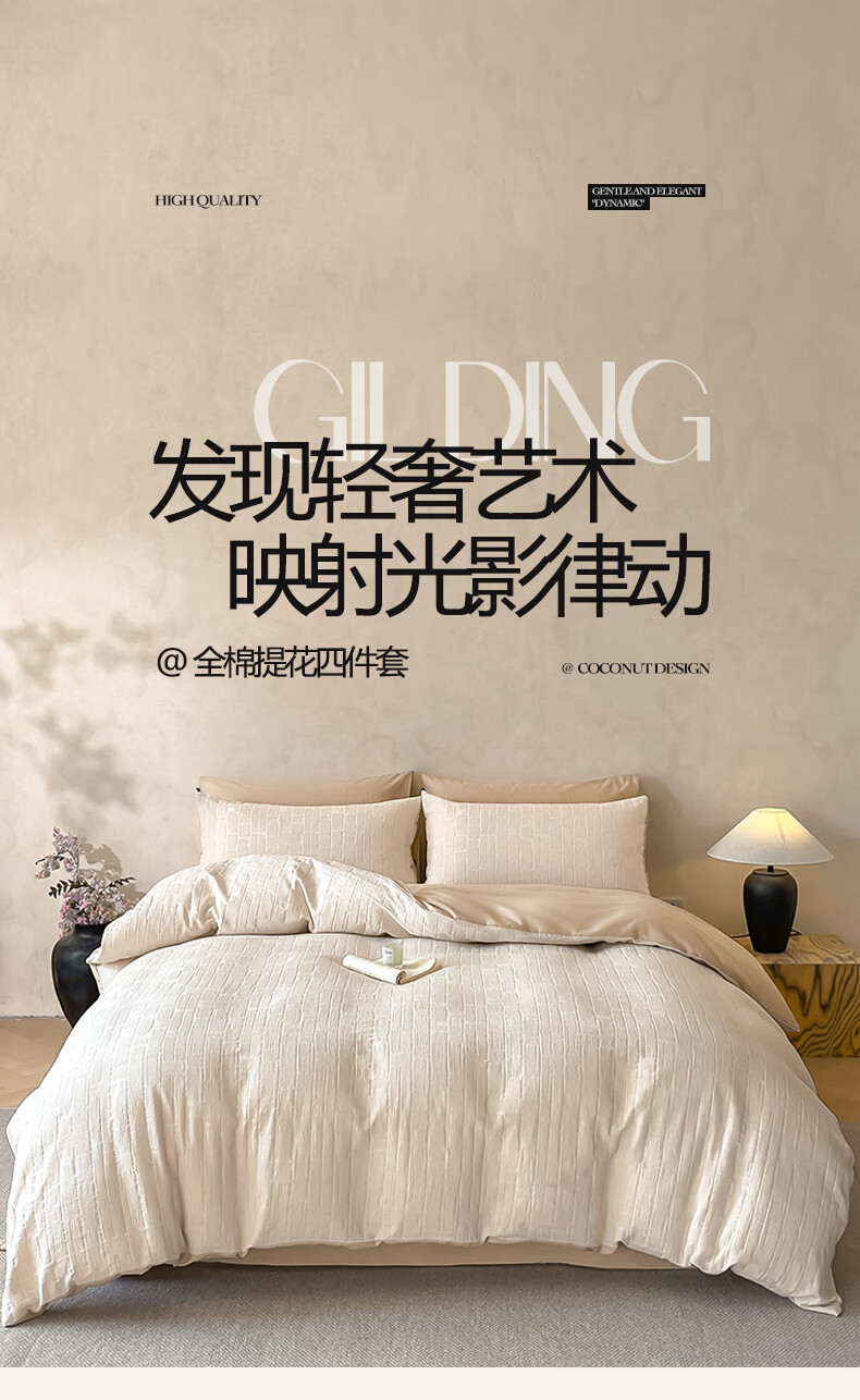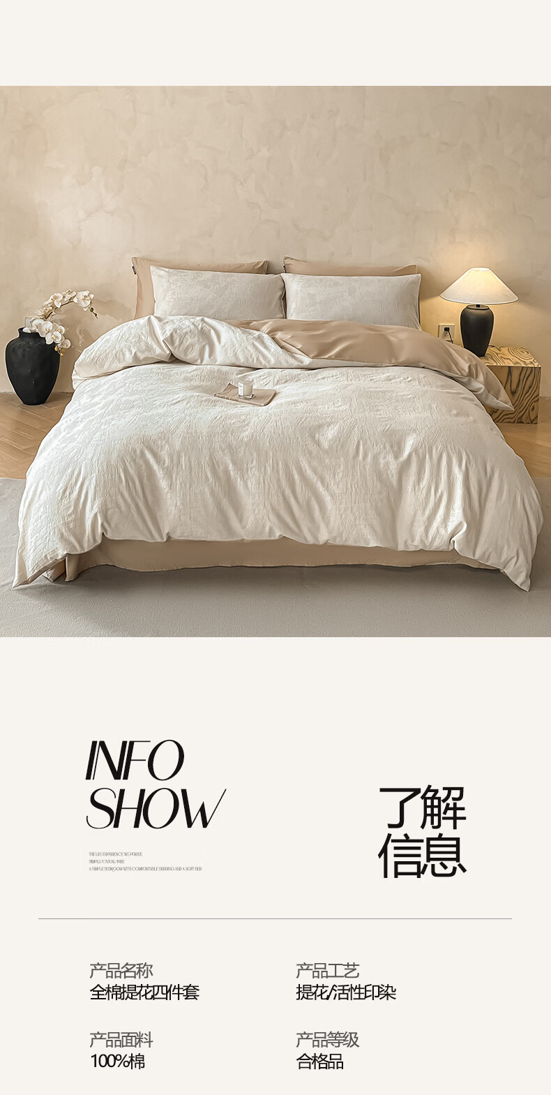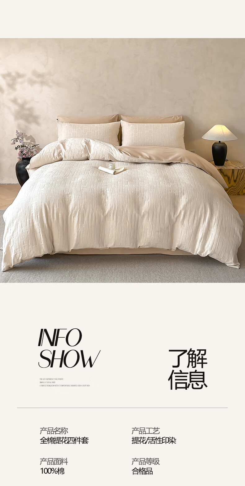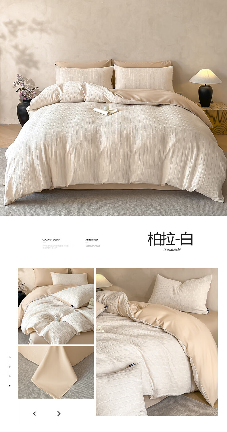 无印良品高端全棉床上四件套100%纯棉轻奢高级感家用床单被套床笠款三件套 柏拉-白 【全棉提花 柔软细腻】 1.8m 床单款 四件套-被套200x230cm