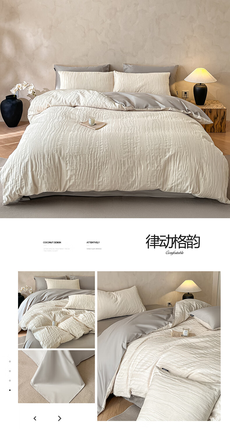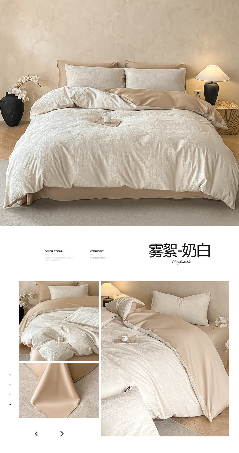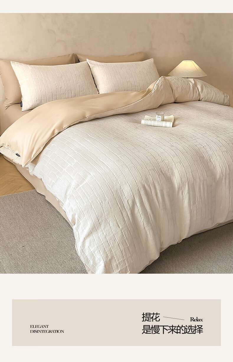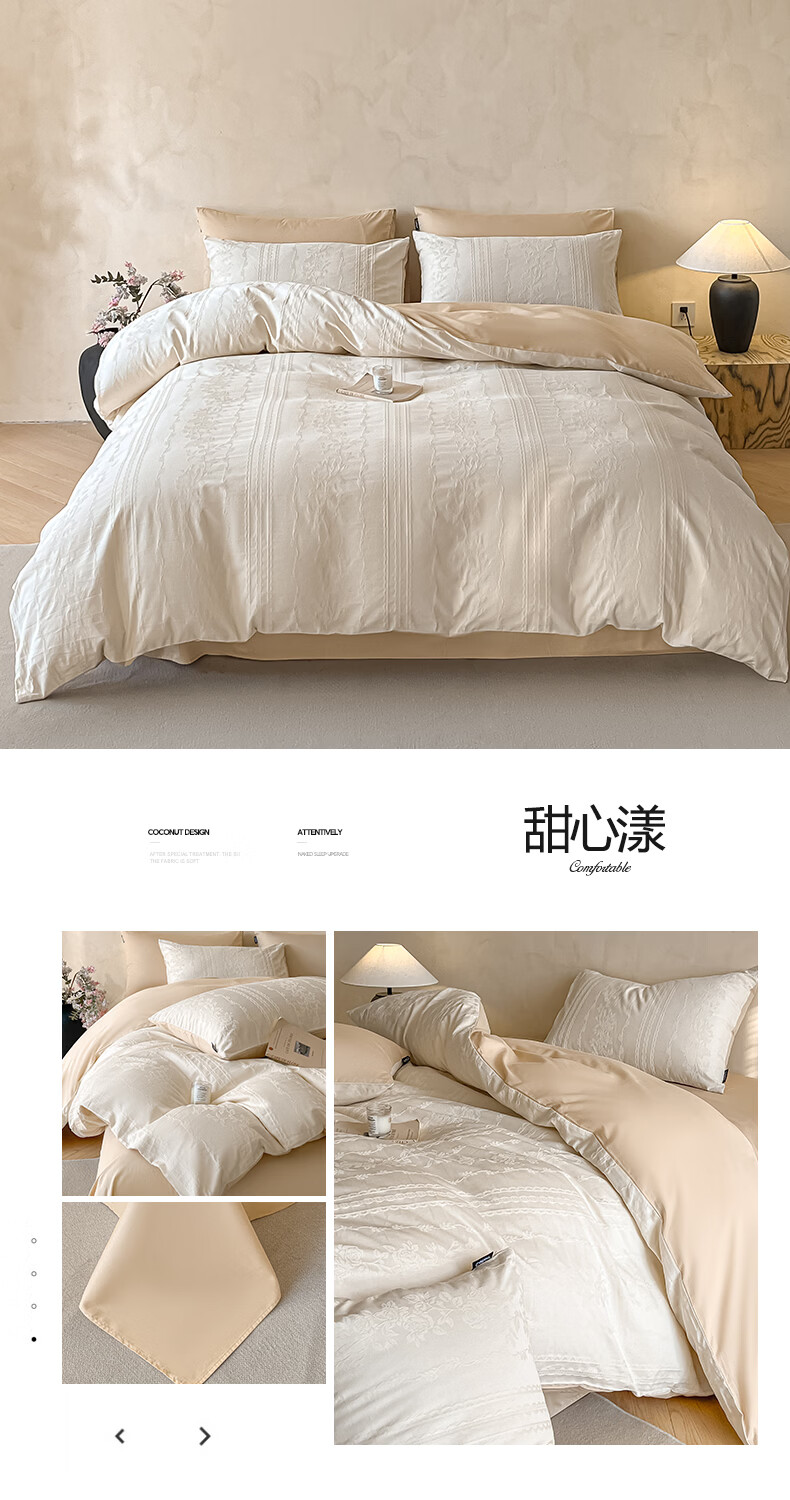 无印良品高端全棉床上四件套100%纯棉轻奢高级感家用床单被套床笠款三件套 柏拉-白 【全棉提花 柔软细腻】 1.8m 床单款 四件套-被套200x230cm