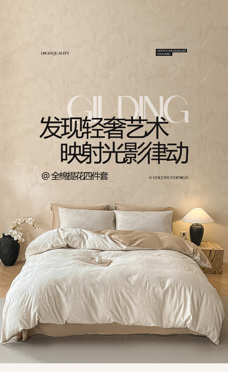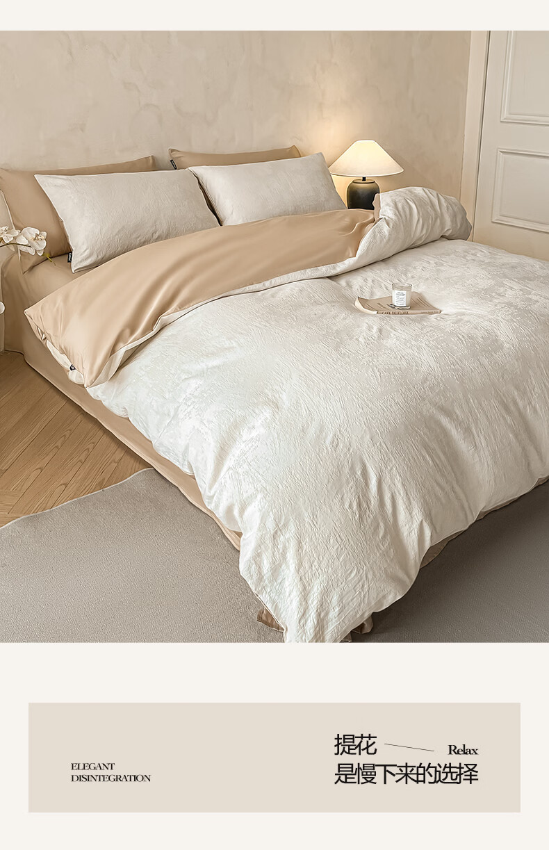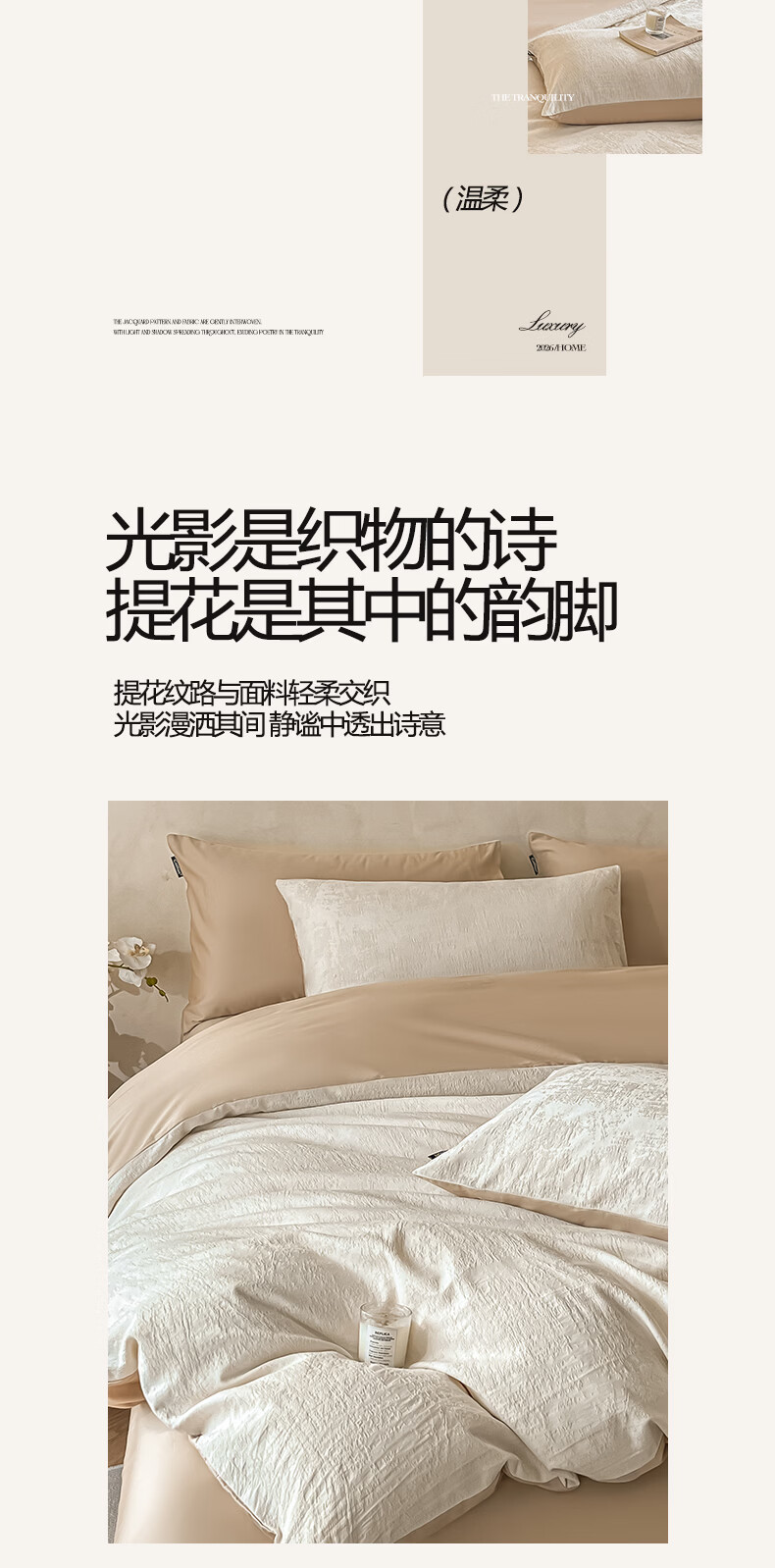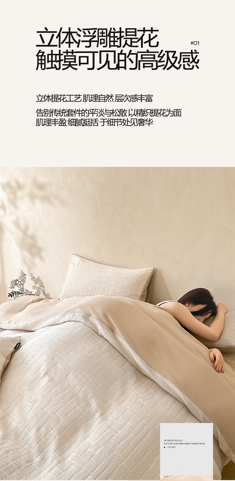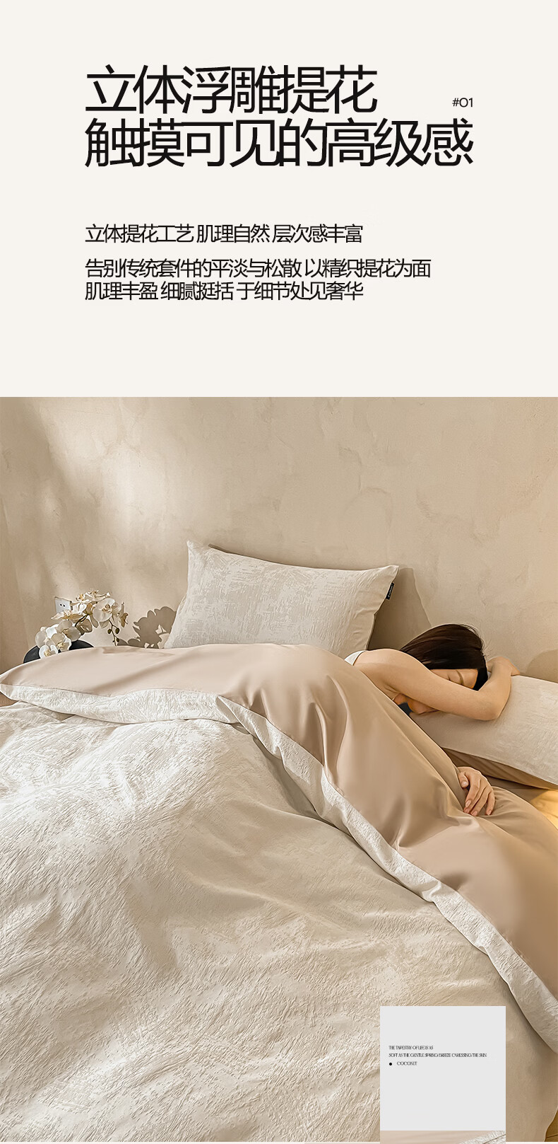 无印良品高端全棉床上四件套100%纯棉轻奢高级感家用床单被套床笠款三件套 柏拉-白 【全棉提花 柔软细腻】 1.8m 床单款 四件套-被套200x230cm