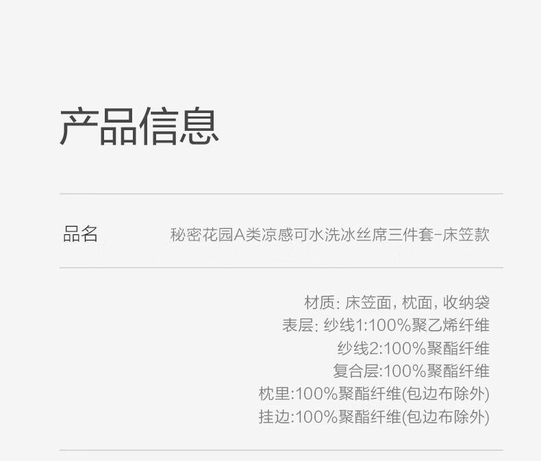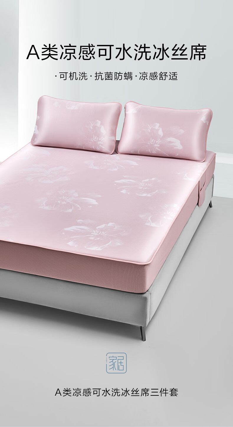 罗莱家纺婴幼儿A类抗菌防螨可机洗水洗冰丝席空调席子凉席床笠款 秘密花园 床笠款-粉色 两件套 120cm*200cm