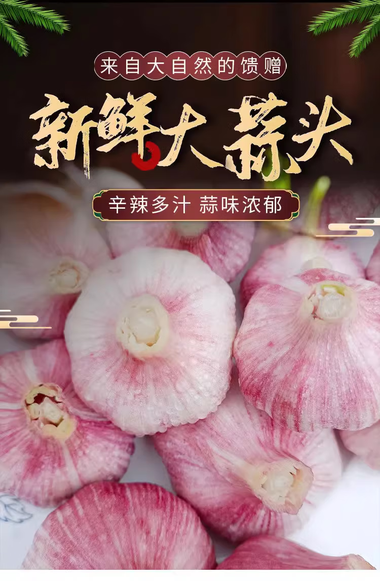 绿亚梦新鲜蒜新鲜大蒜现挖新鲜多瓣紫皮大蒜大蒜头湿蒜红皮鲜蒜腊八蒜 5斤中果