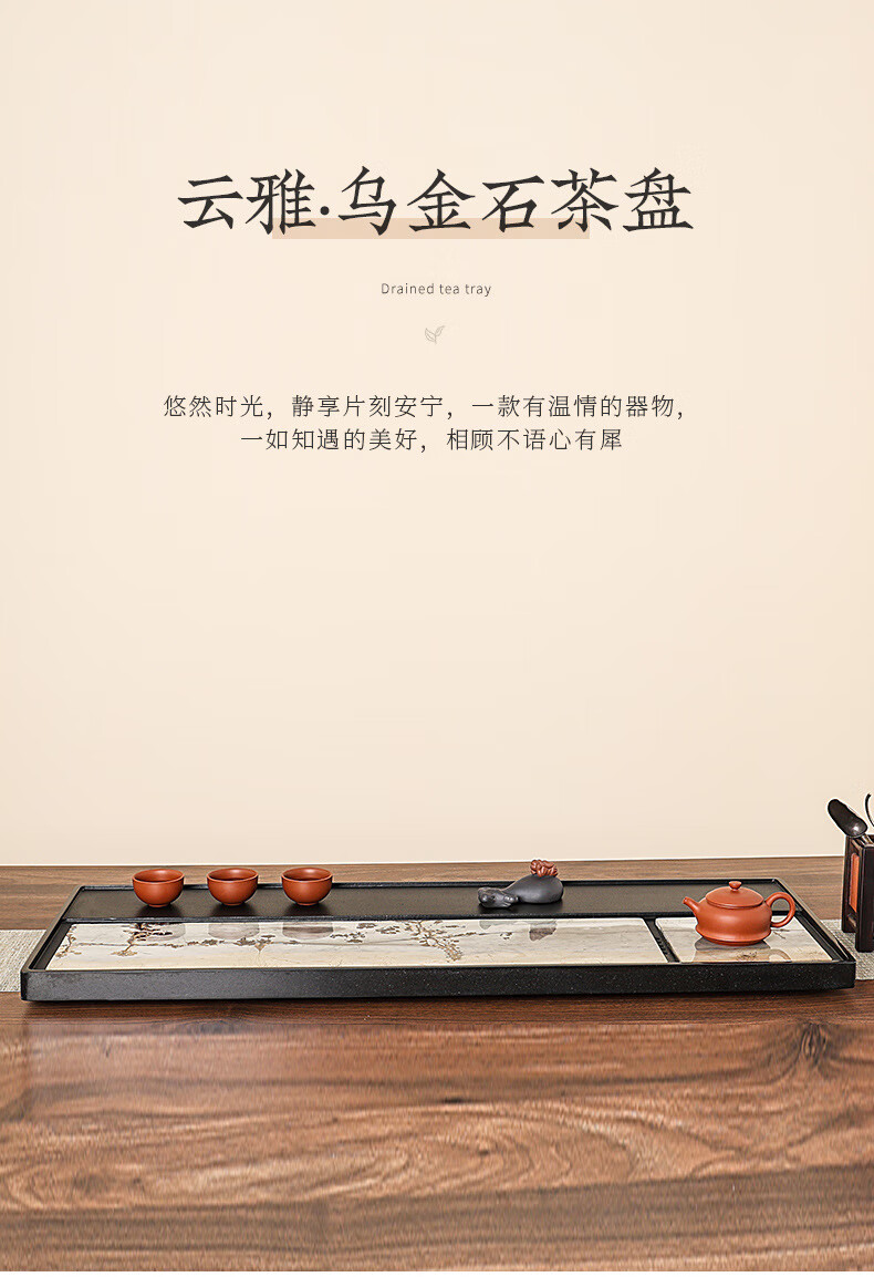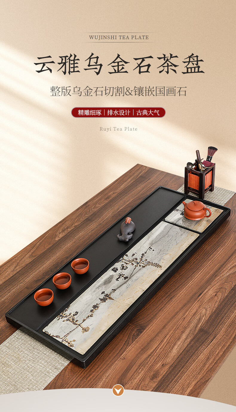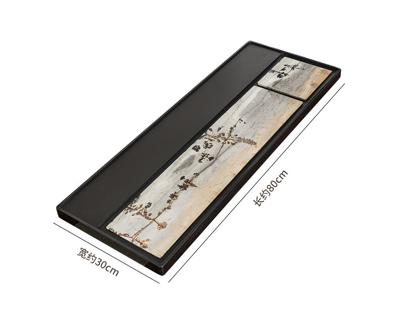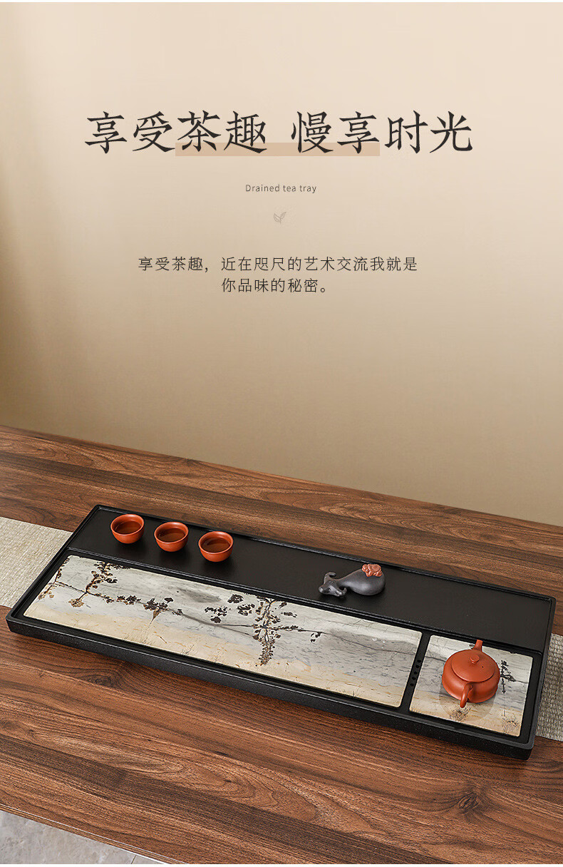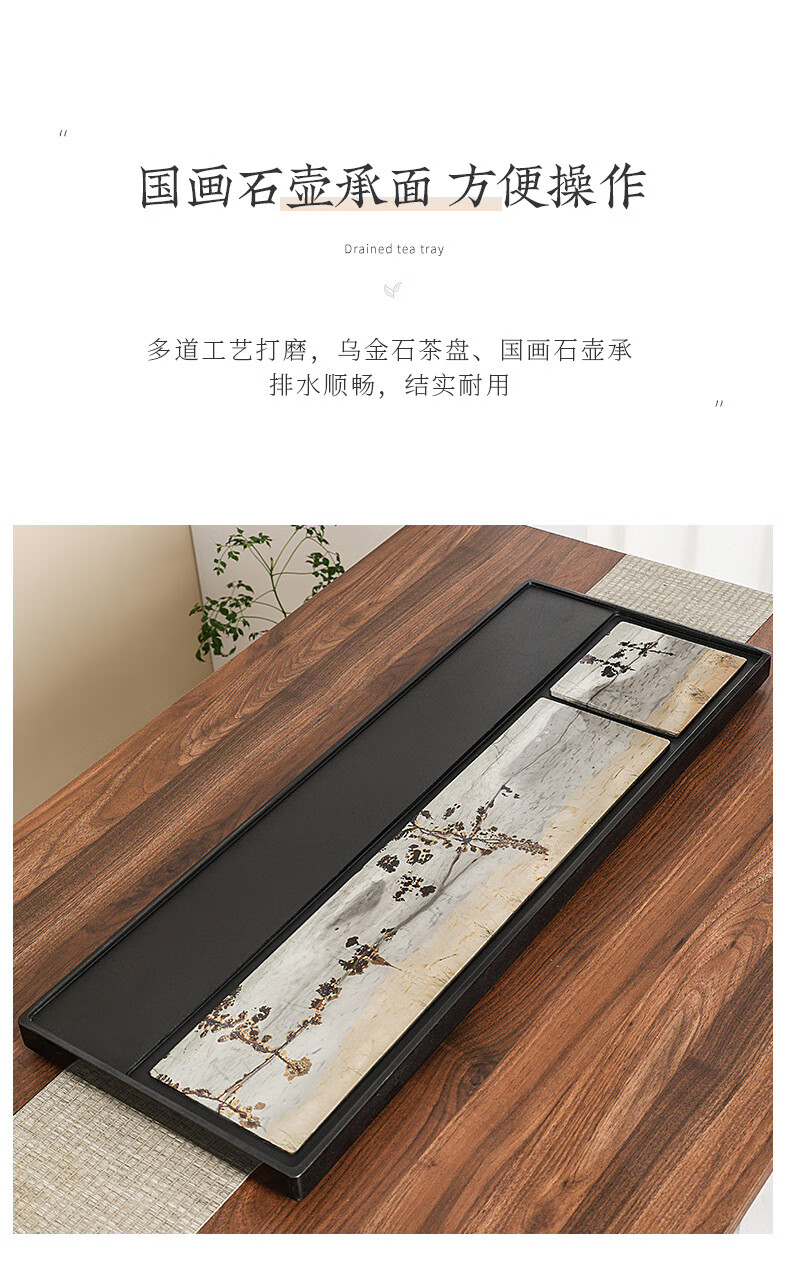 希格鲨茶盘乌金石国画石整块天然原石高端轻奢茶海家用客厅功夫茶具茶台 【玄青国画】尺寸:50*30*3cm