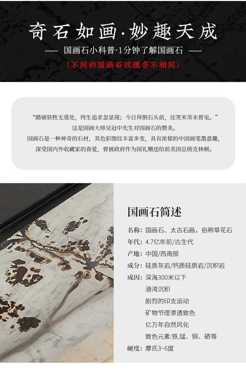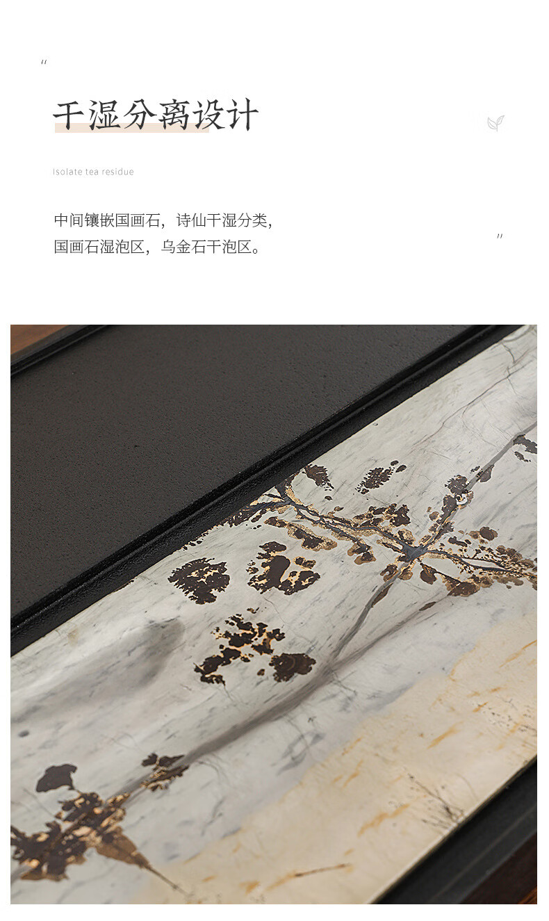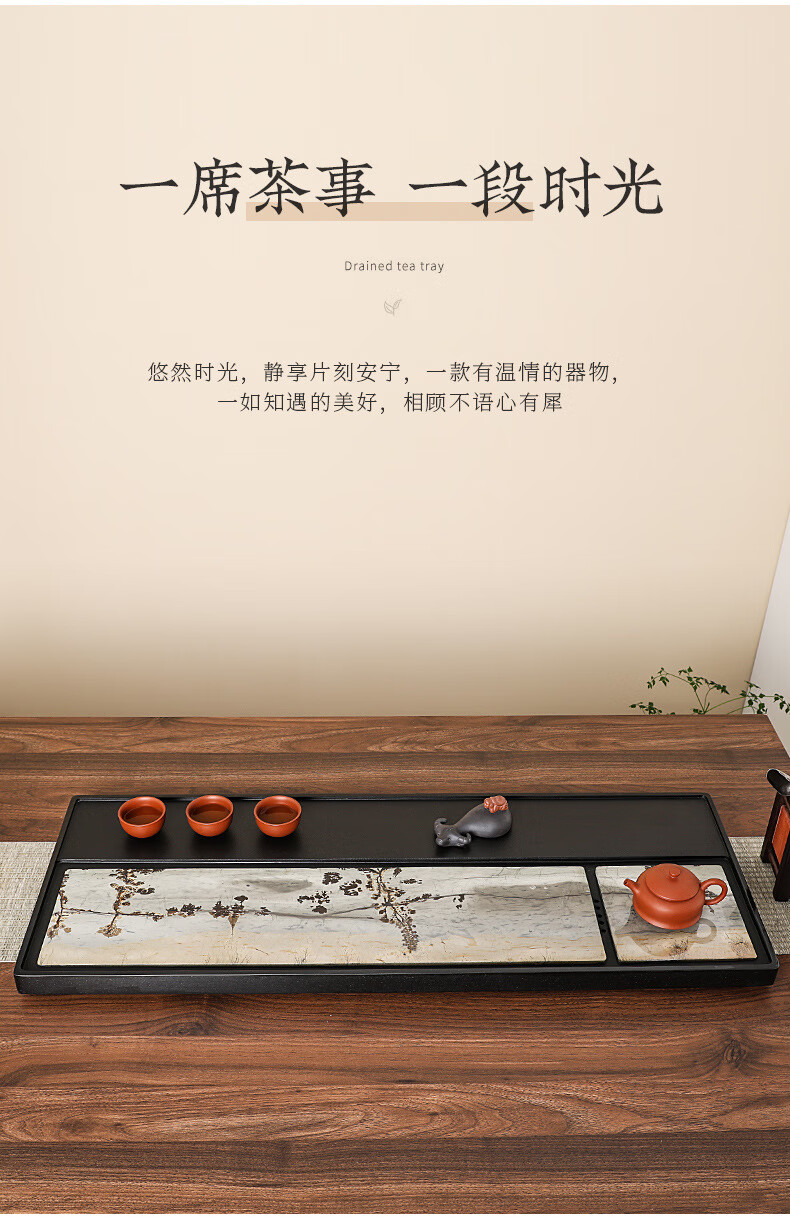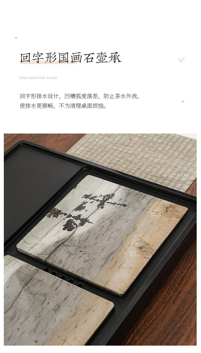 希格鲨茶盘乌金石国画石整块天然原石高端轻奢茶海家用客厅功夫茶具茶台 【玄青国画】尺寸:50*30*3cm
