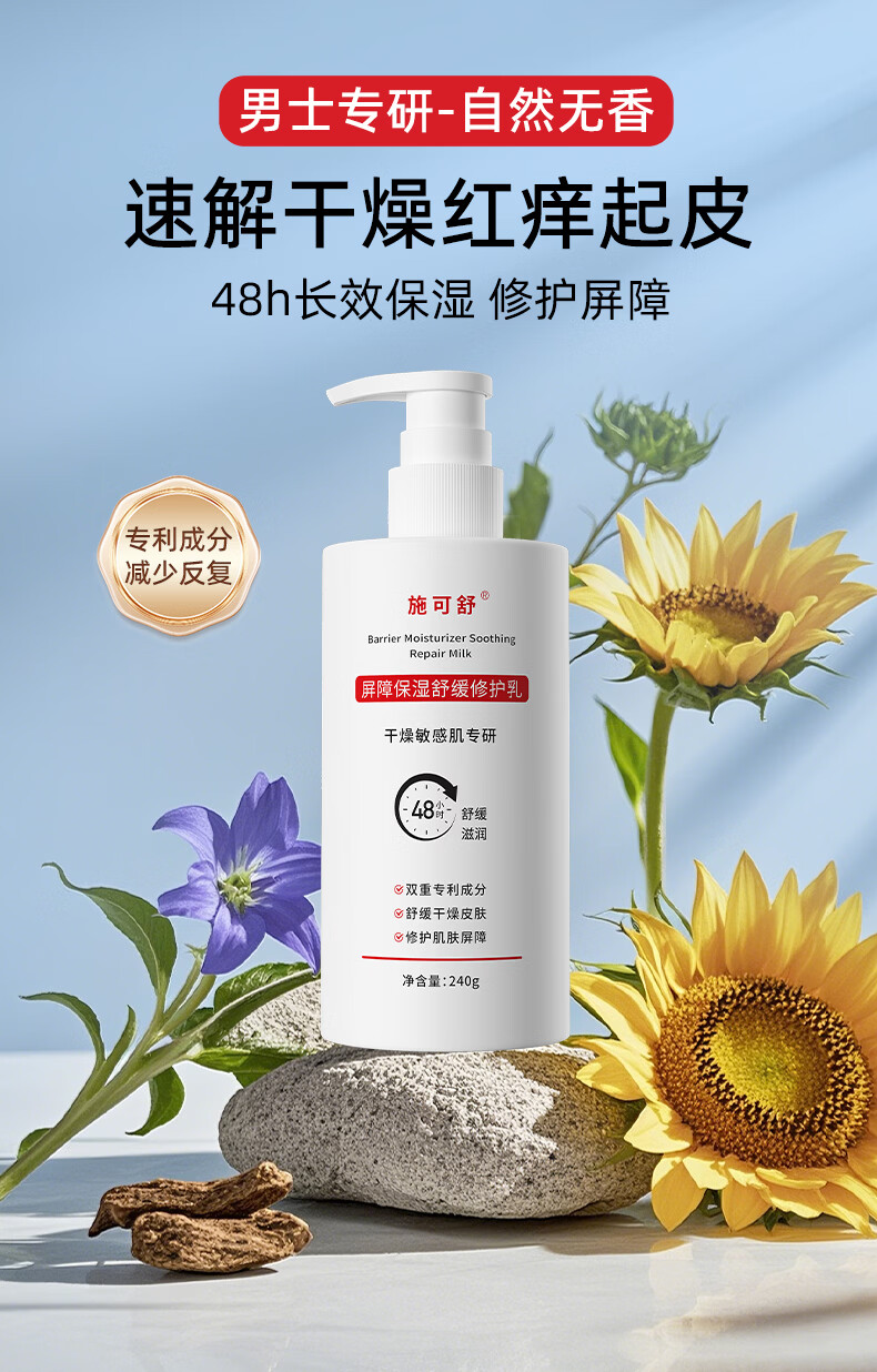 施可舒男士无香型身体乳全身皮肤干燥干痒起皮滋润保湿补水清爽润肤乳霜 【反复干痒红】屏障修护乳240gx2瓶