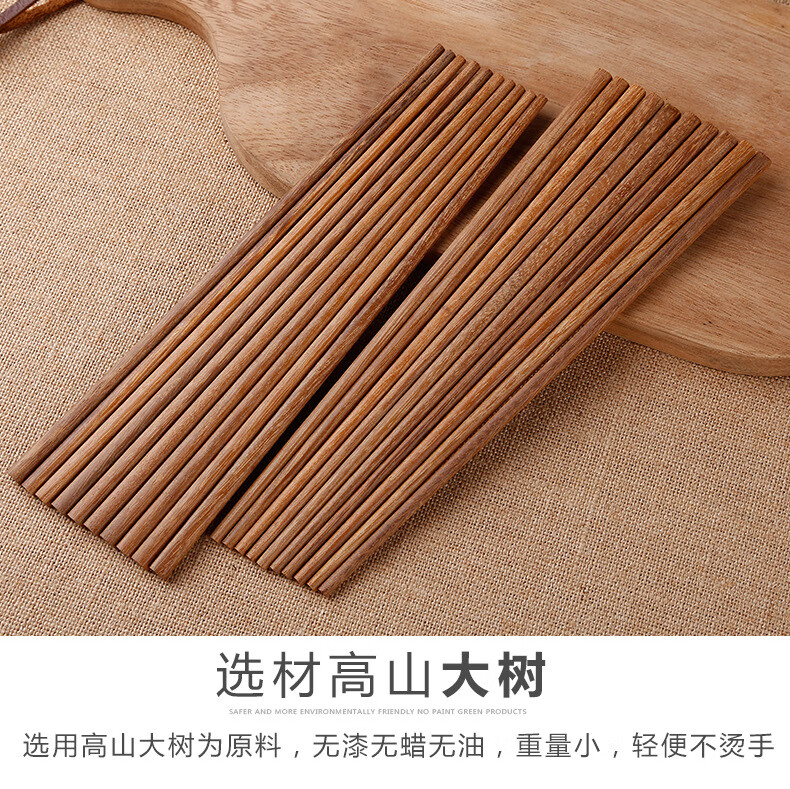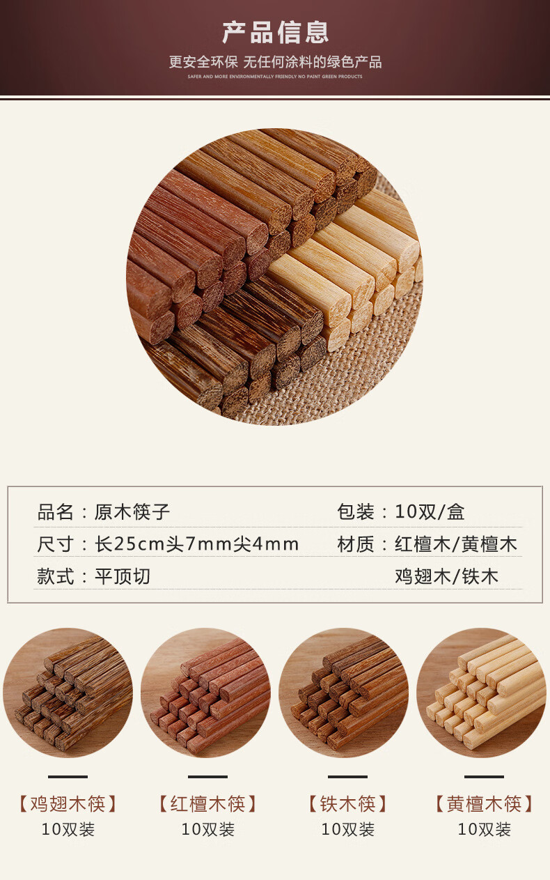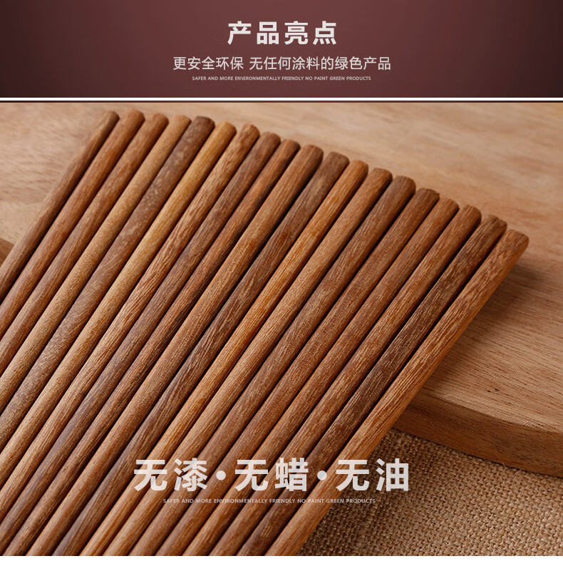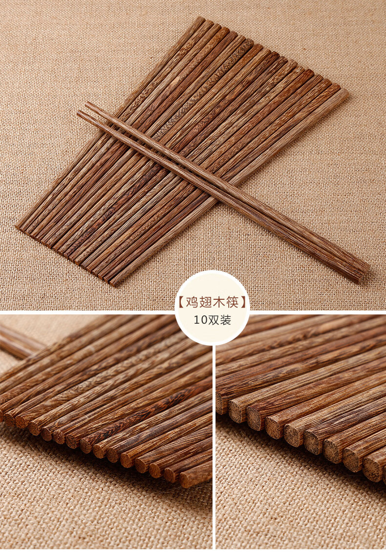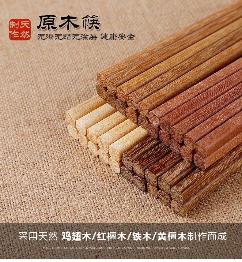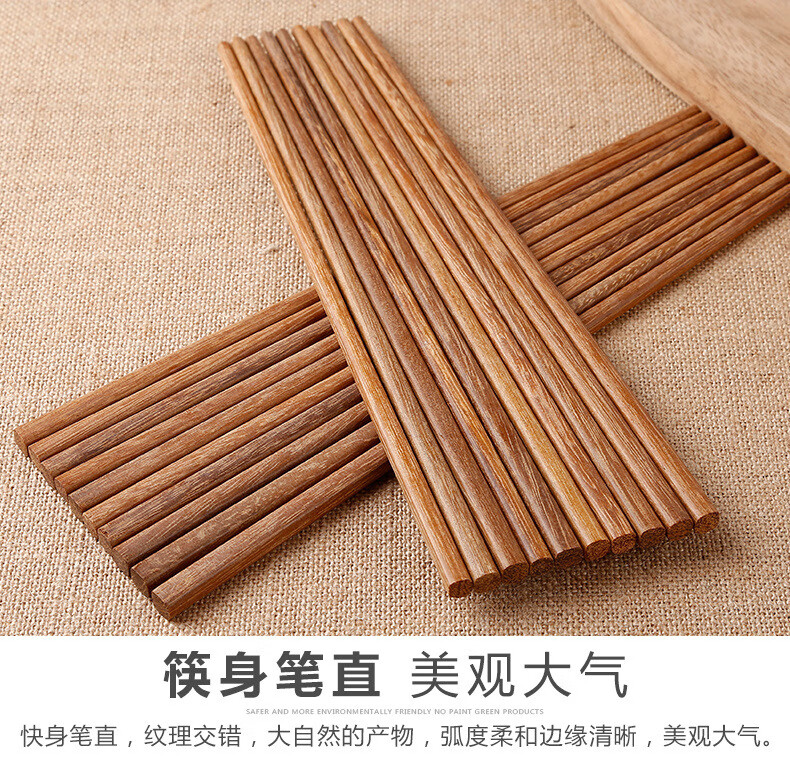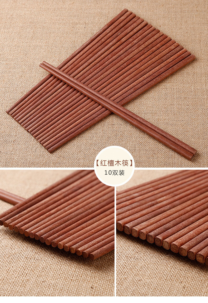 【直发】红檀木鸡翅木筷子家用无漆无蜡原木实木防滑木筷子 无漆红檀木彩盒装 10双