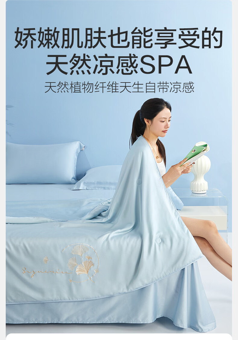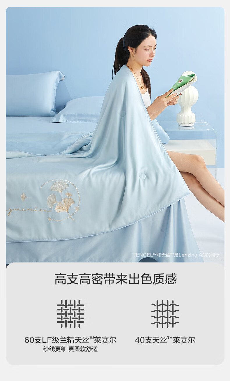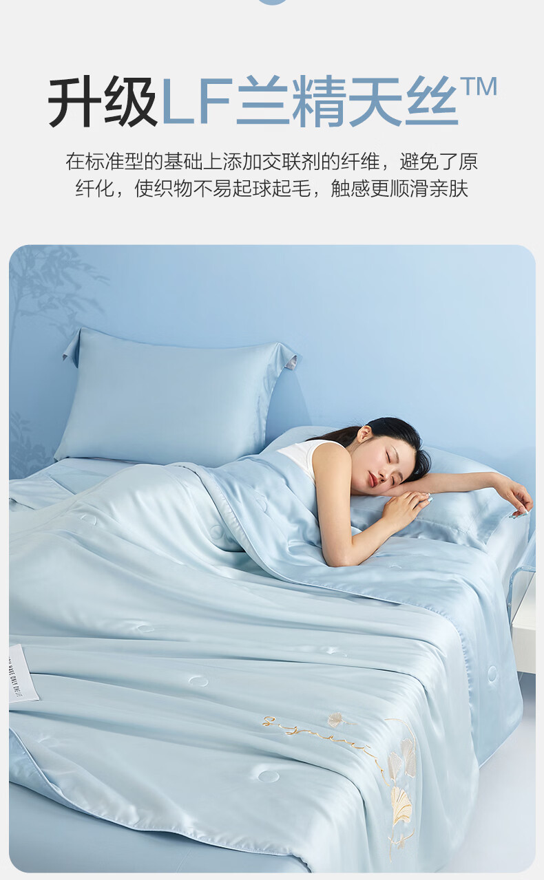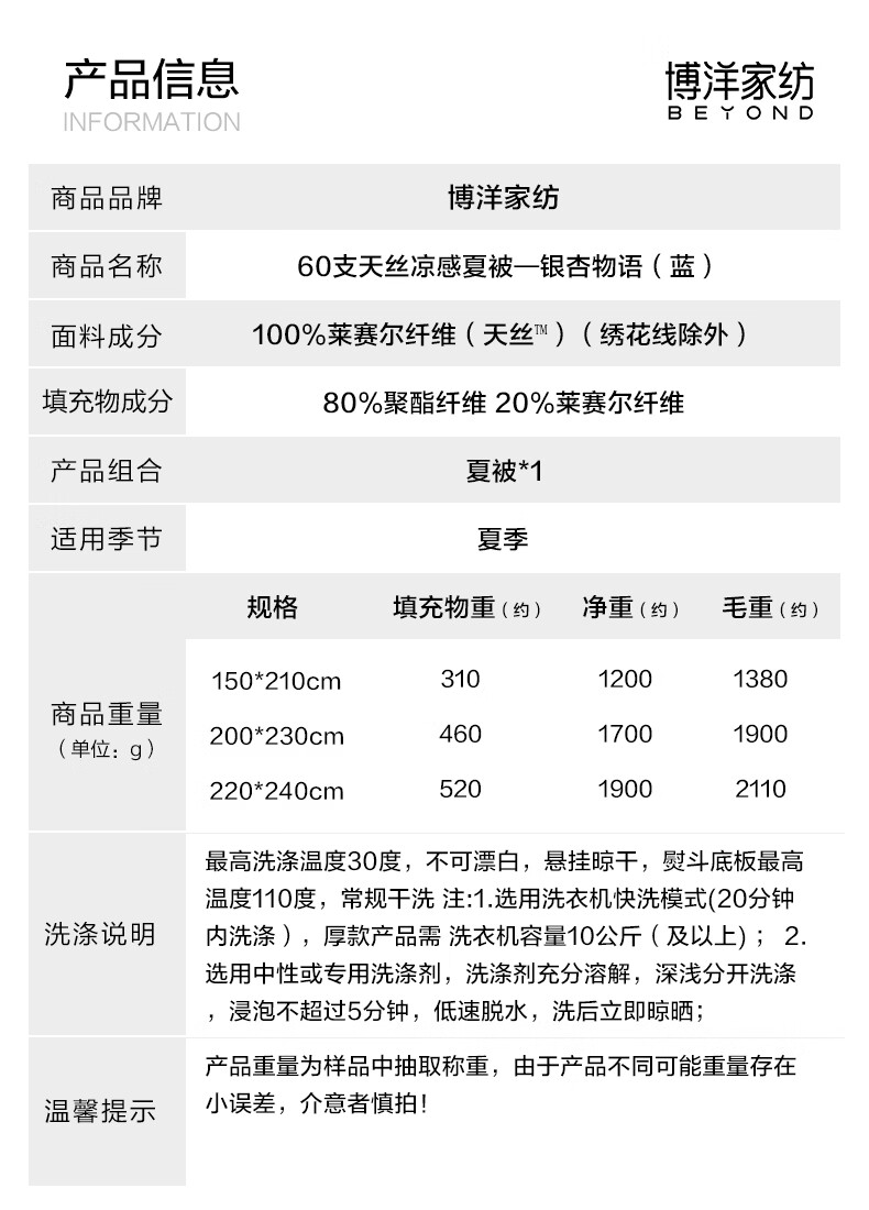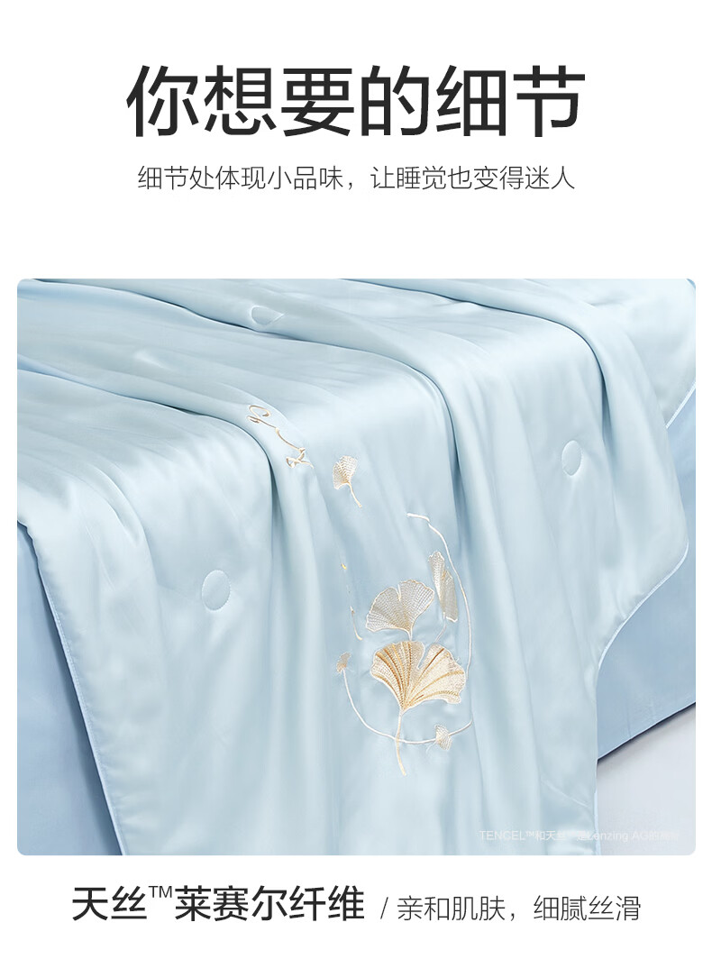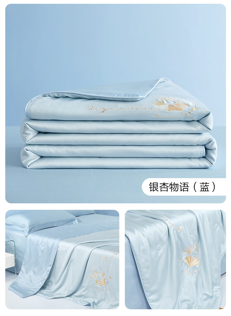博洋(BEYOND)博洋家纺60S兰精天丝夏凉被空调被可机洗莱赛尔夏天凉感被 60支天丝凉感夏被—银杏物语(蓝) 150*210cm