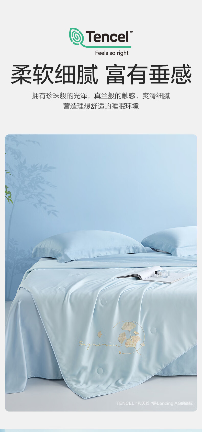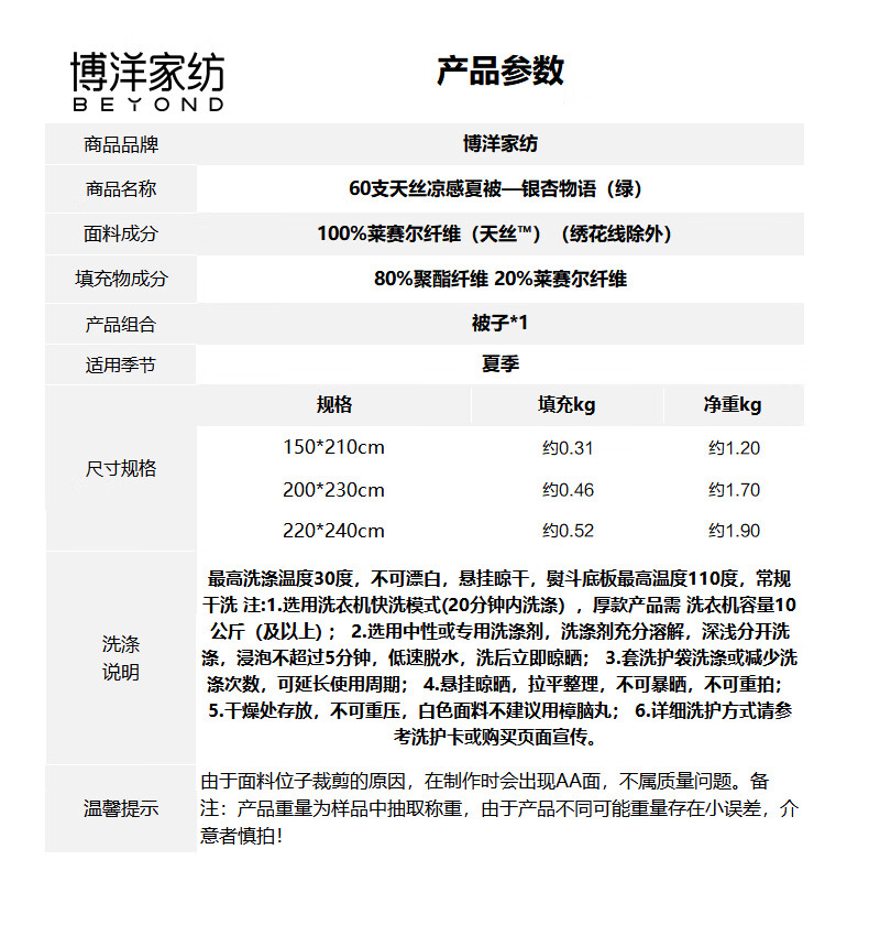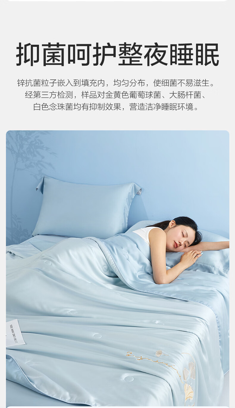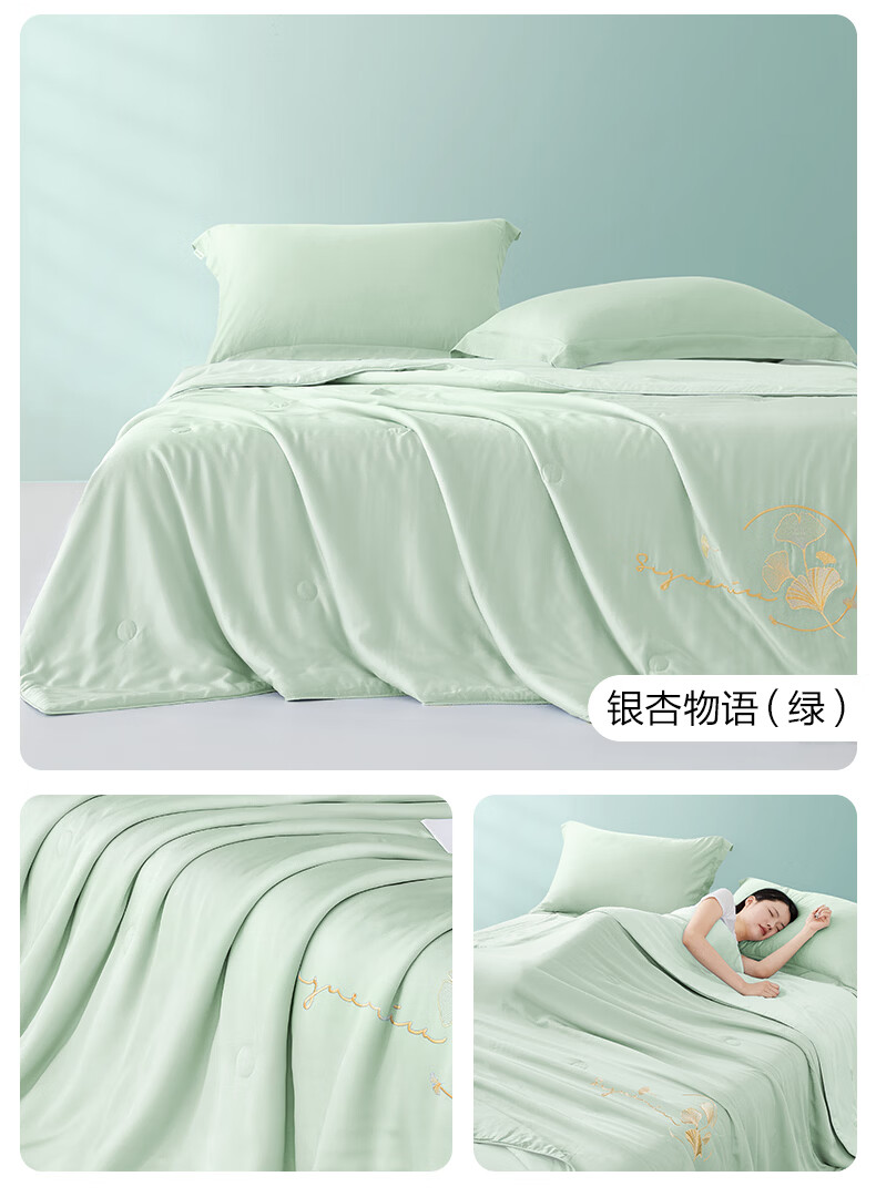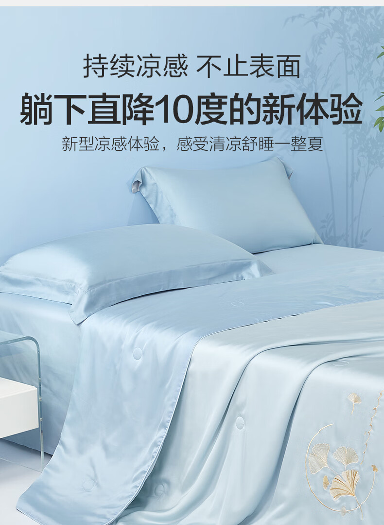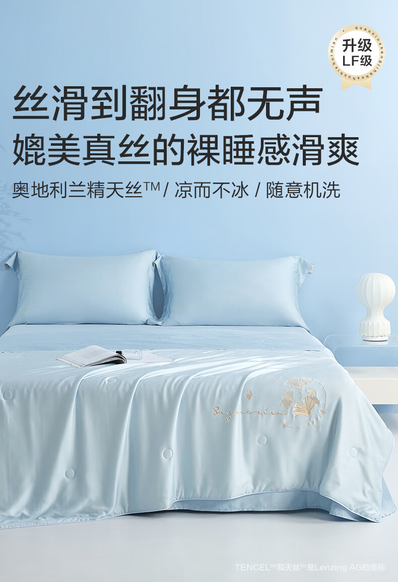 博洋(BEYOND)博洋家纺60S兰精天丝夏凉被空调被可机洗莱赛尔夏天凉感被 60支天丝凉感夏被—银杏物语(蓝) 150*210cm