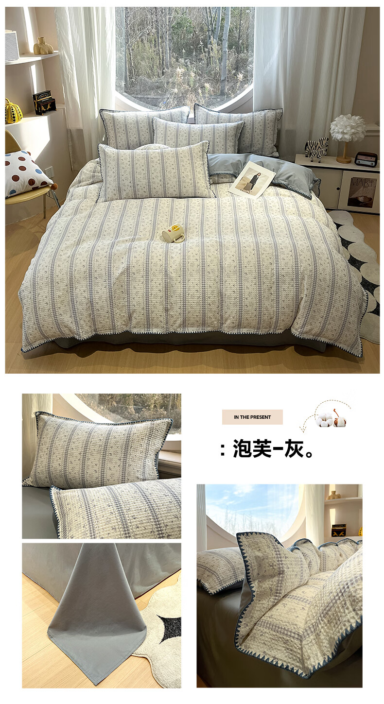 无印良品全棉床品四件套纯棉100%小清新花卉风单双人四季通用可裸睡三件套 苏屿【全棉面料 清新印花】 1.8m 床单款 被套200*230cm