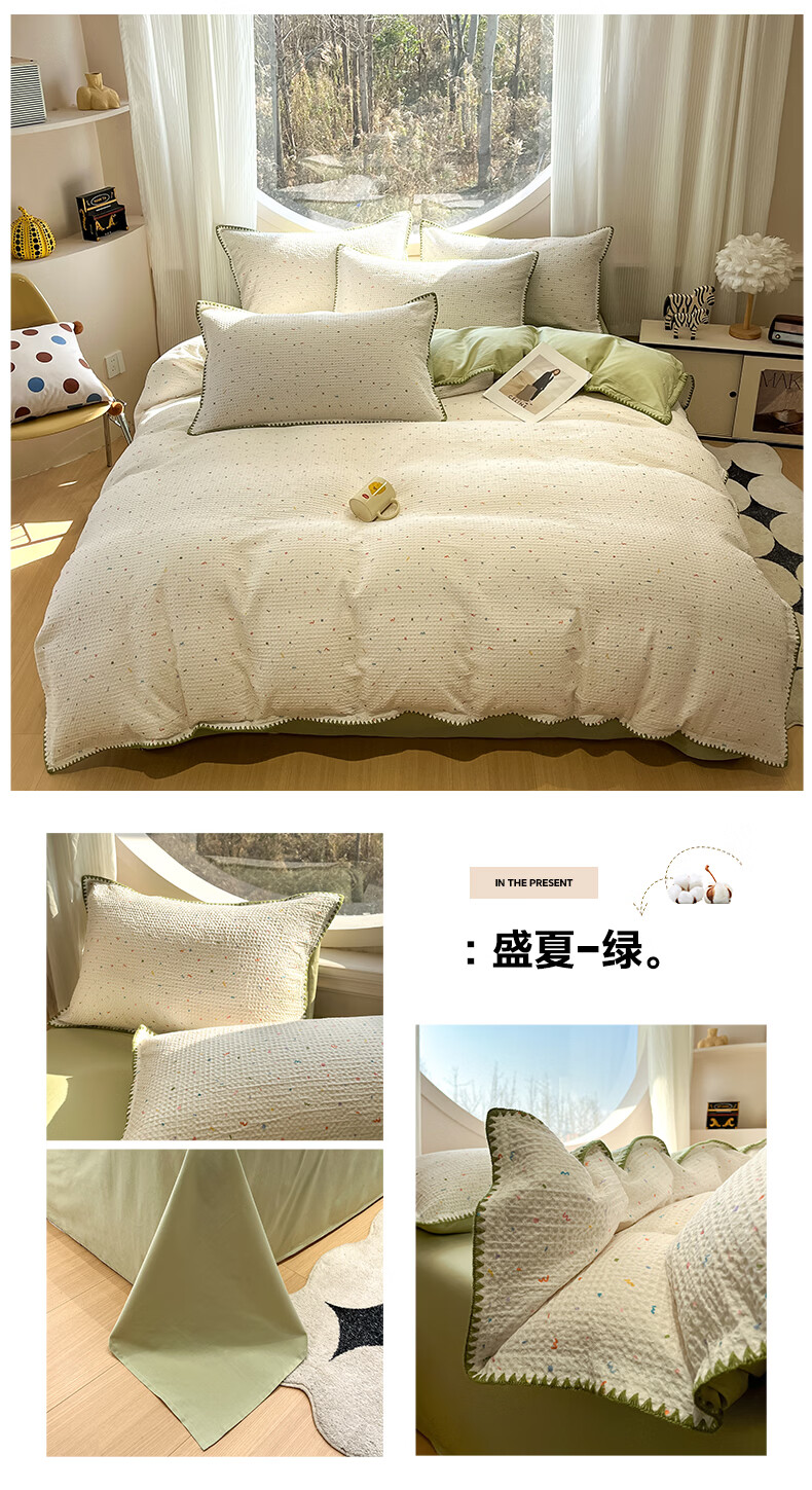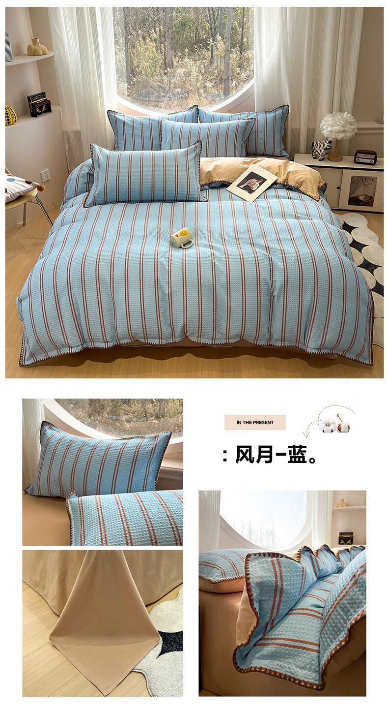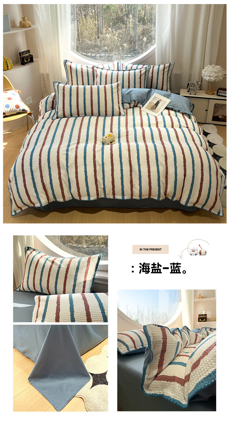 苏萱2026新款全棉纯棉华夫格夏被四件套夏季夏凉被空调被可机洗单双人 简森兰 单人夏被-150*200cm