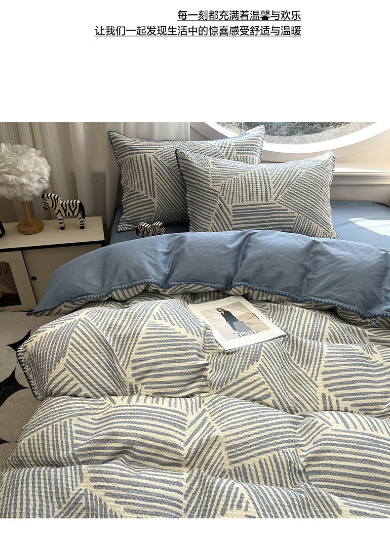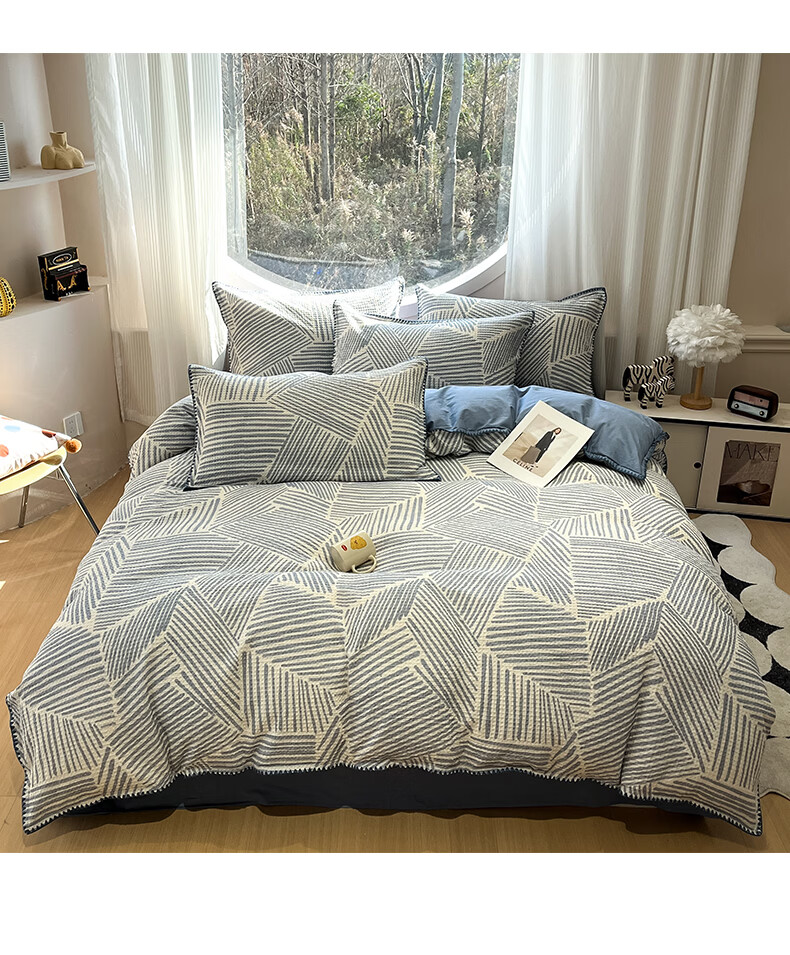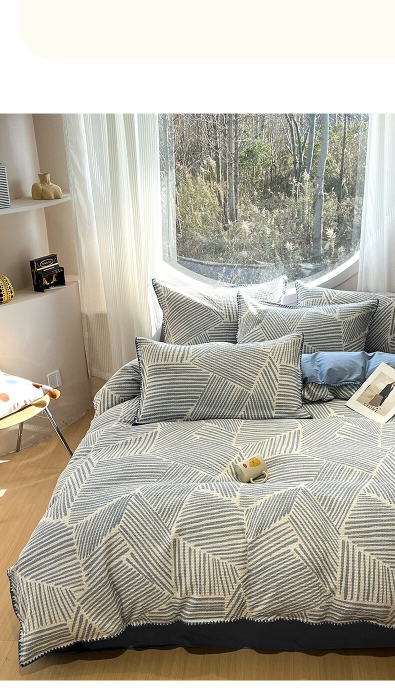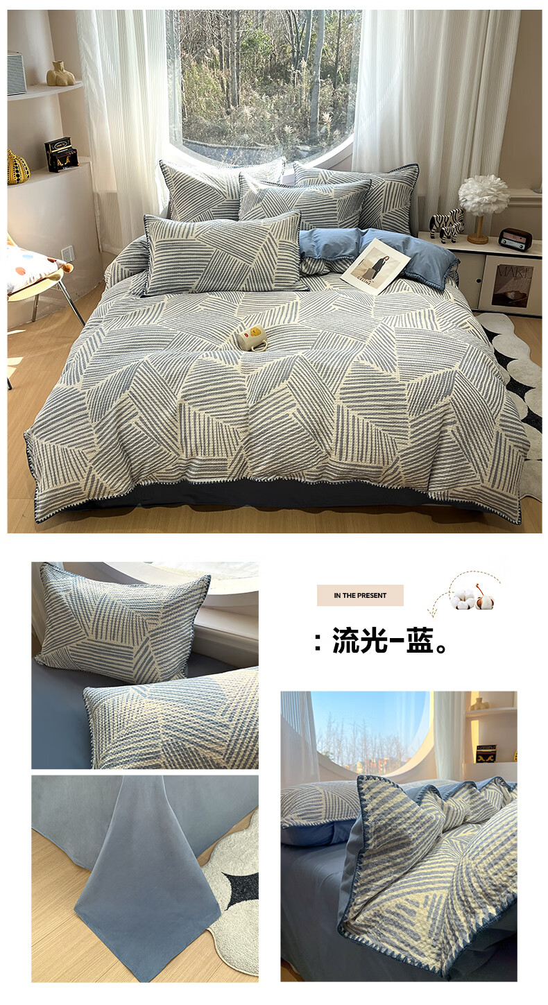 苏萱2026新款全棉纯棉华夫格夏被四件套夏季夏凉被空调被可机洗单双人 简森兰 单人夏被-150*200cm