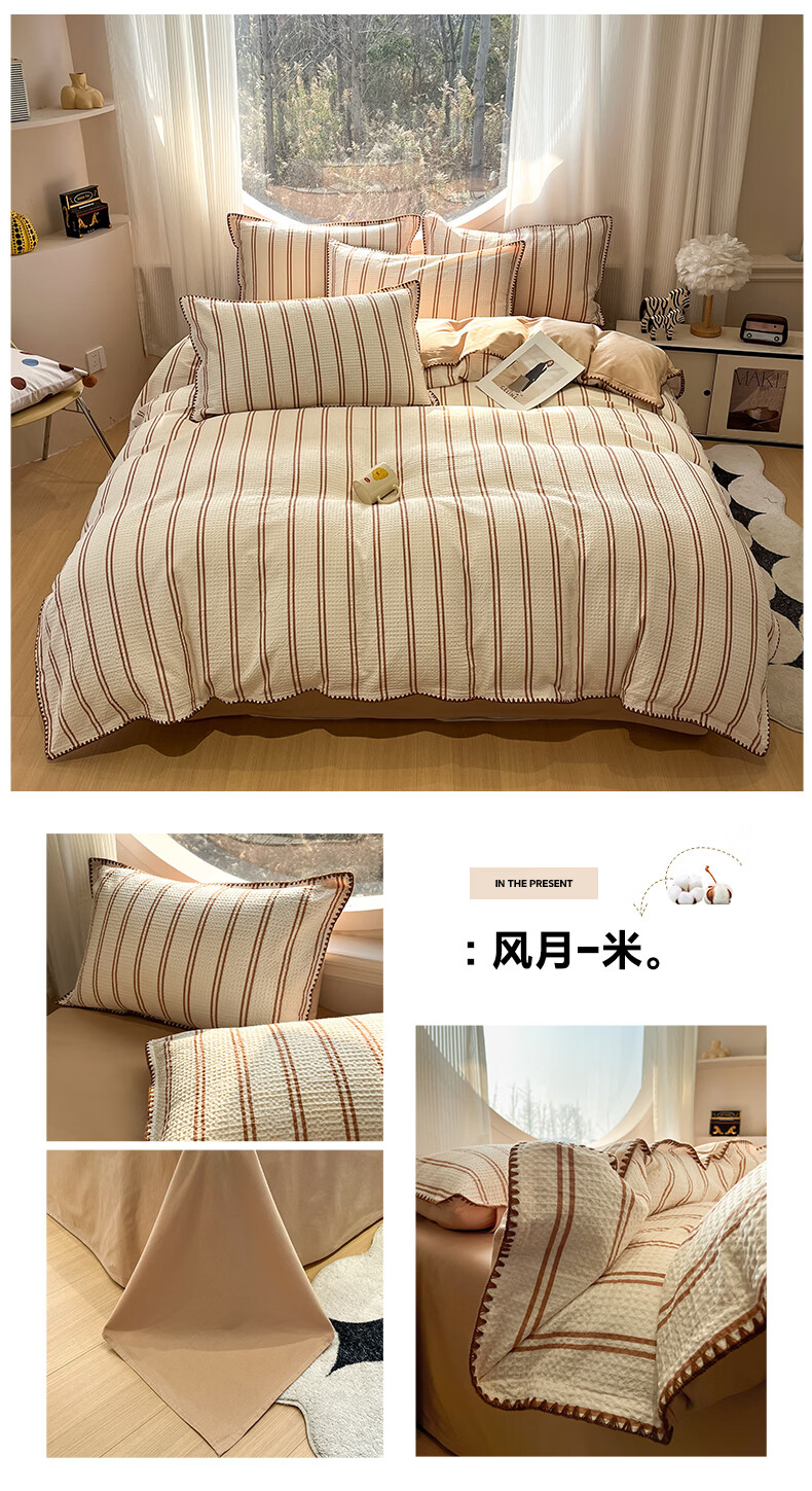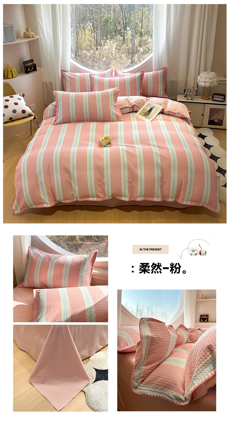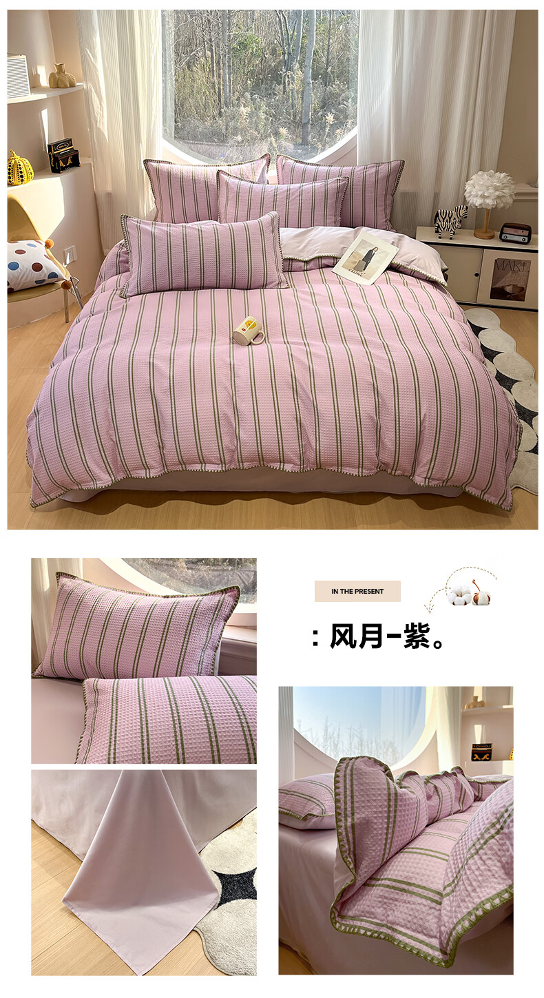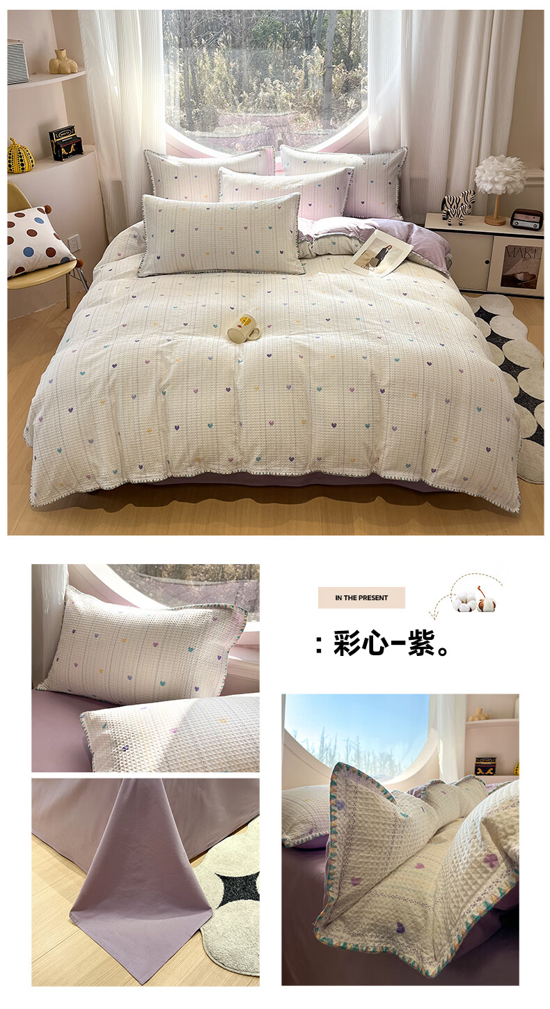无印良品全棉四件套床品100%纯棉2026新款ins高级感家用宿舍床单床笠3件套 彩心-紫【全棉面料 贝壳边工艺】 1.8m 床单款 四件套(被套200*230cm)