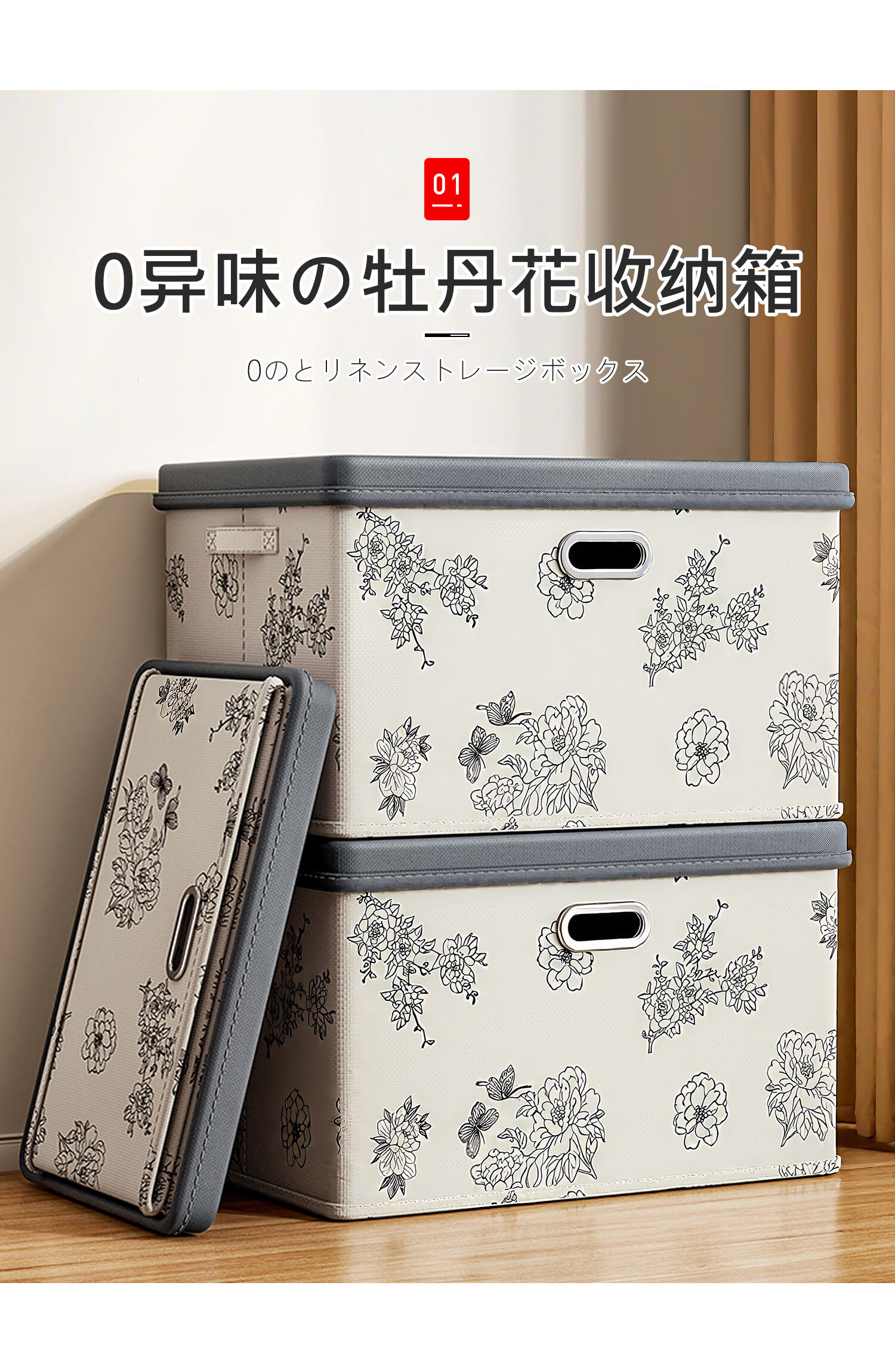 吱凡日本衣服收纳箱家用衣柜衣物整理盒可折叠大容量百纳箱储物箱神器 【牡丹花】特大号50*35*31cm 1个装【0异味/可折叠收纳/加大容量】