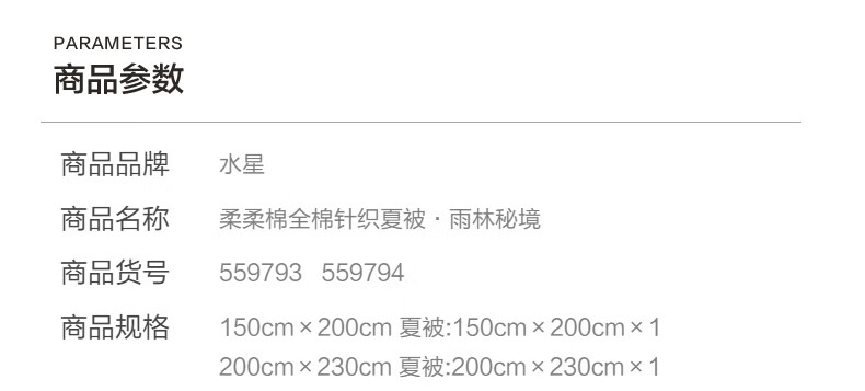 水星家纺大豆被子夏凉被单人空调被全棉针织夏季薄被 柔柔棉全棉针织夏被·雨林秘境 150cm*200cm
