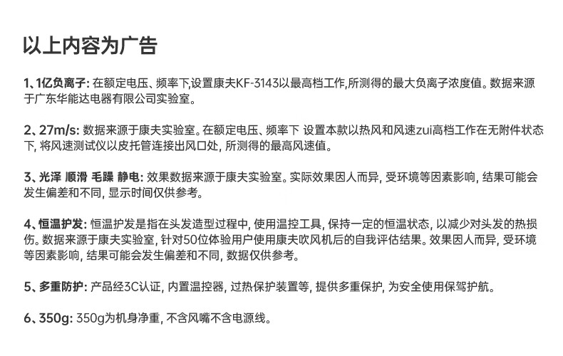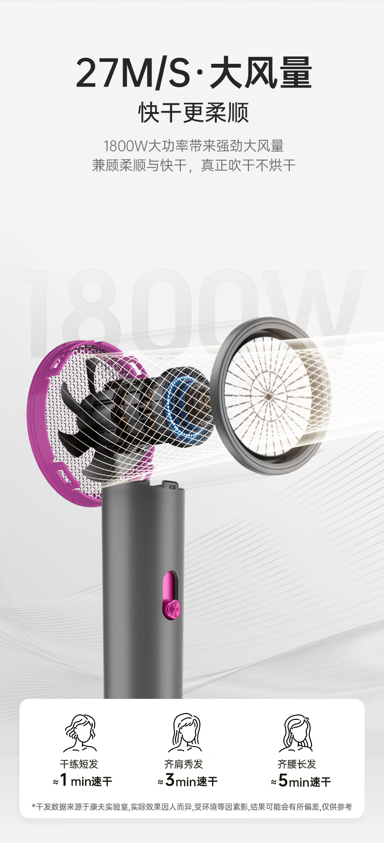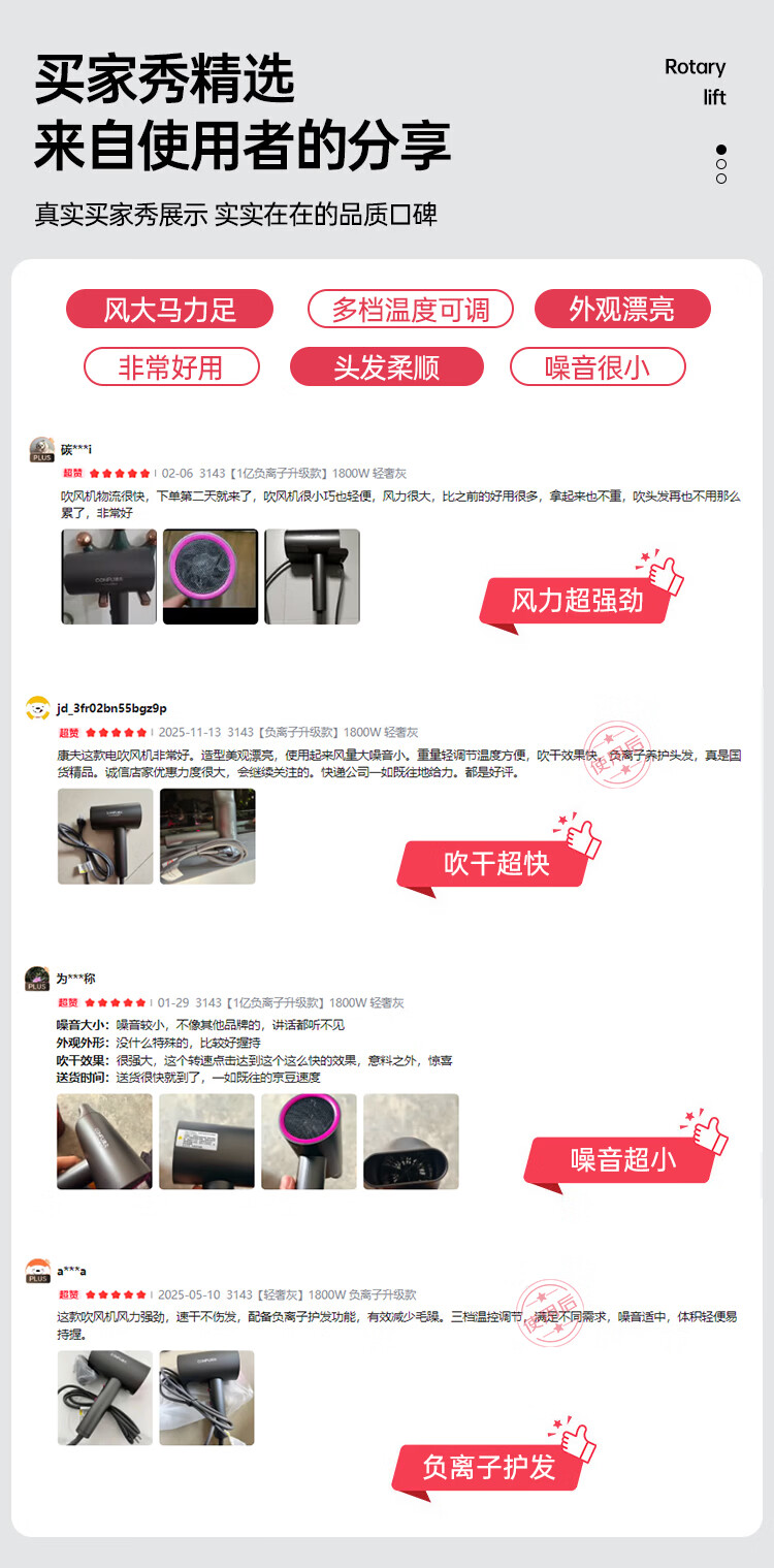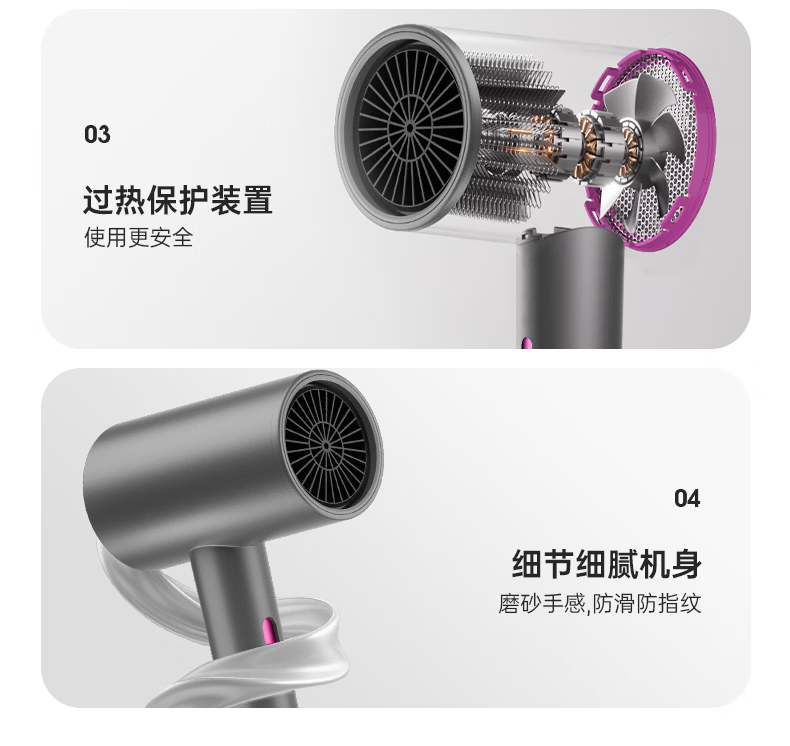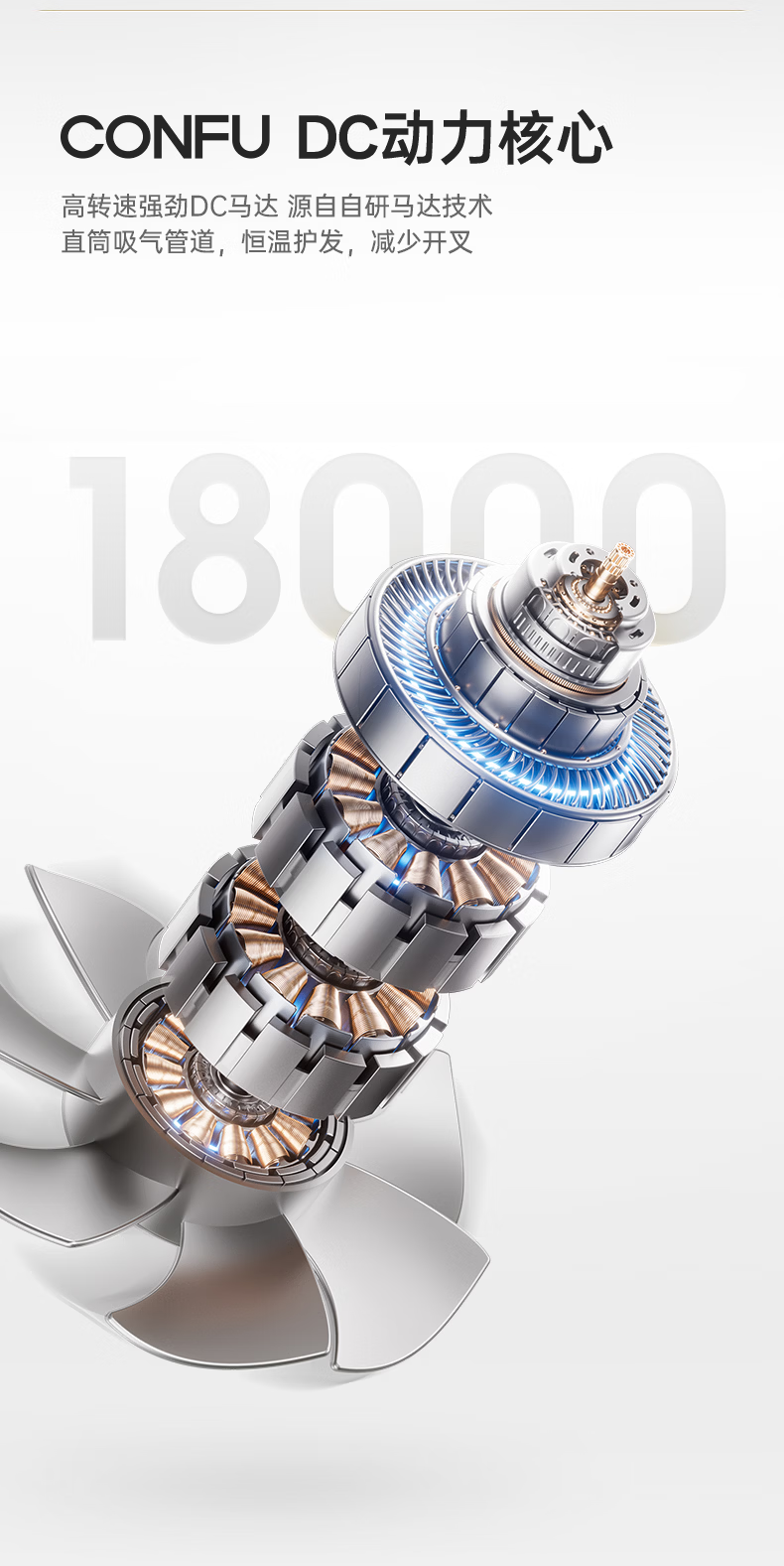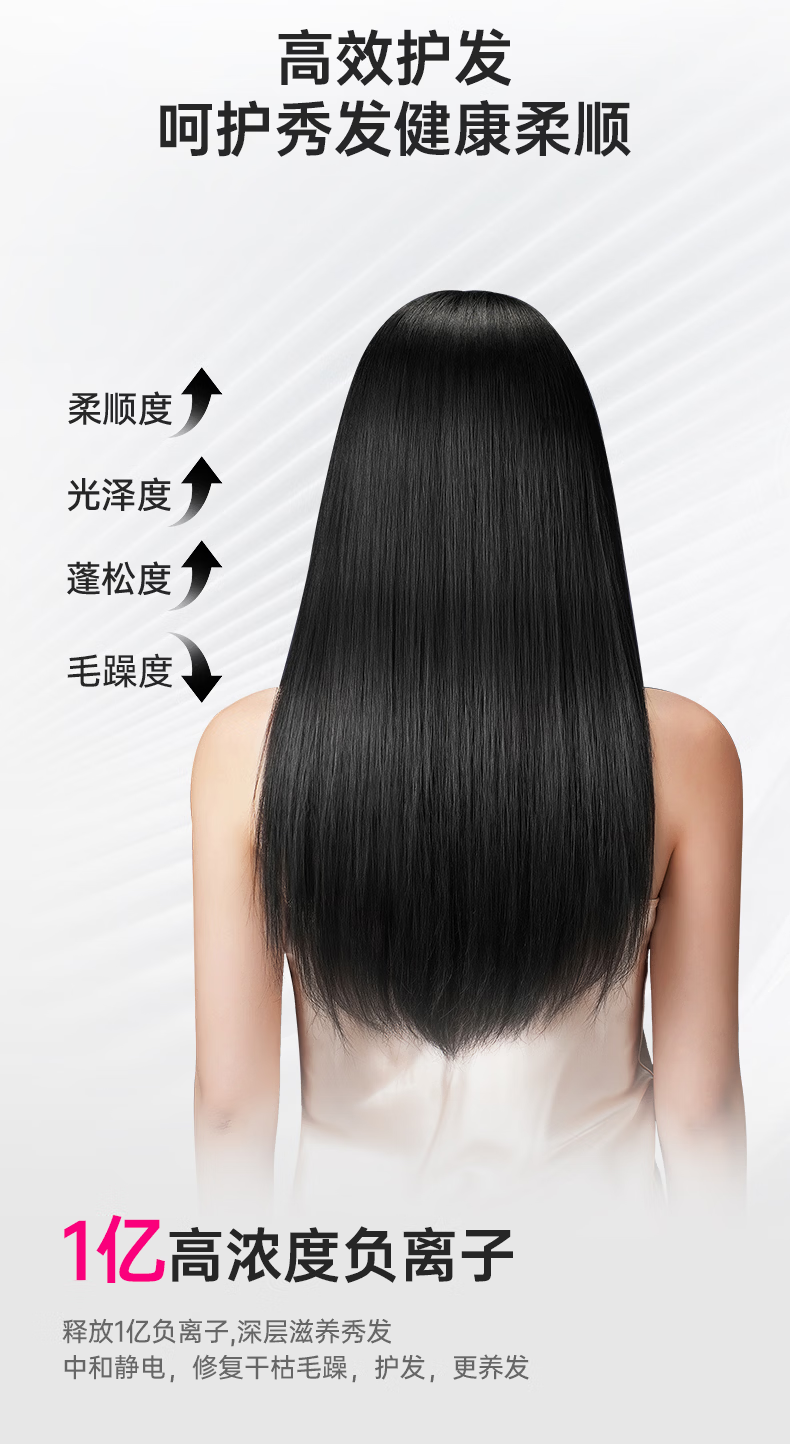 康夫(CONFU)负离子护发电吹风机家用等离子吹风筒不伤发大风速1800W大功率快干吹风机生日礼物3143 3143【1亿负离子升级款】1800W 轻奢灰