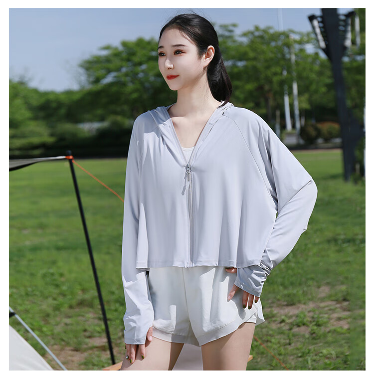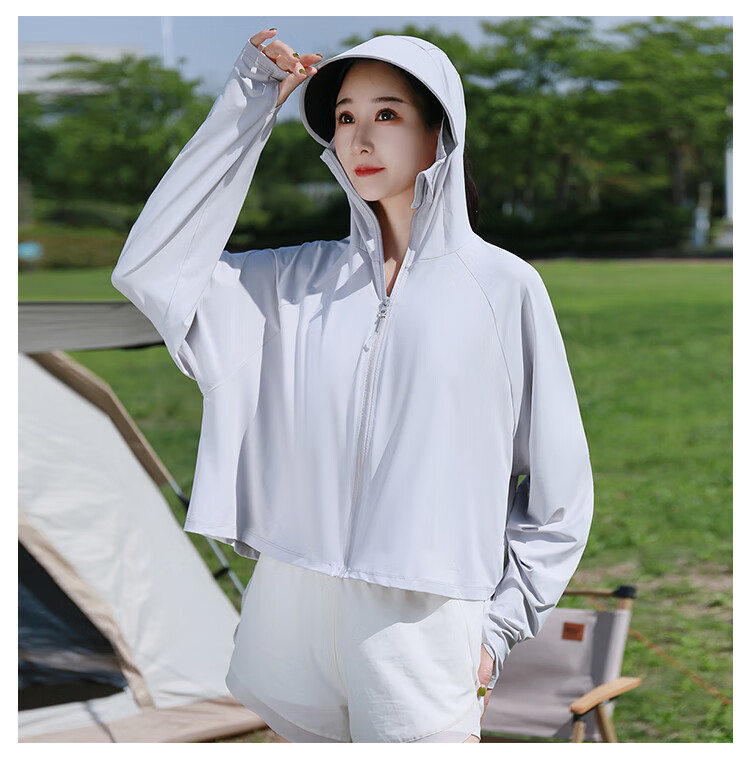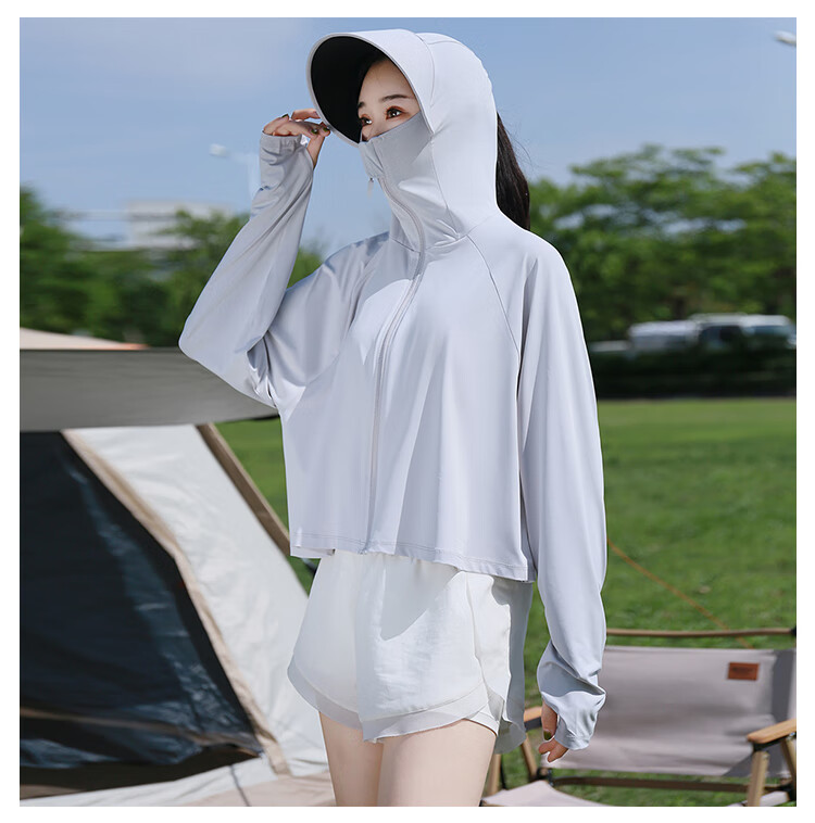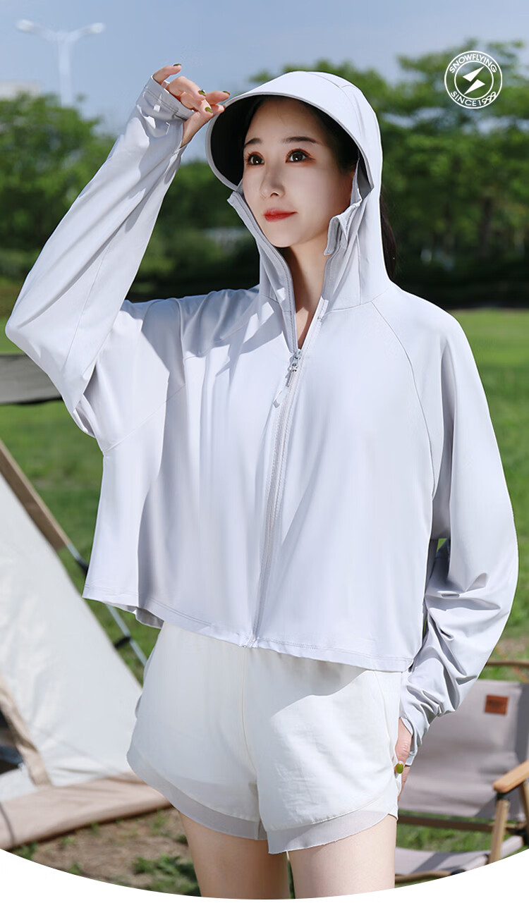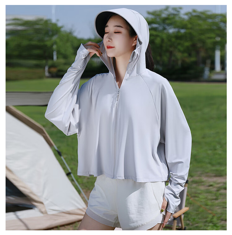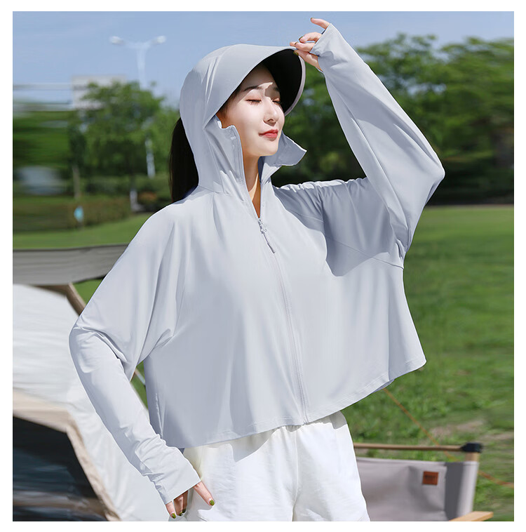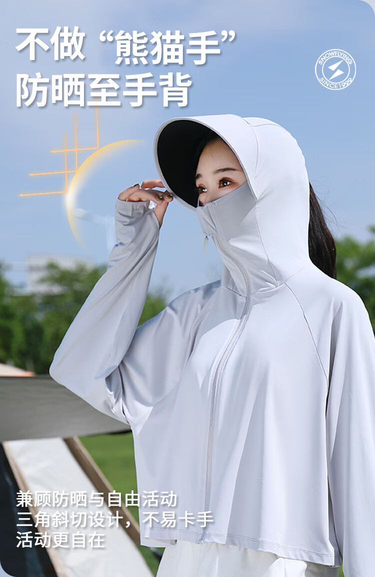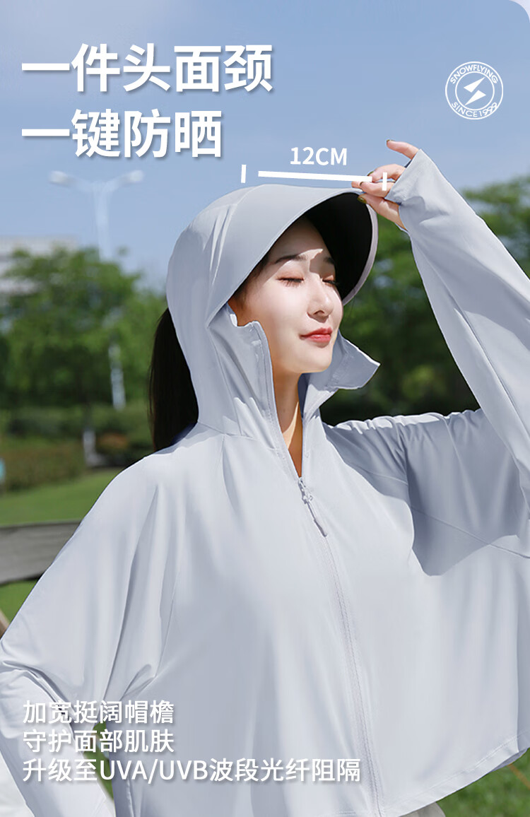 雪中飞女士披肩防晒衣夏季升级款黑胶大帽檐防紫外线遮阳外套冰丝防晒衣 灰色 均码 (80-120斤)