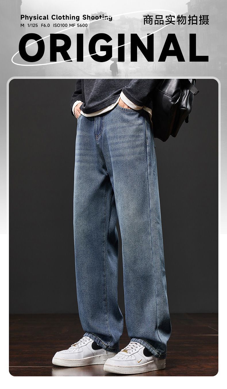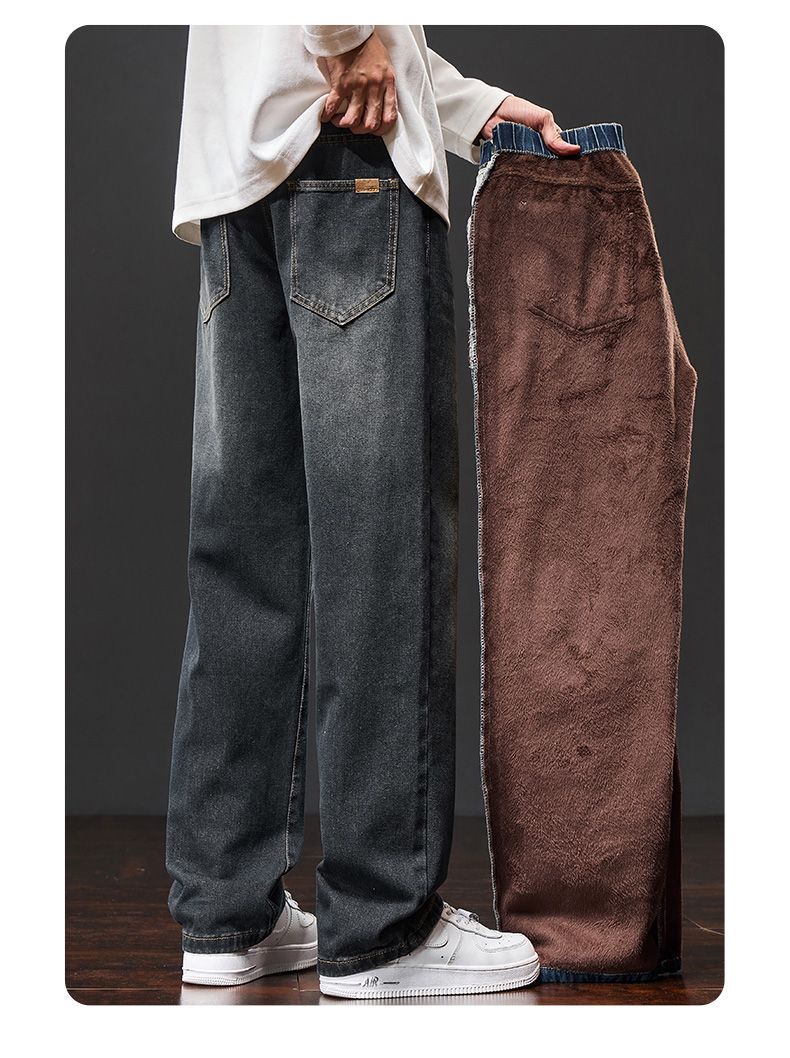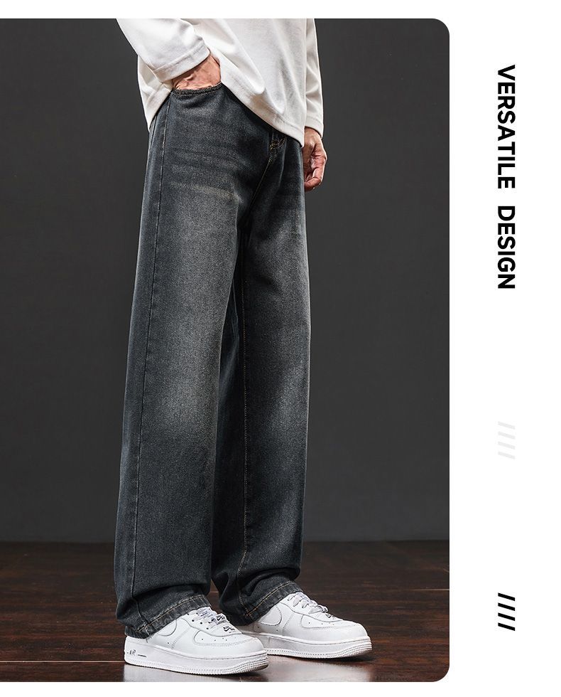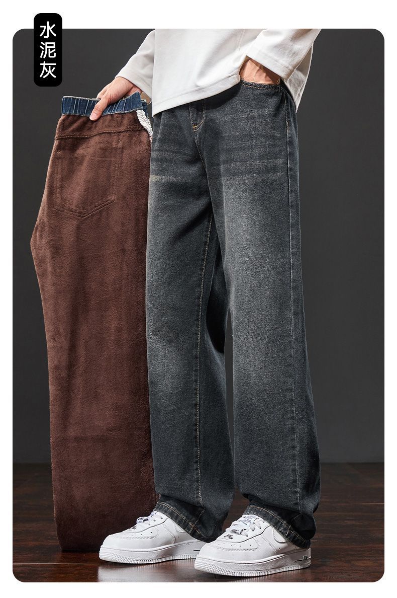 真维斯(Jeanswest)美式阔腿牛仔裤男士秋冬加绒保暖百搭宽松垂感休闲直筒长裤 水泥灰 S