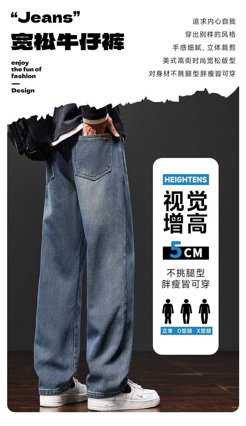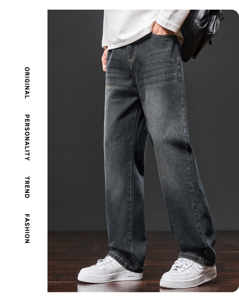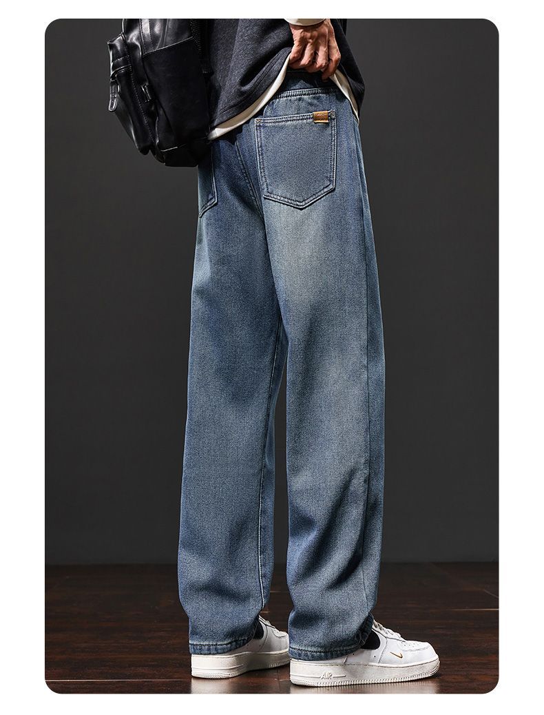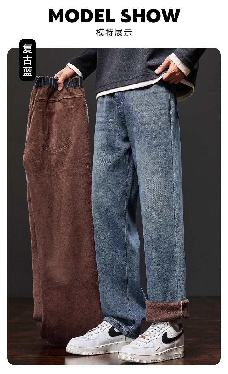真维斯(Jeanswest)美式阔腿牛仔裤男士秋冬加绒保暖百搭宽松垂感休闲直筒长裤 水泥灰 S
