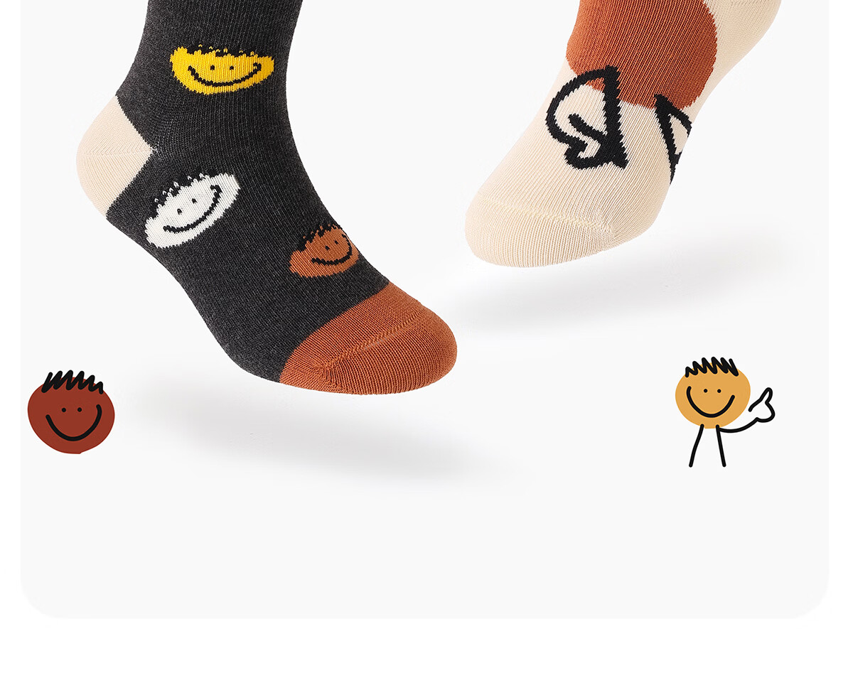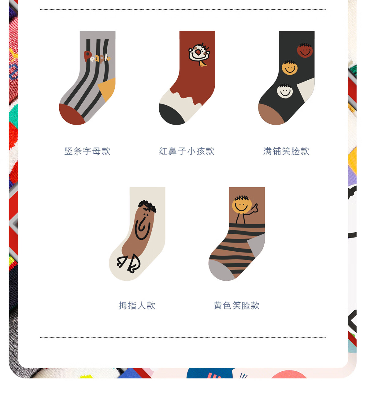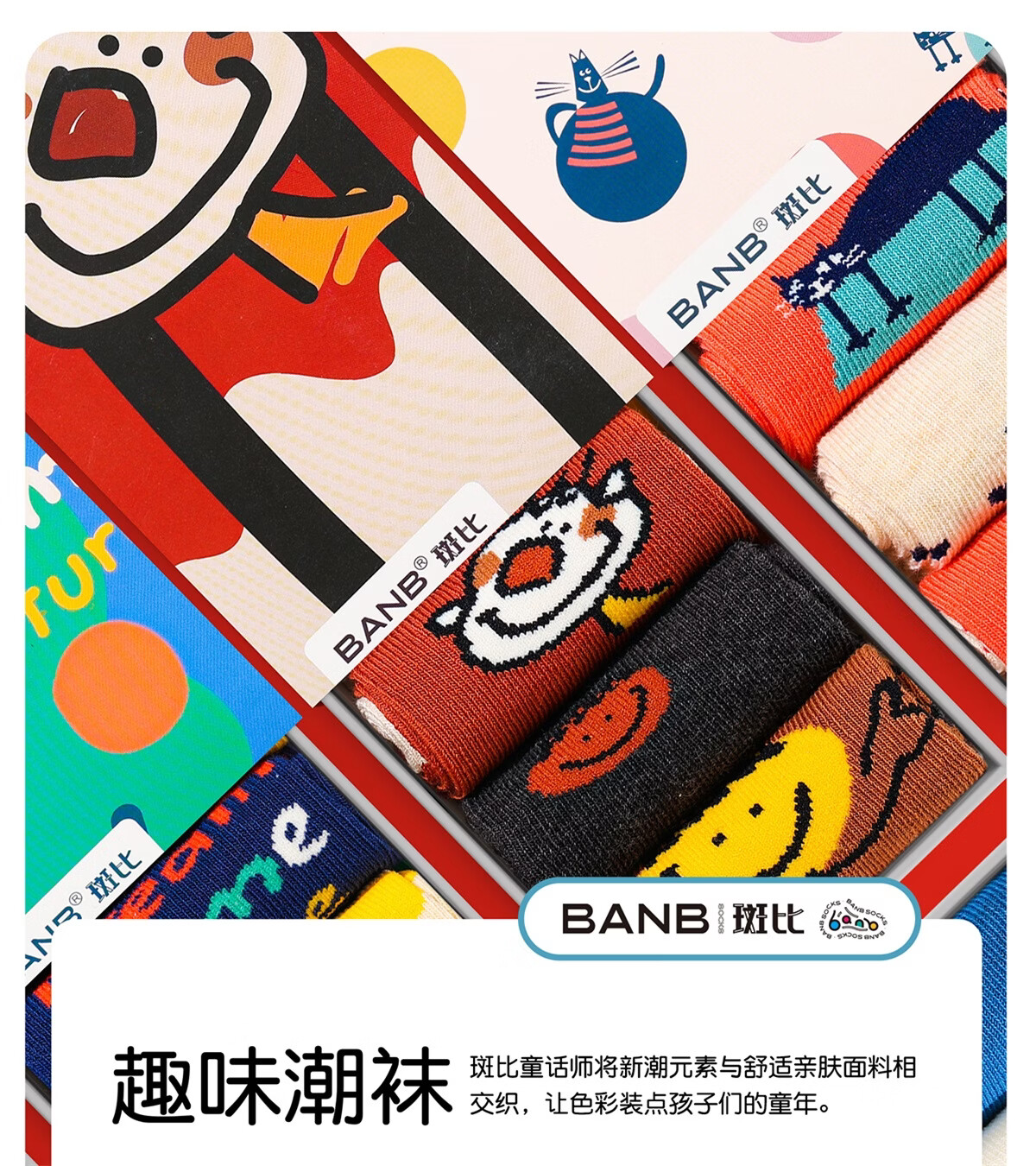 斑比儿童袜子潮春秋款中大童男宝宝秋冬季女童无骨中筒棉袜 BB2475 儿童趣味个性袜 5双 3-5岁 建议脚码21-26码【16-18】