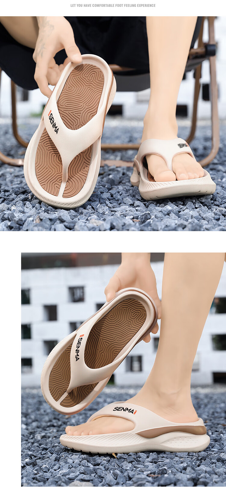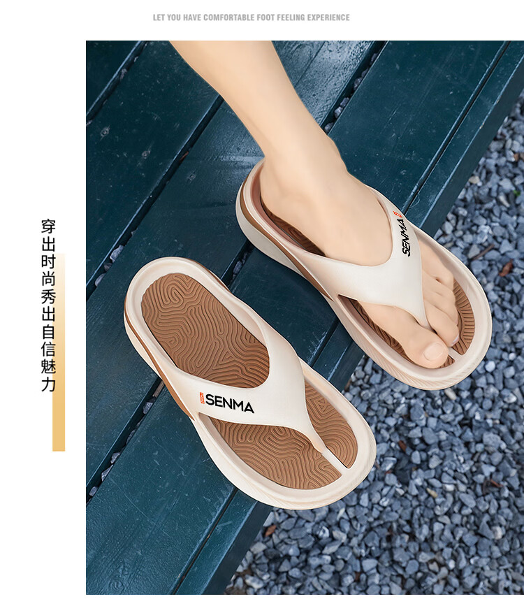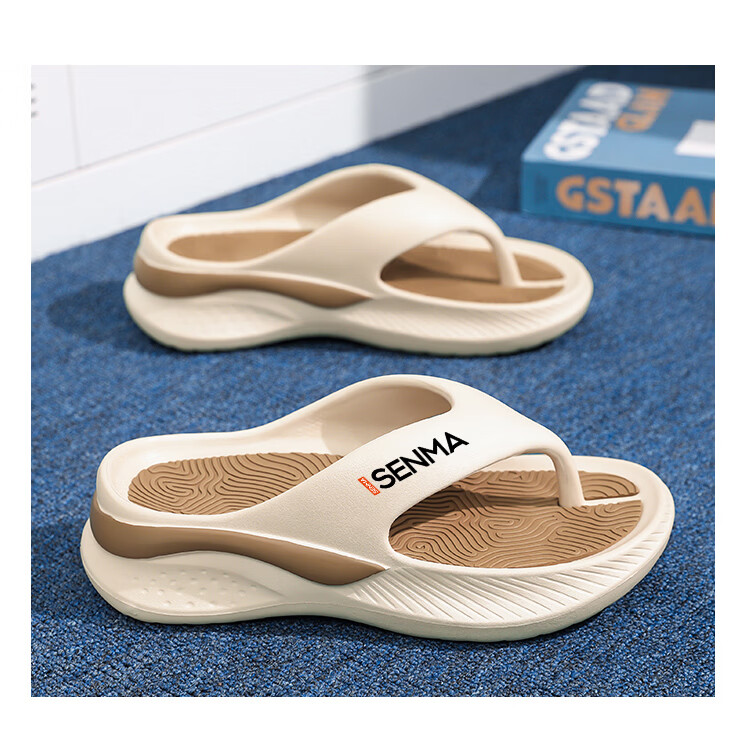 森馬人字拖男2026夏季外穿防滑厚底运动拖鞋男生踩屎感夹脚沙滩凉拖鞋 米棕【基础款】 40-41 现货秒发