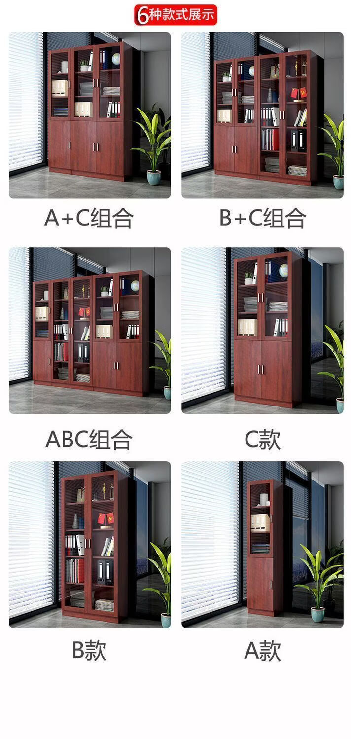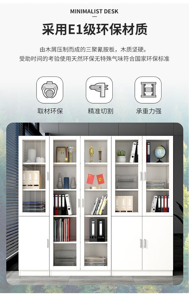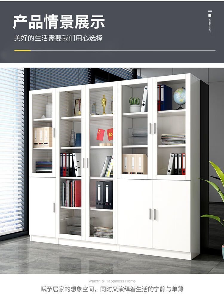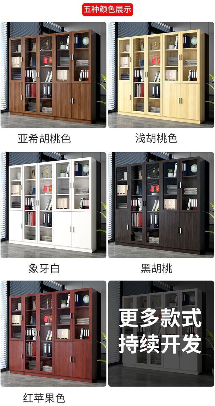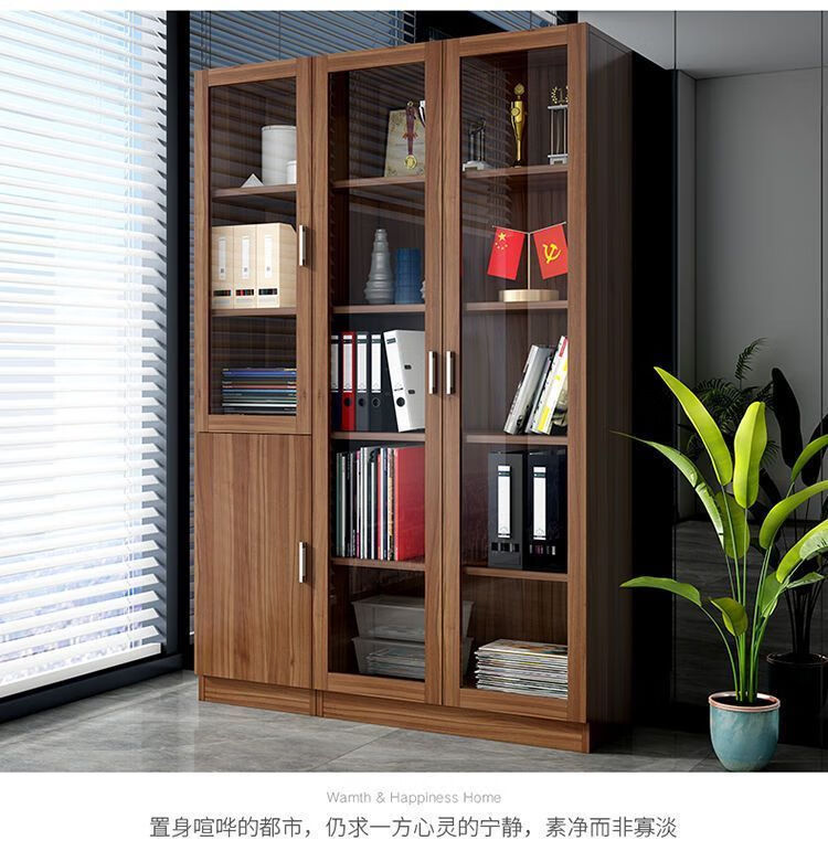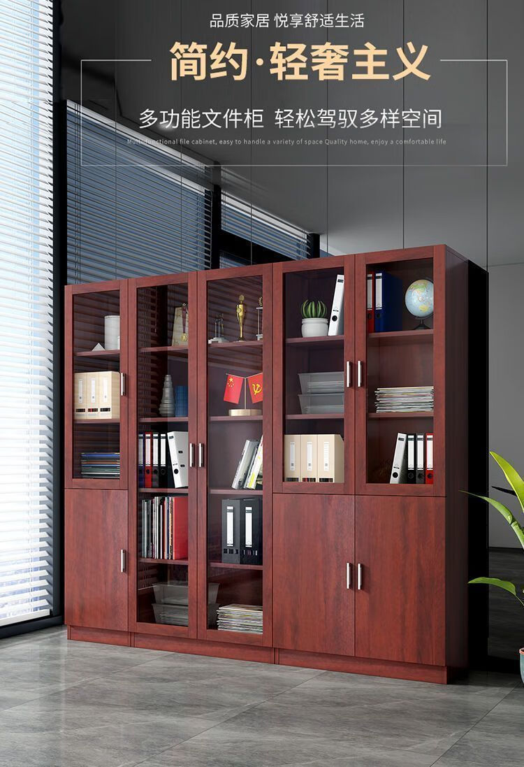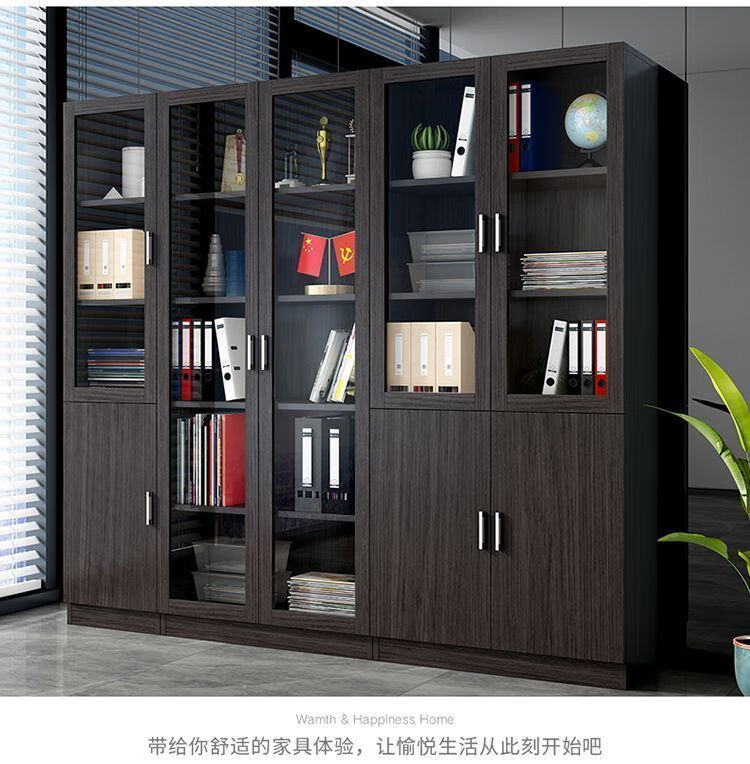 欣慕雅文件柜资料柜木质办公室档案柜防爆玻璃储物柜子书柜书架自由组合 黑胡桃色A款