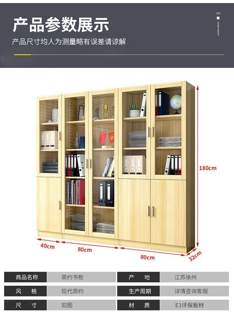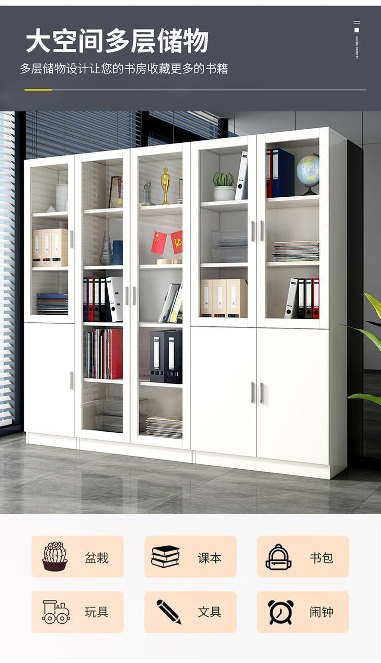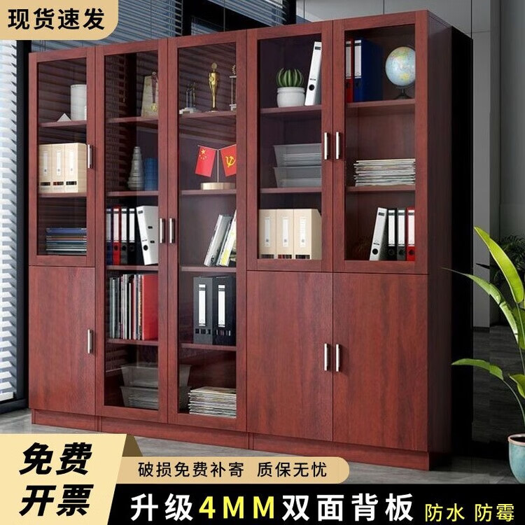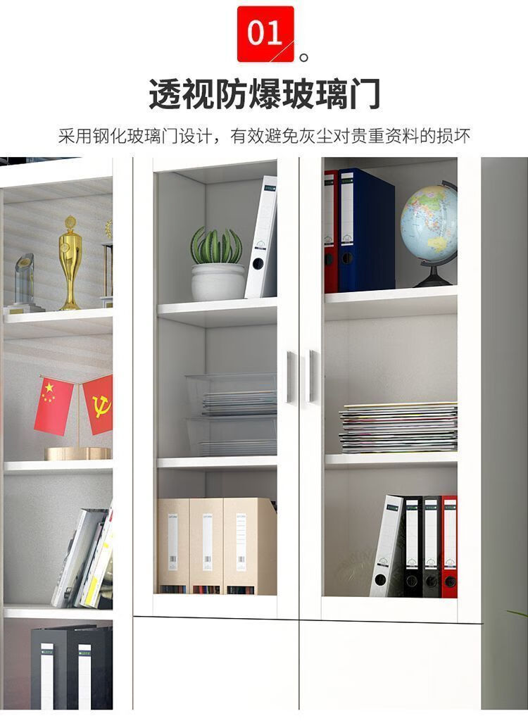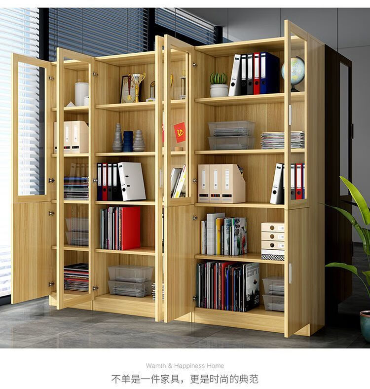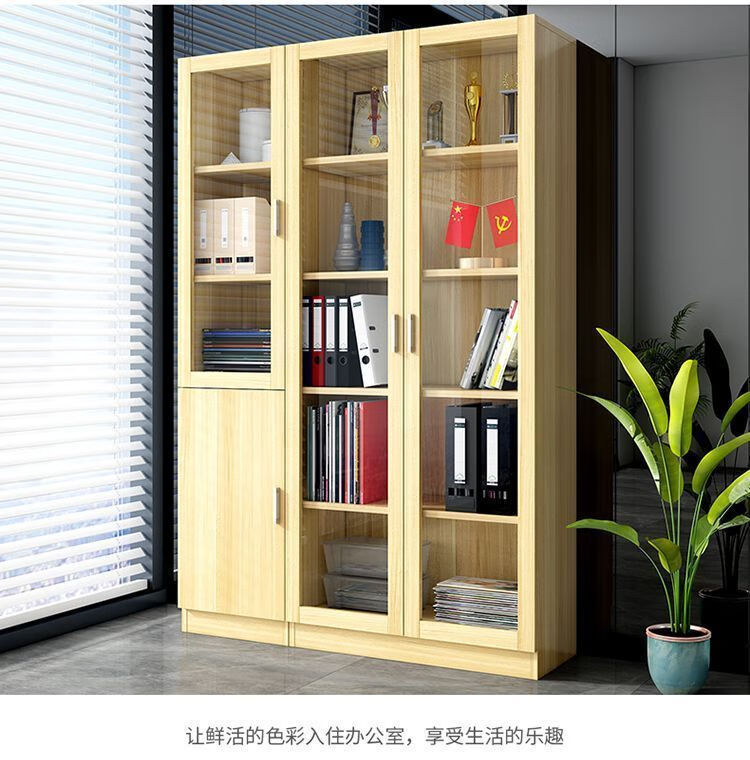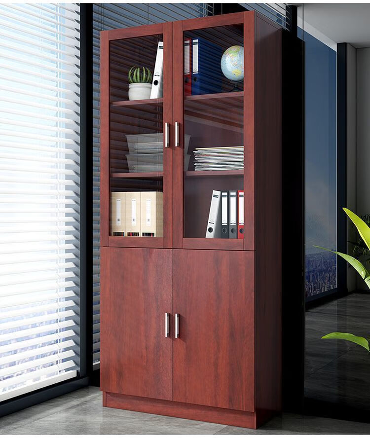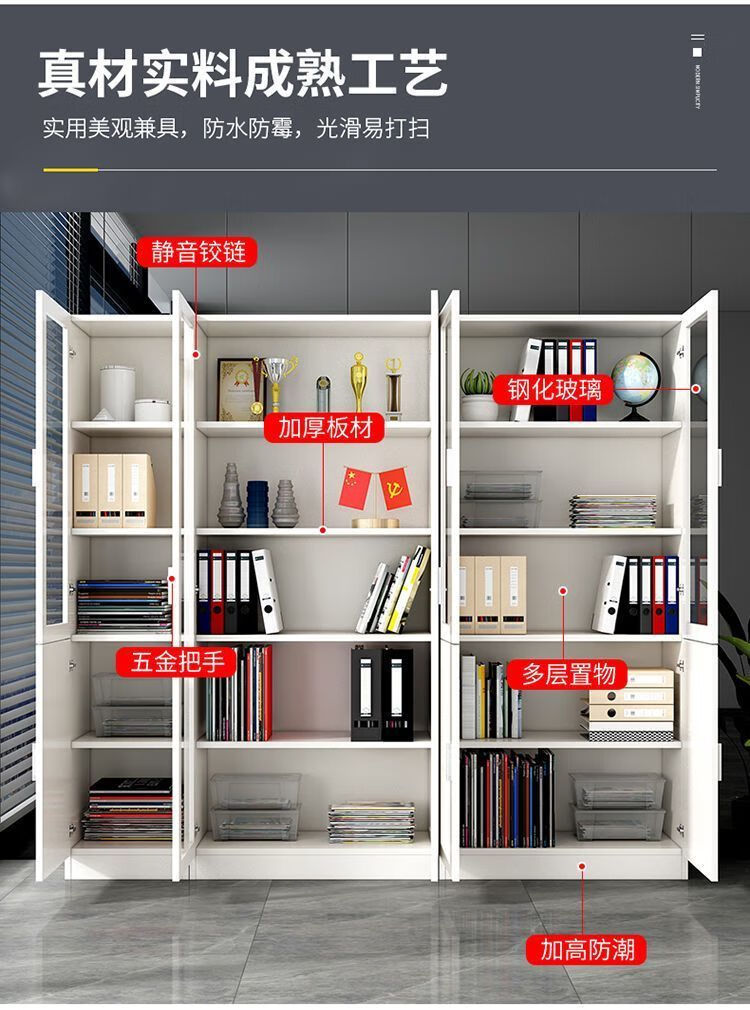 欣慕雅文件柜资料柜木质办公室档案柜防爆玻璃储物柜子书柜书架自由组合 黑胡桃色A款
