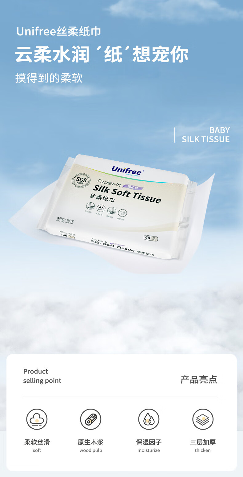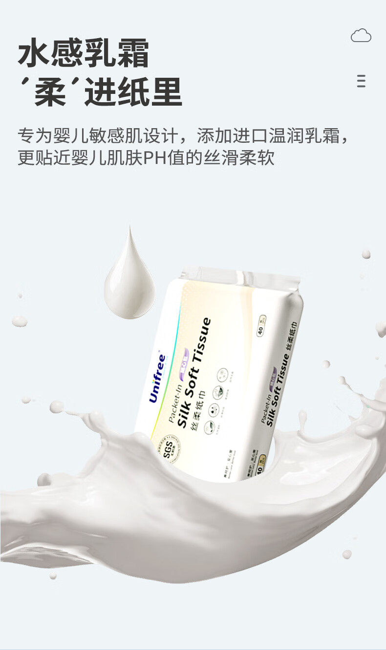 unifree婴儿乳霜纸3层40抽*20包高端宝宝柔纸巾敏感肌肤适用