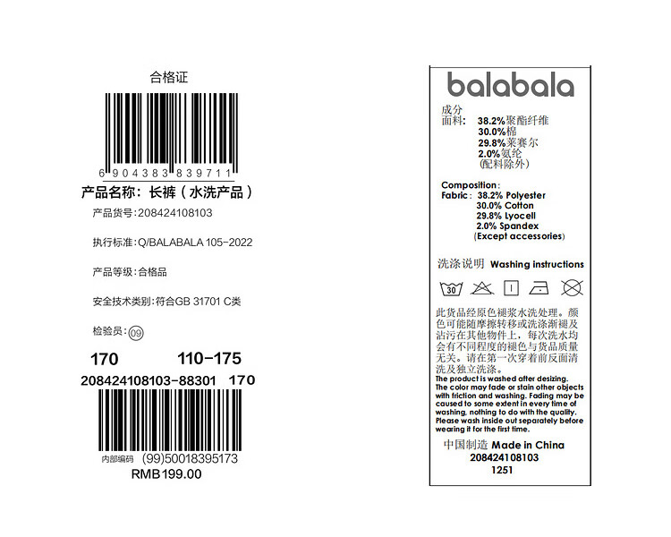 巴拉巴拉童装儿童裤子男童长裤秋冬装宝宝直筒裤加绒时尚潮酷