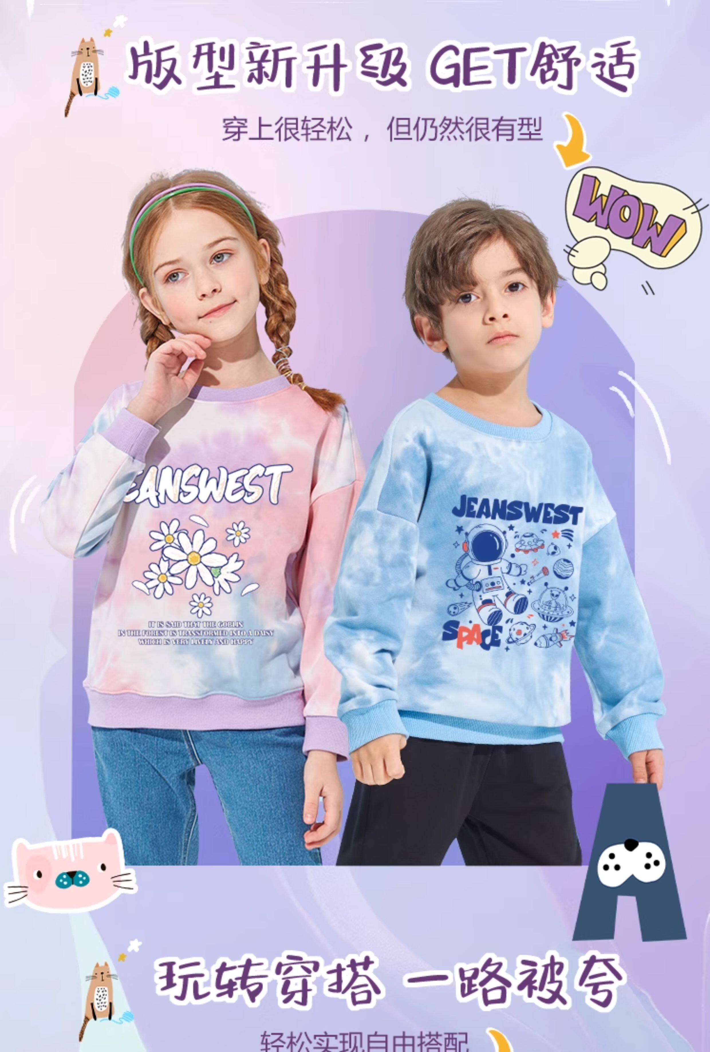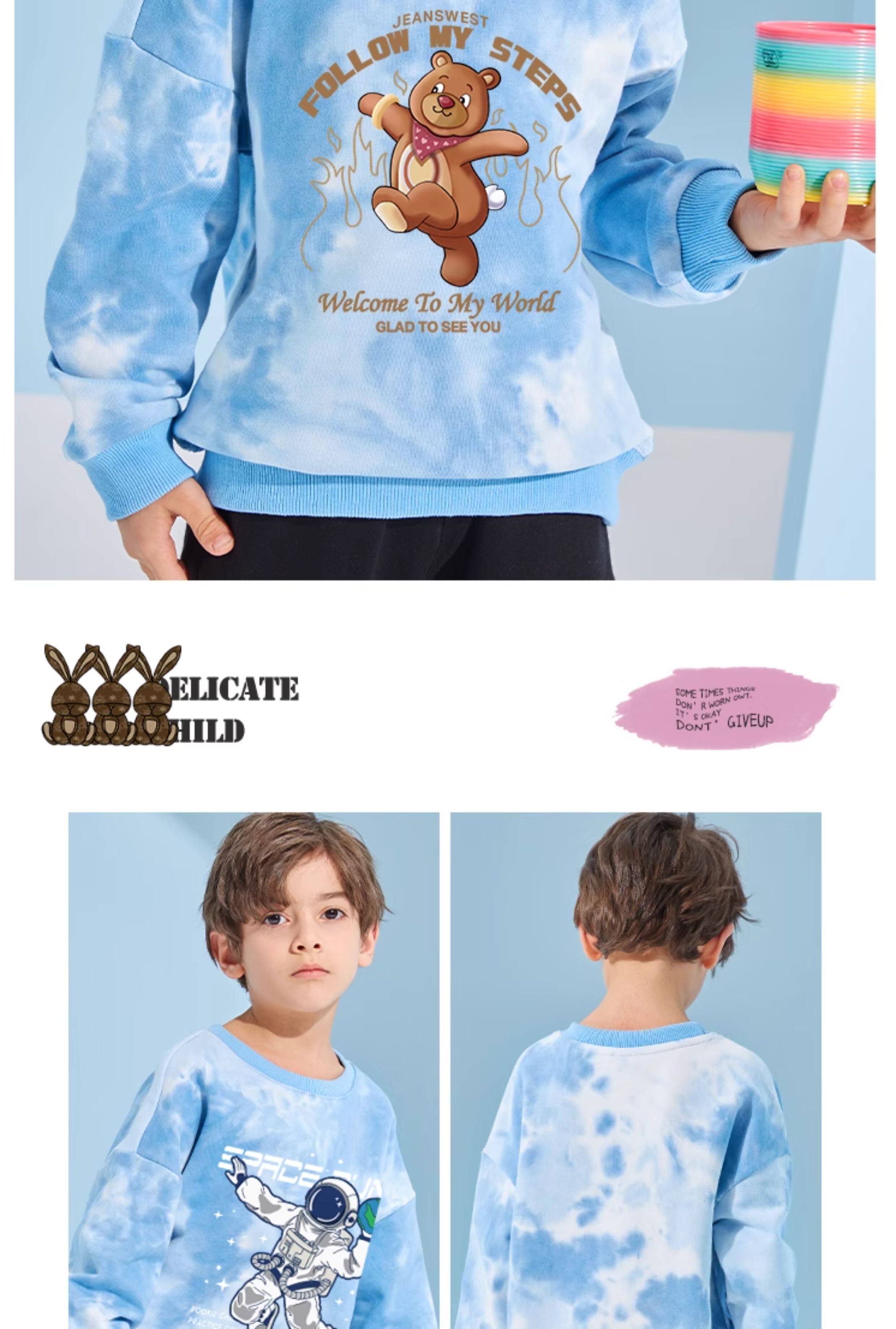 真维斯童装男童春季套装儿童春秋款扎染卫衣男大童运动衣服两件套 【套装】蓝/蓝帽-藏蓝/蓝帽K 110
