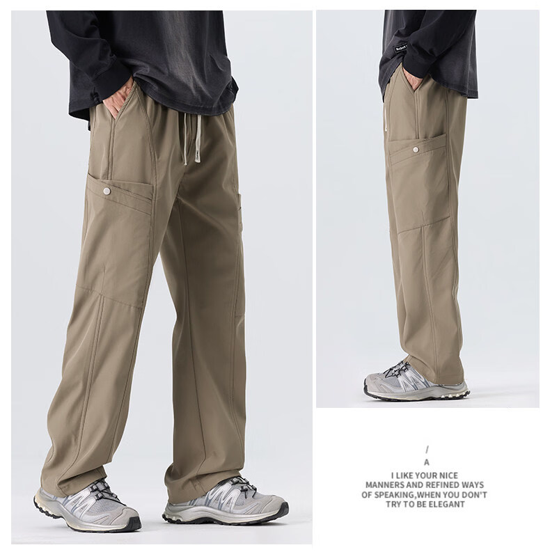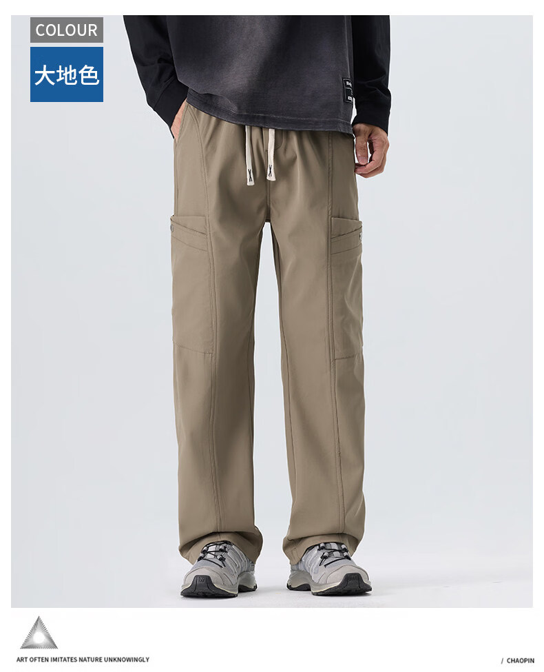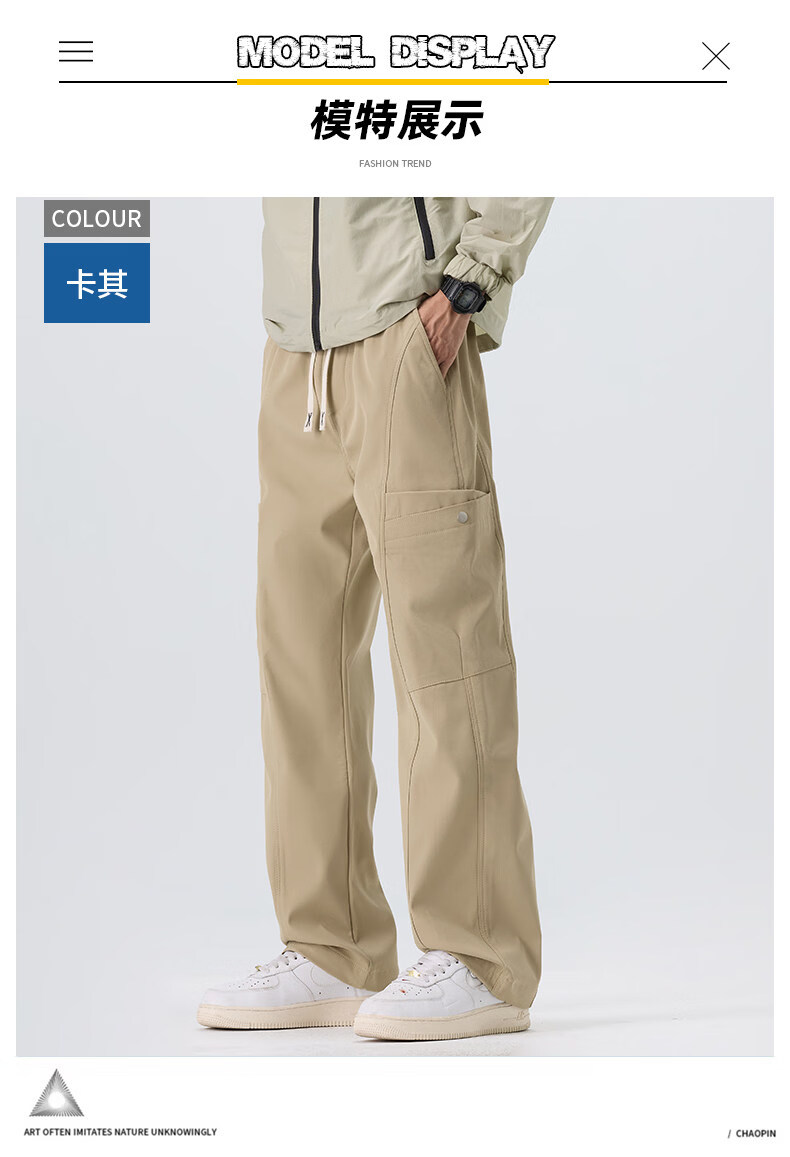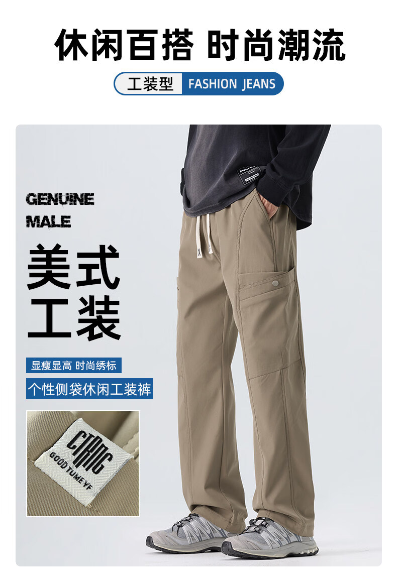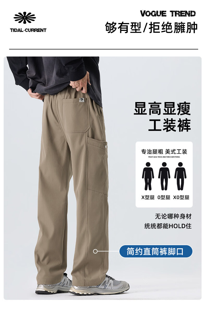 啄木鸟(TUCANO)工装休闲裤男宽松直筒休闲2025秋季新款多口袋阔腿运动长裤 卡其色 【官方正品】 M 建议【100-110斤】