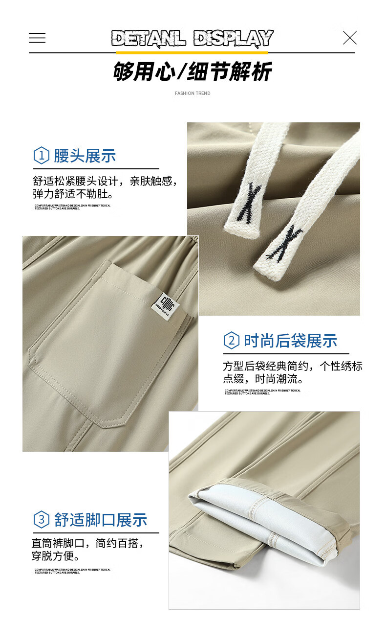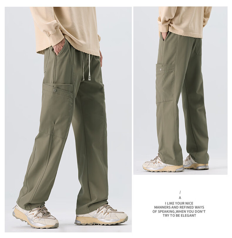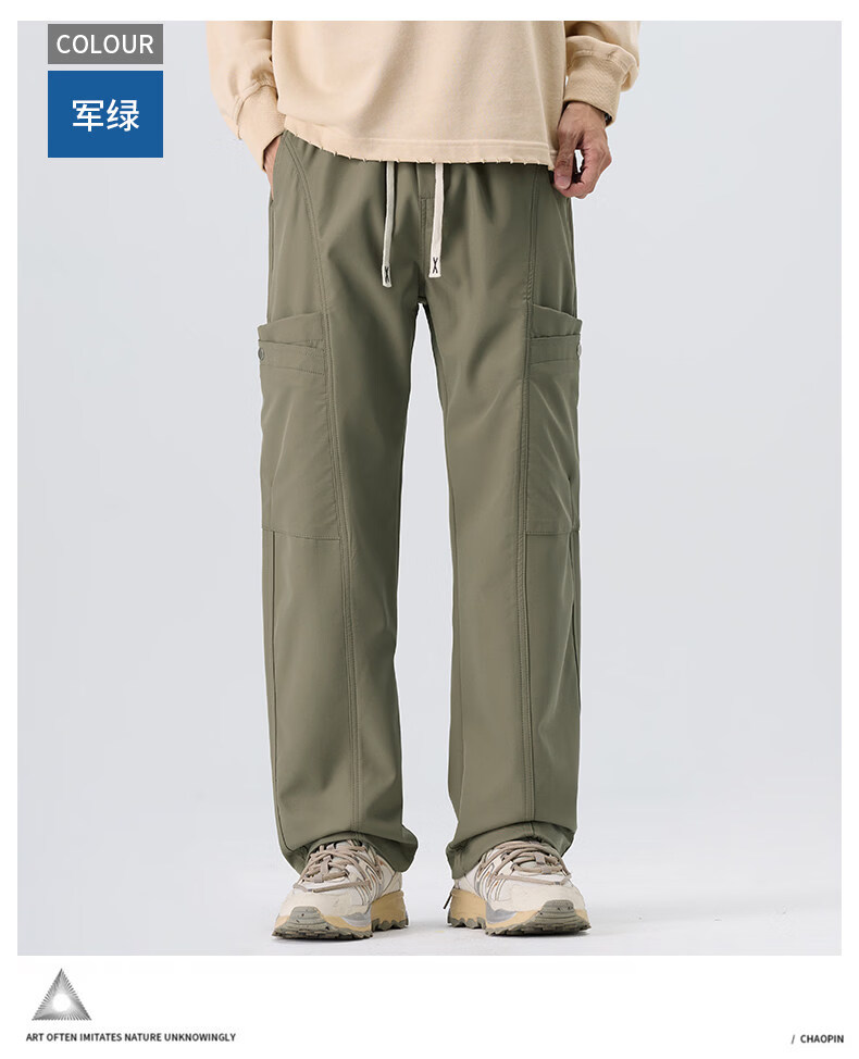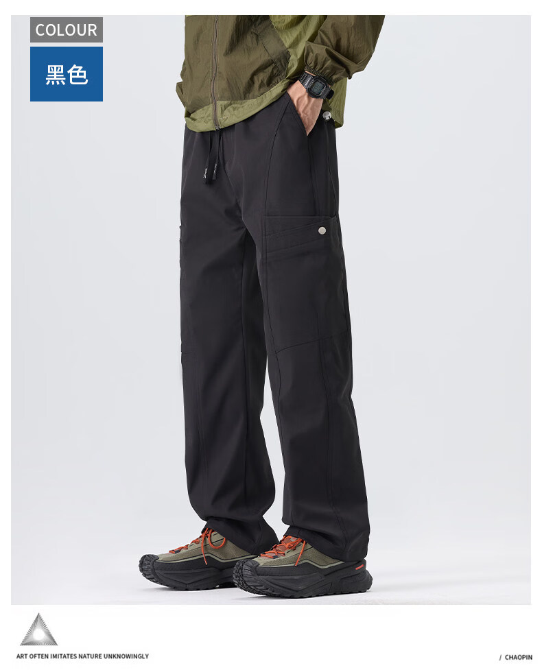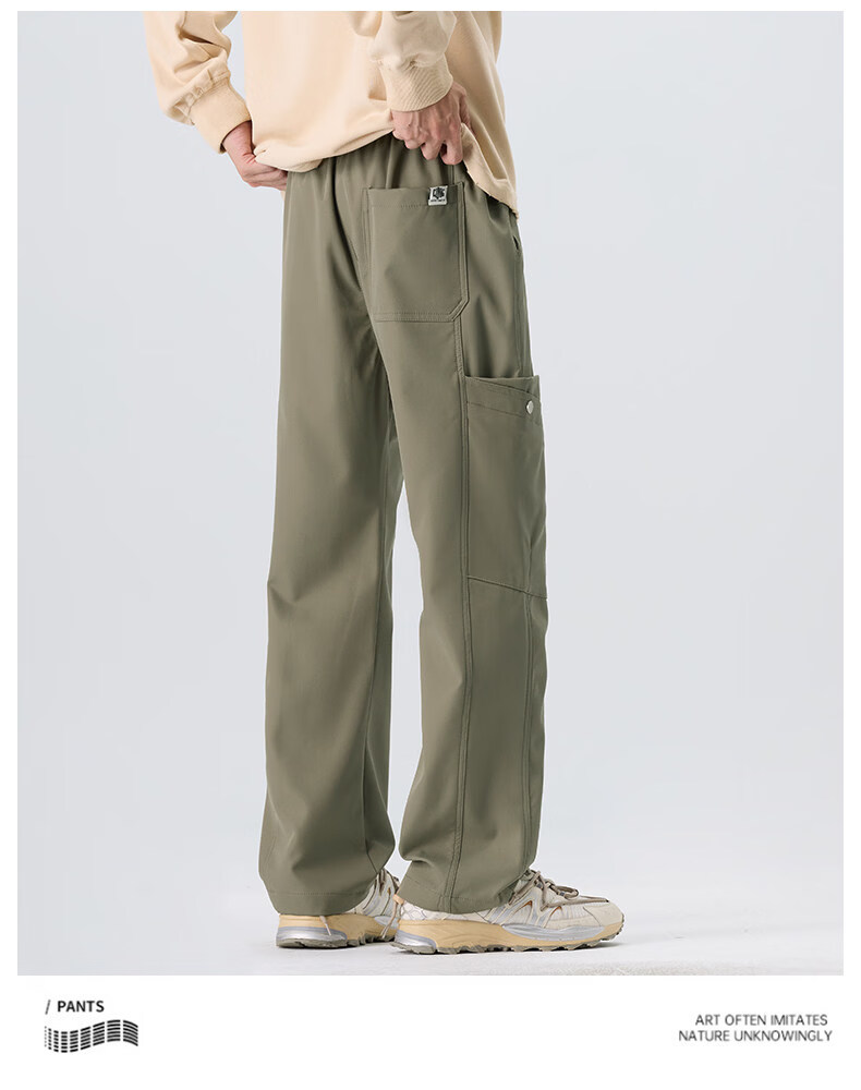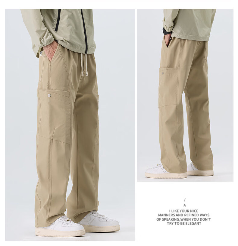 啄木鸟(TUCANO)工装休闲裤男宽松直筒休闲2025秋季新款多口袋阔腿运动长裤 卡其色 【官方正品】 M 建议【100-110斤】