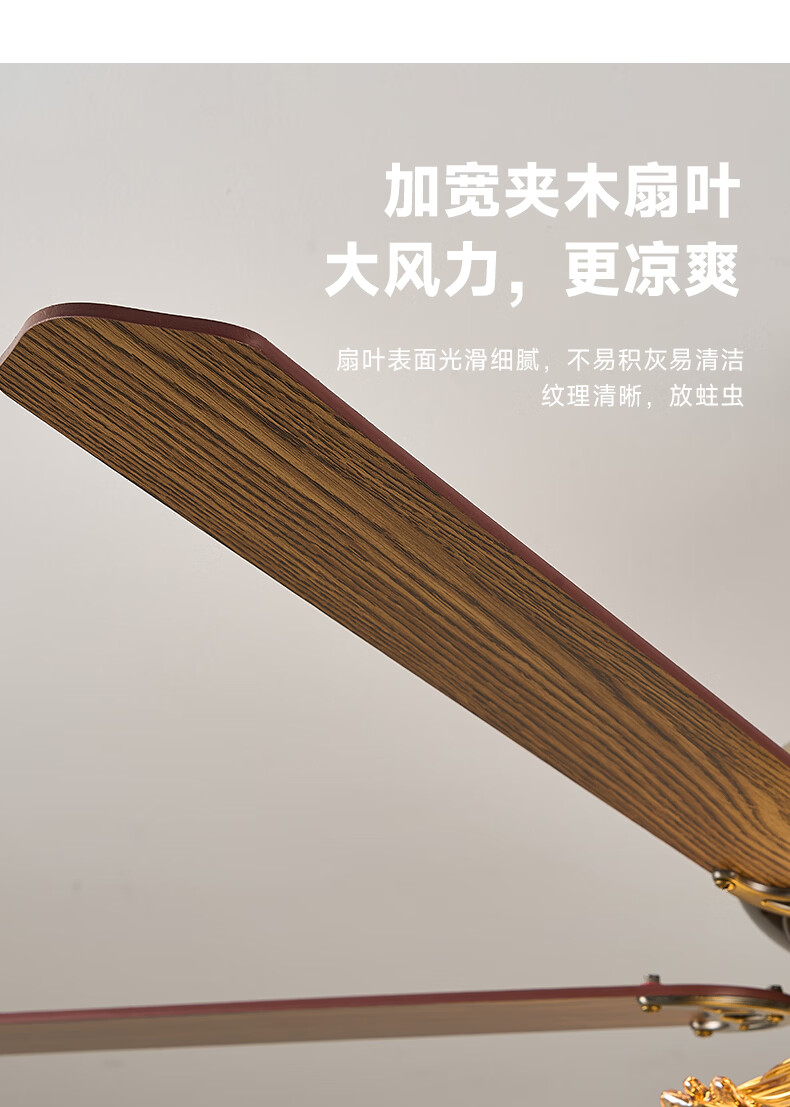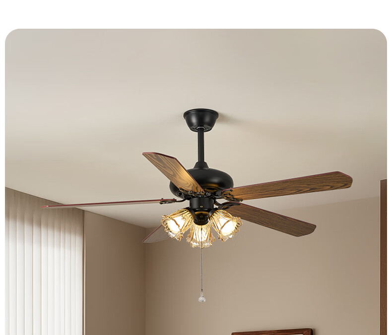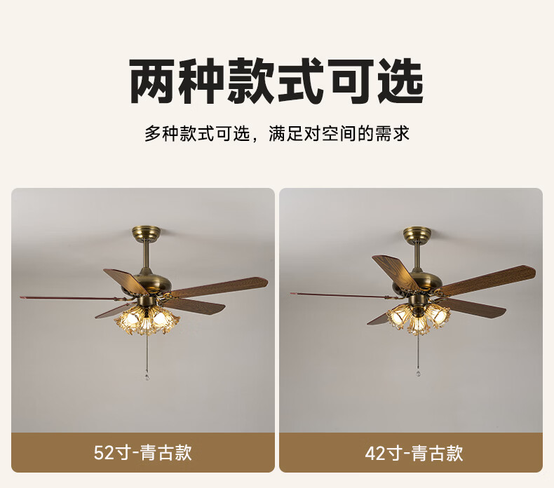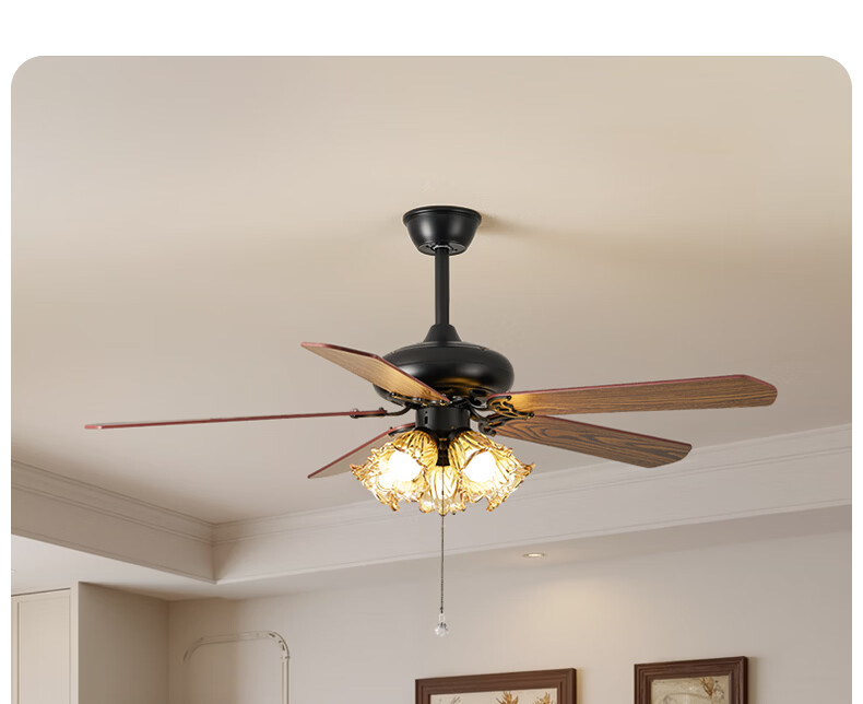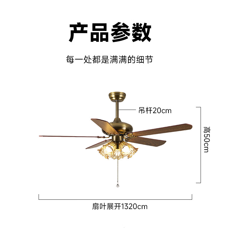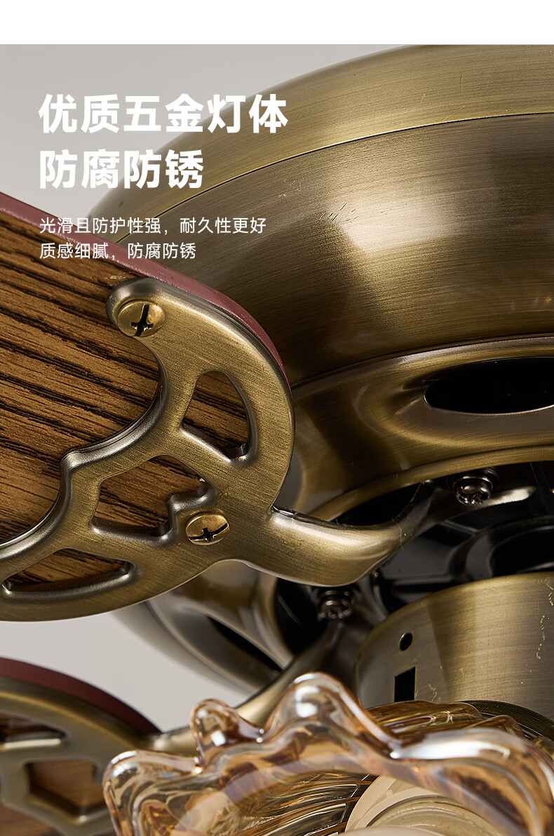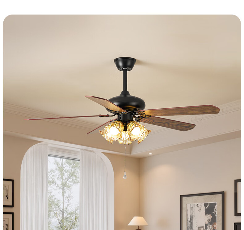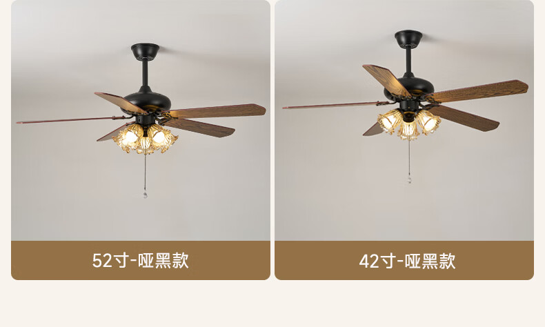 繁奢美式复古风扇灯中古风餐厅带风扇2026款吊扇灯带开关中山LED灯饰 003+黑色+42寸三灯+106CM. 无极离线语音