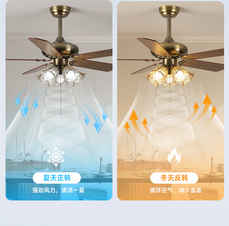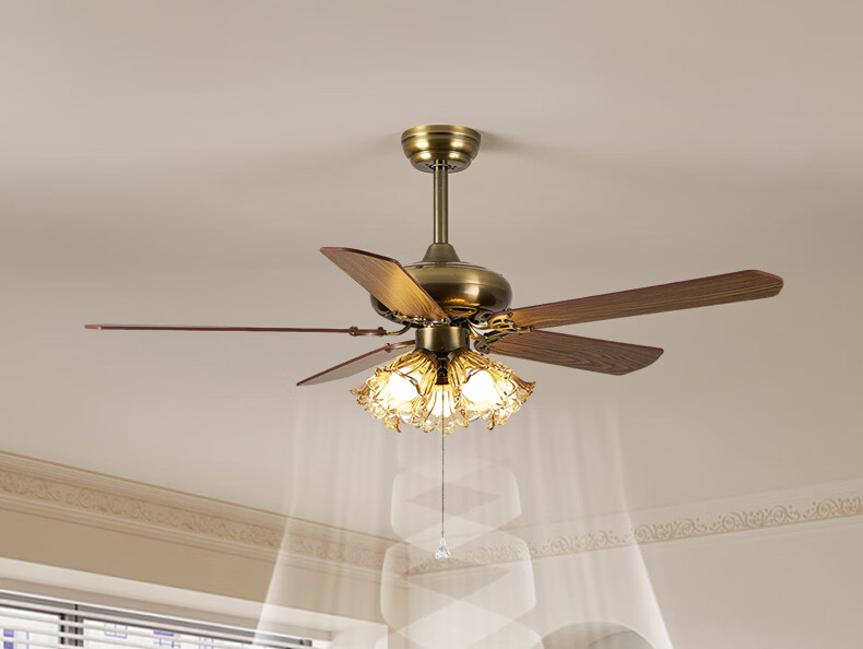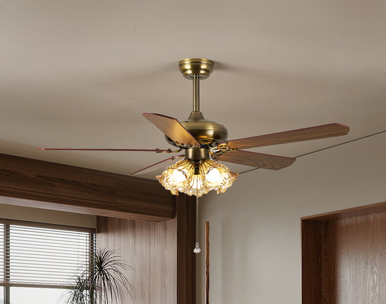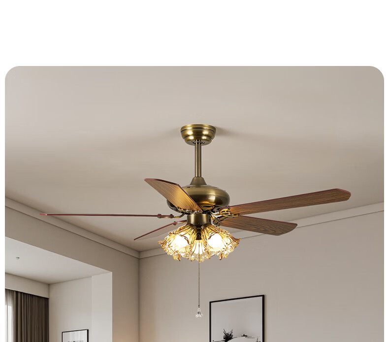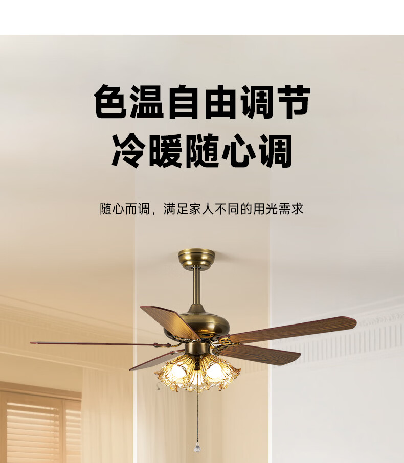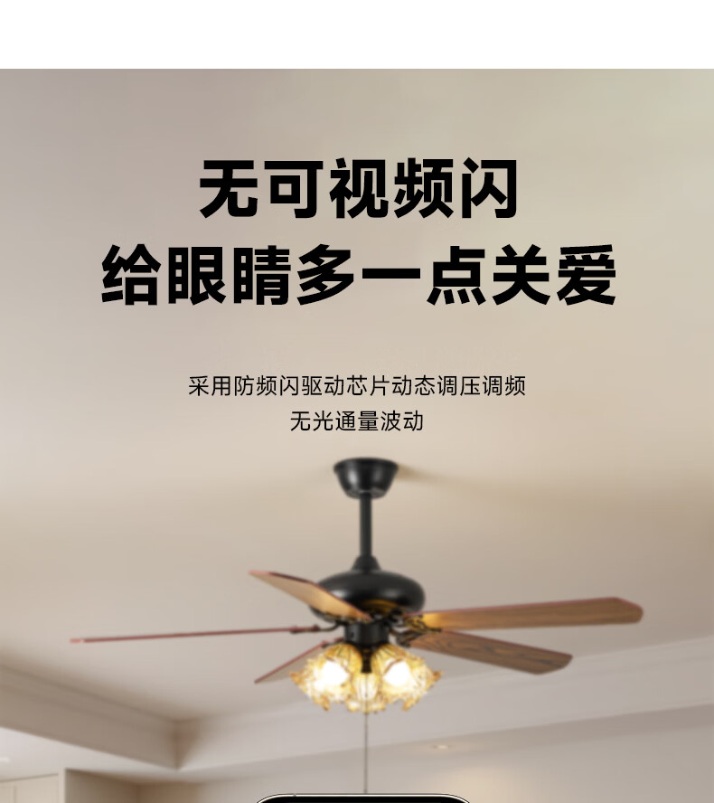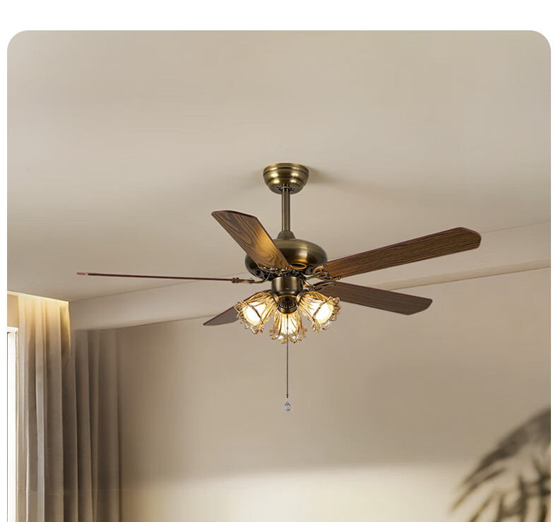 繁奢美式复古风扇灯中古风餐厅带风扇2026款吊扇灯带开关中山LED灯饰 003+黑色+42寸三灯+106CM. 无极离线语音