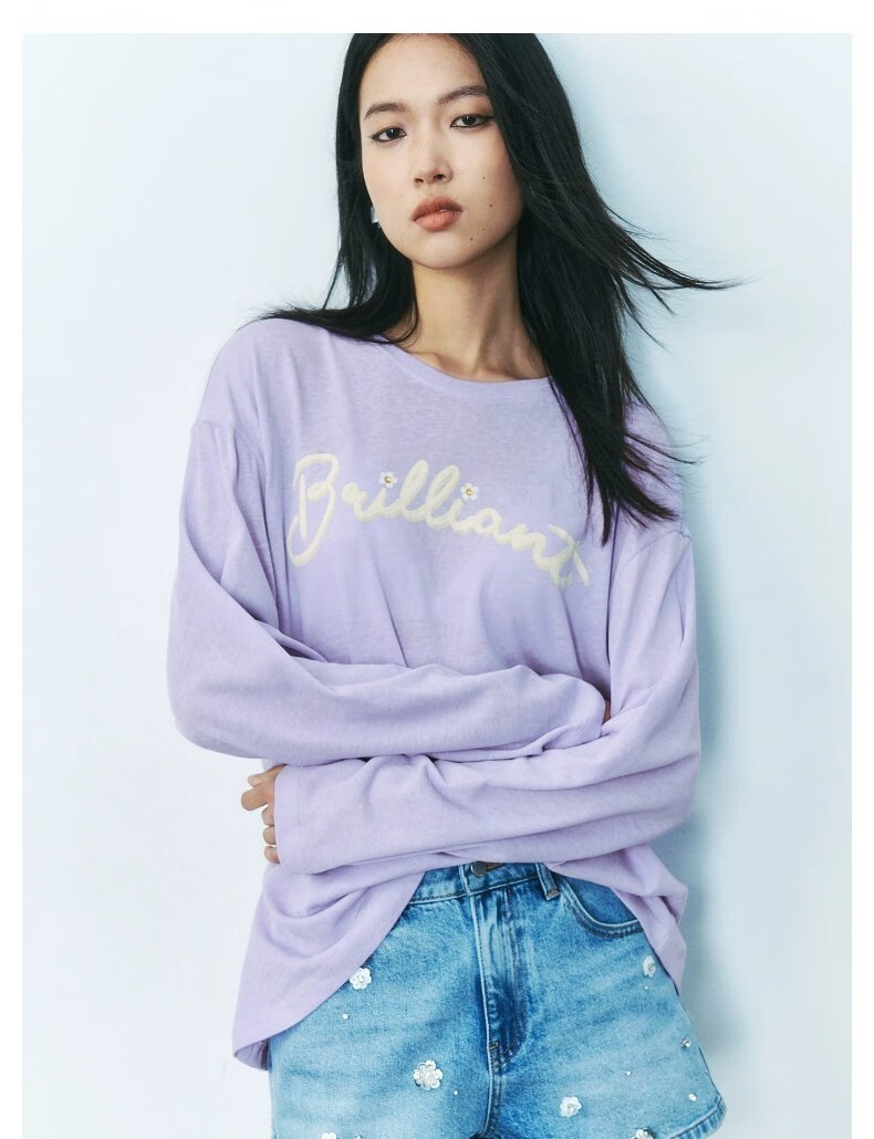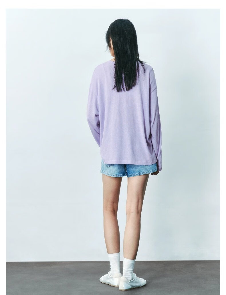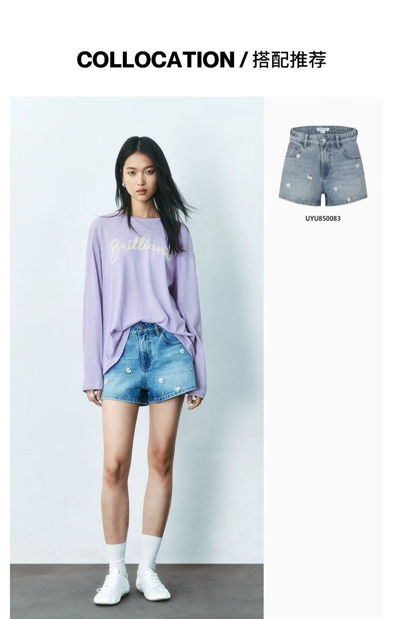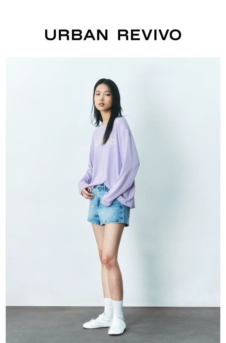 UR2025夏季新款女装休闲氛围感撞色印花薄款长袖T恤UYU450105