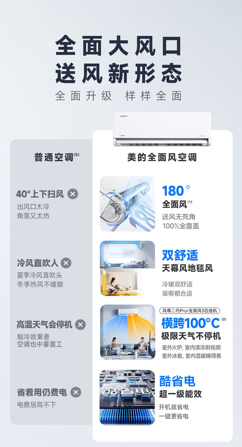 美的空调 风尊二代 超一级能效节能变频智能卧室空调挂机室温调节 以旧换新 风尊二代Pro 大1.5匹 一级能效
