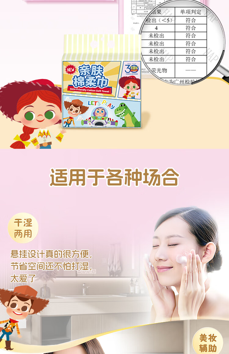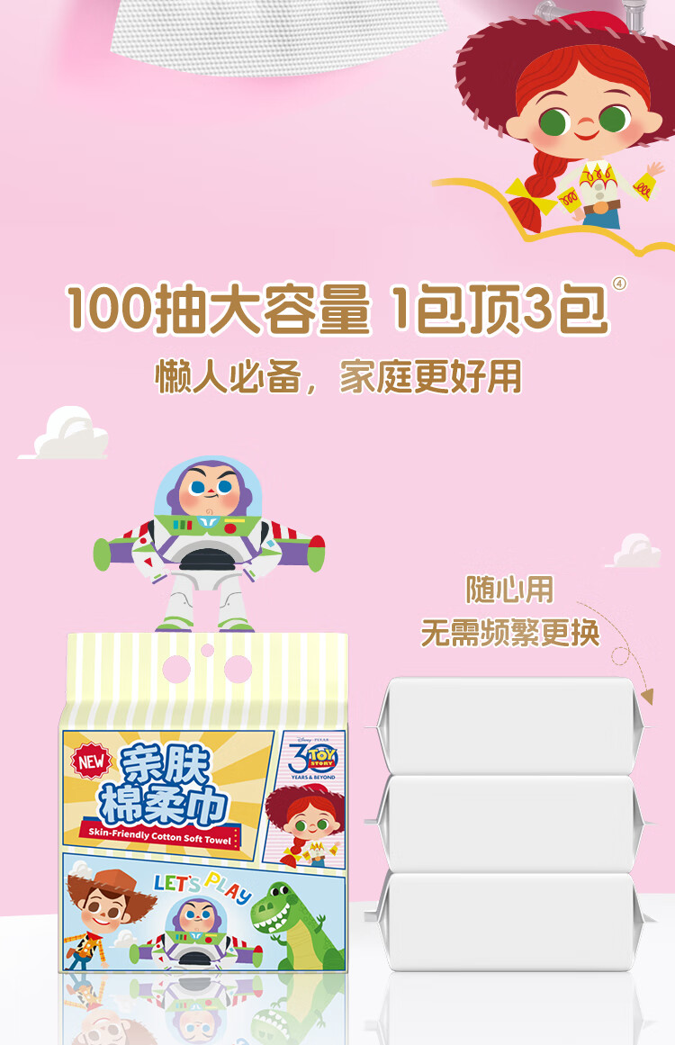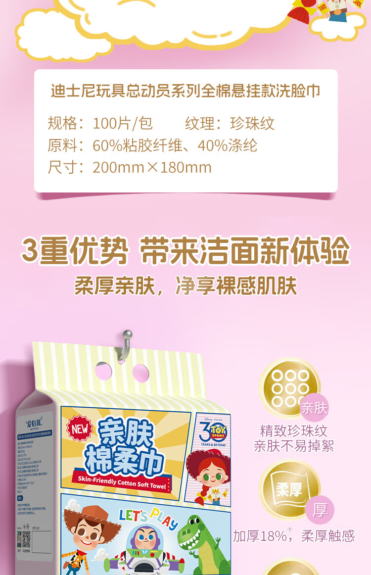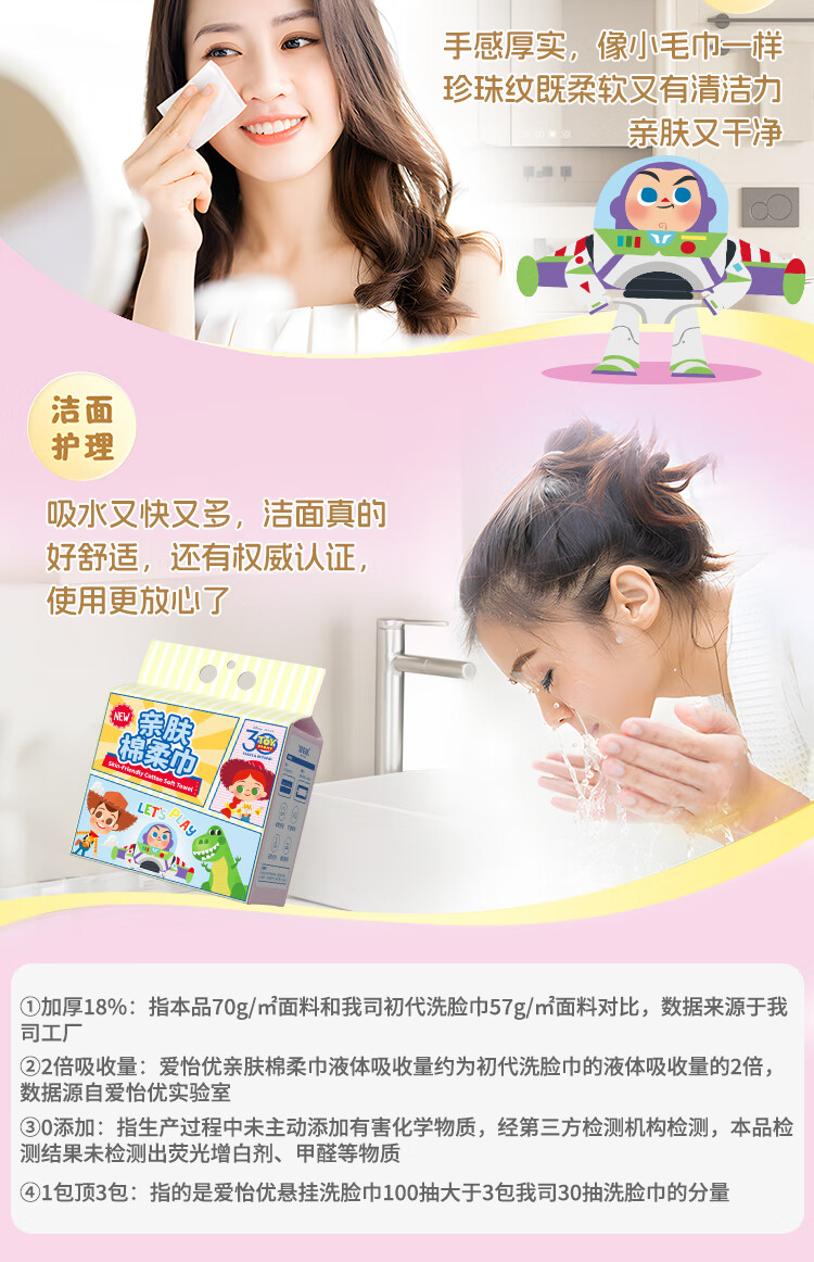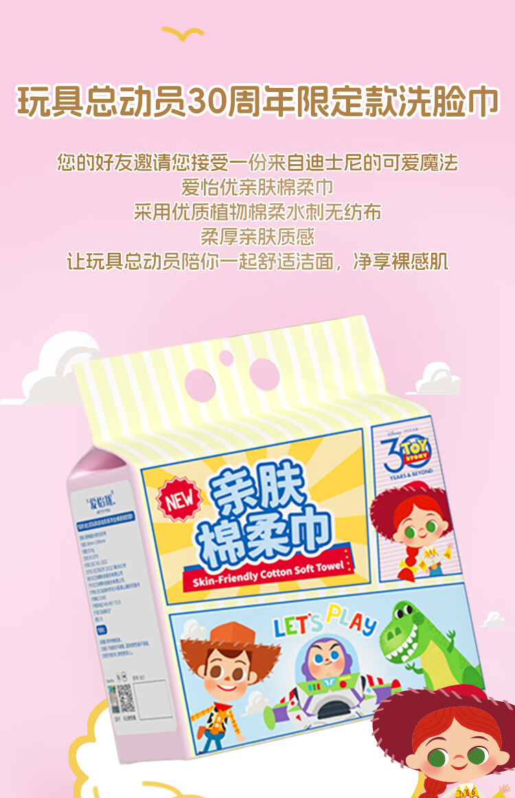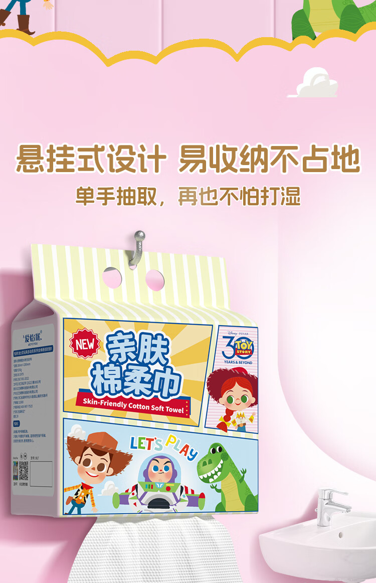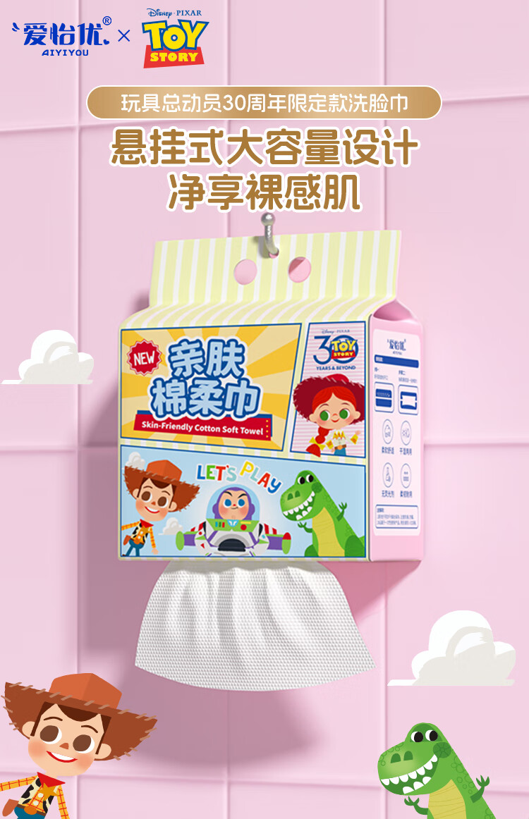 爱怡优×玩具总动员联名 洗脸巾 一次性毛巾绵柔巾 干湿两用洁面擦脸巾 100抽1提