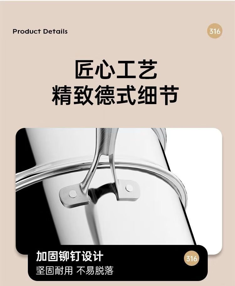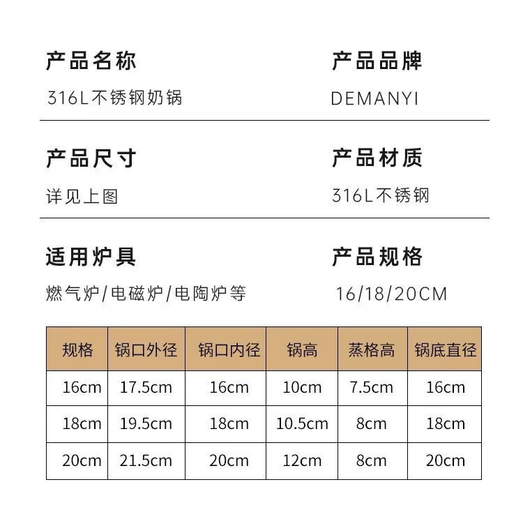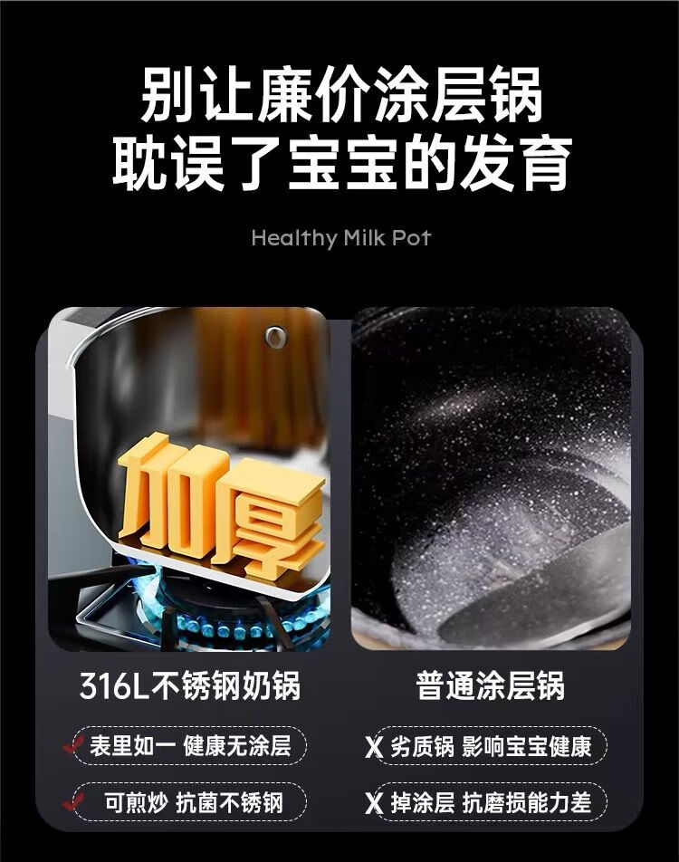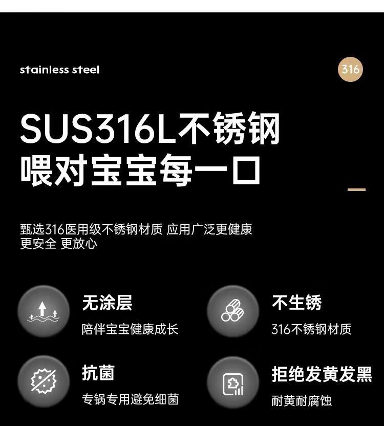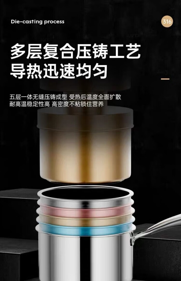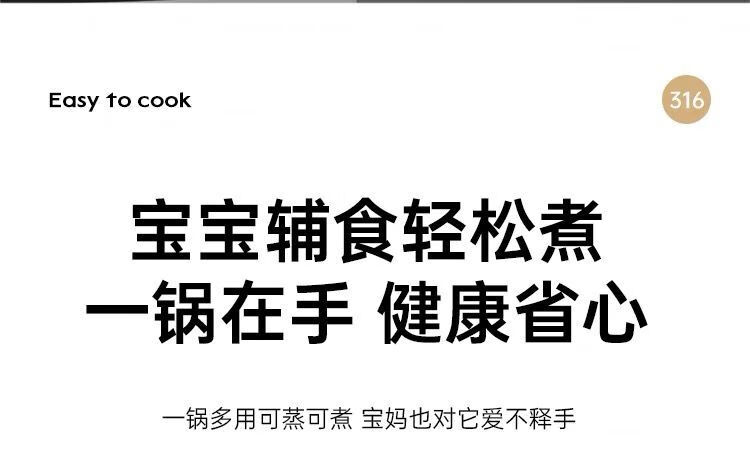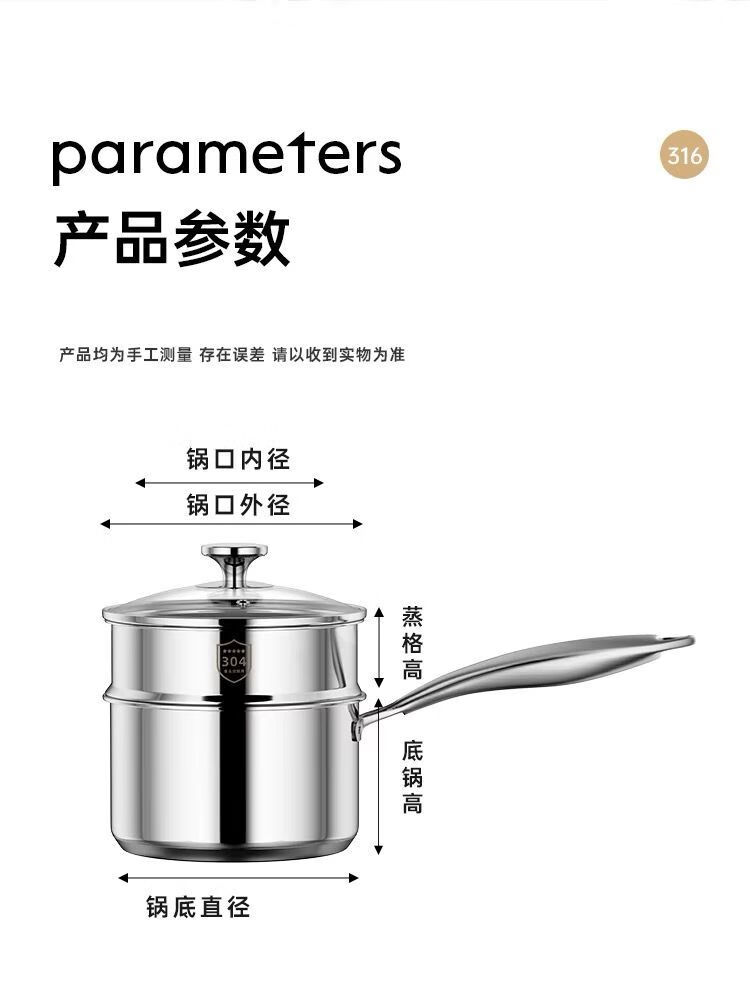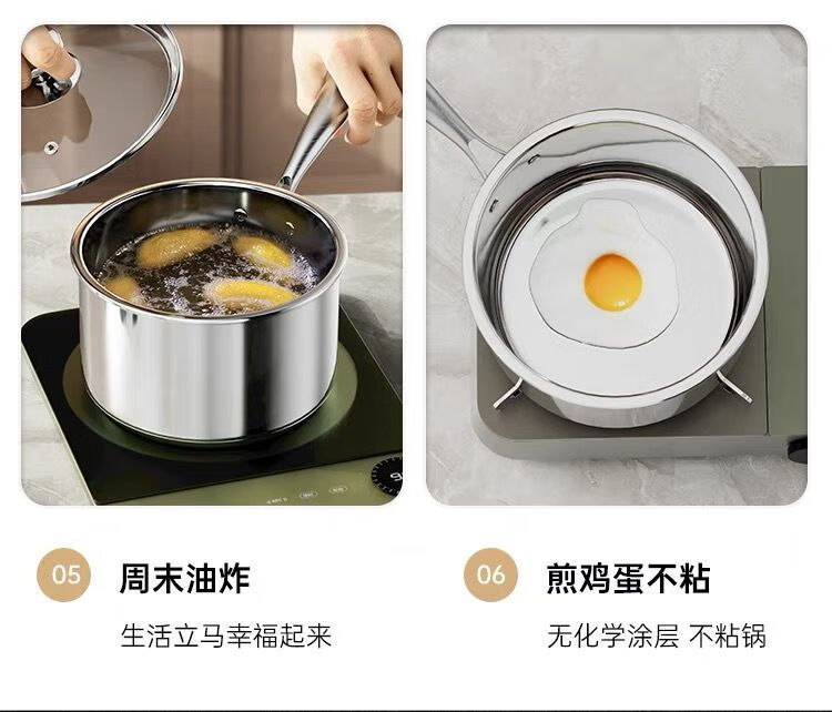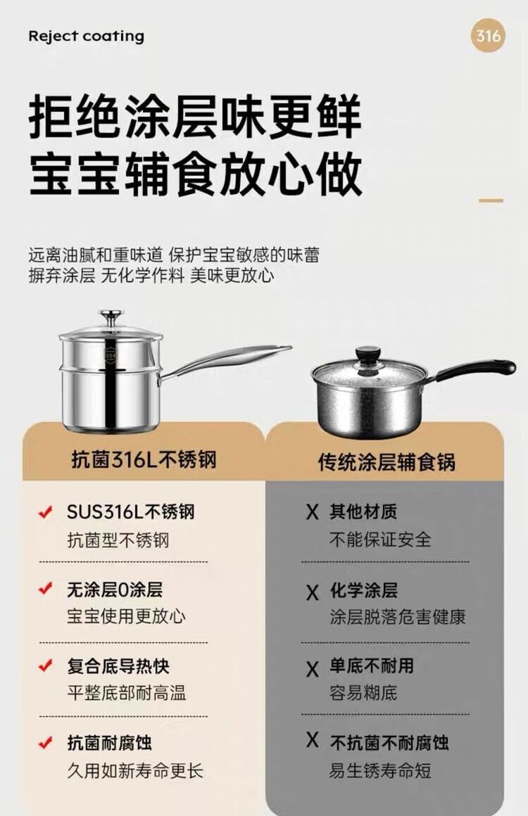 简漾特厚316不锈钢奶锅婴儿宝宝专用辅食锅煮牛奶煮面锅家用蒸煮汤锅 316不锈钢 1寸 内径16cm