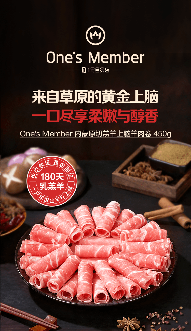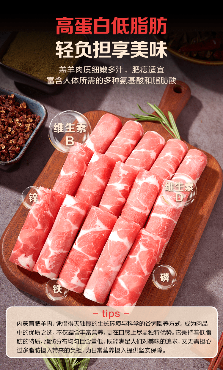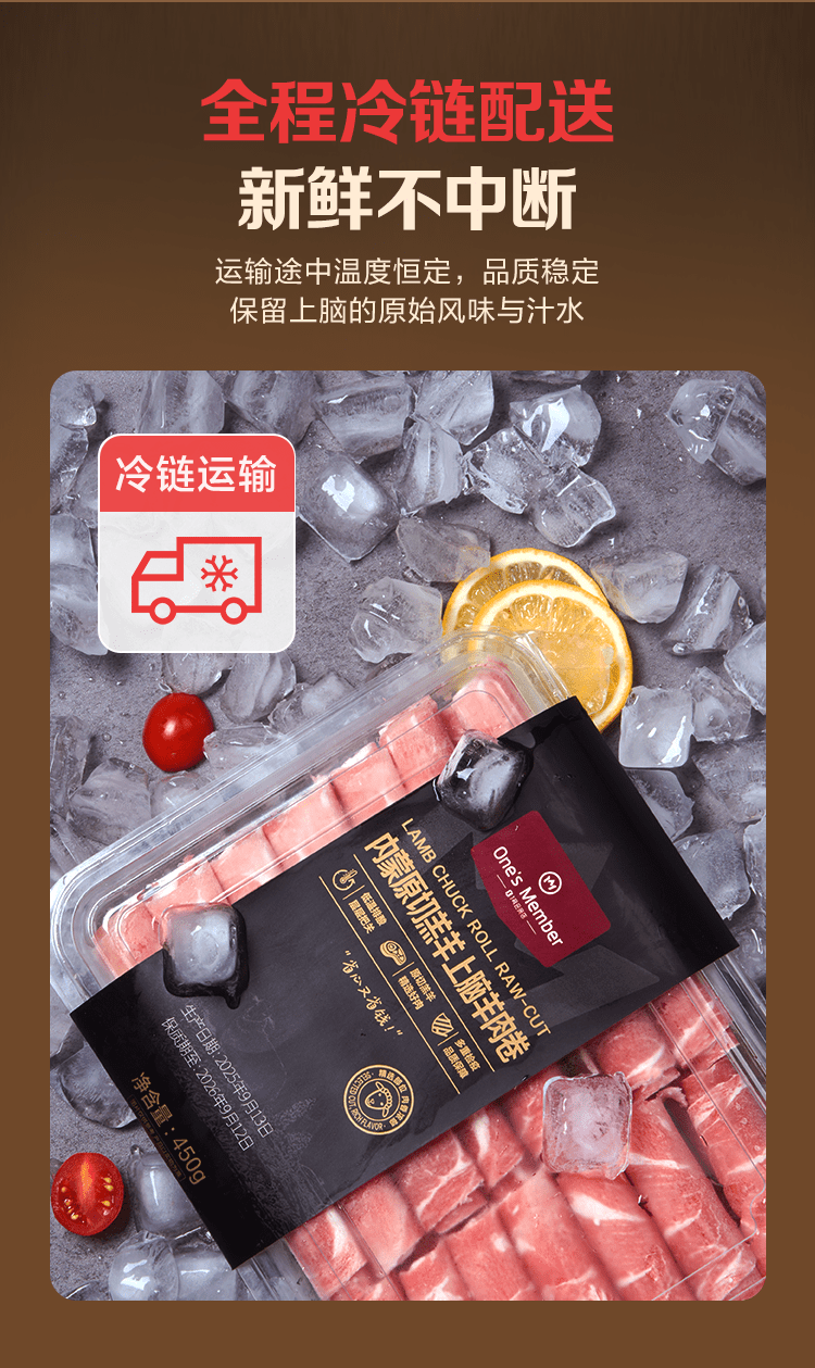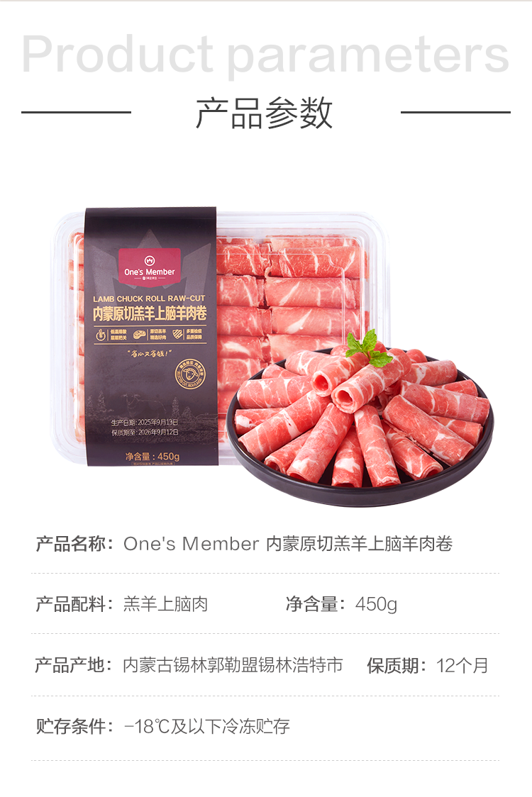 1号会员店国产内蒙原切羔羊上脑肉卷450g/袋火锅食材生鲜羊肉羊肉片羊肉卷