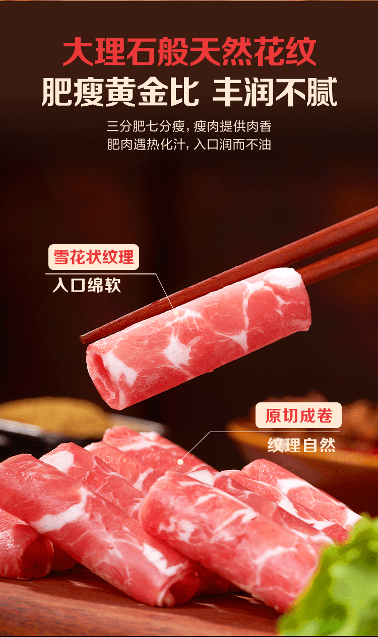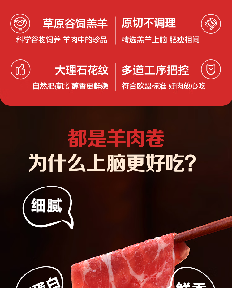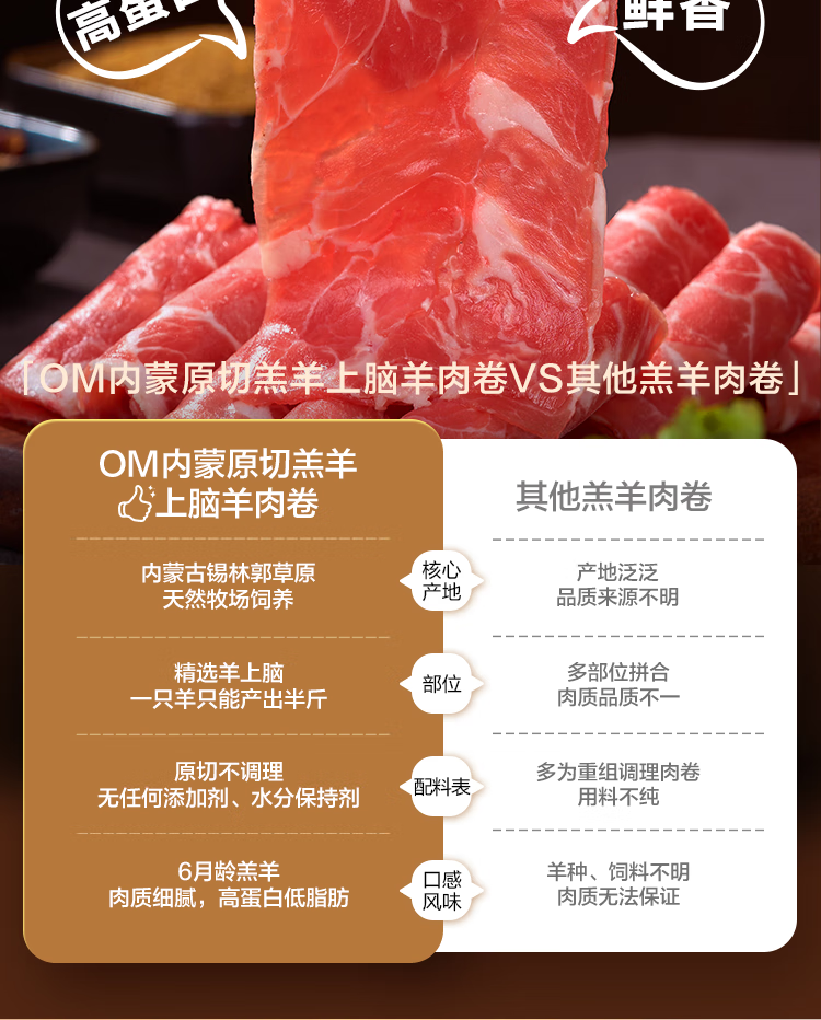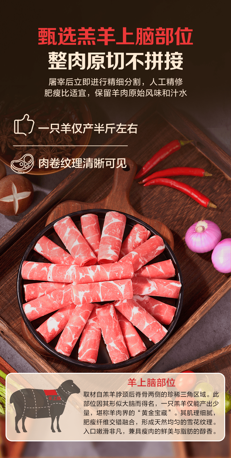 1号会员店国产内蒙原切羔羊上脑肉卷450g/袋火锅食材生鲜羊肉羊肉片羊肉卷